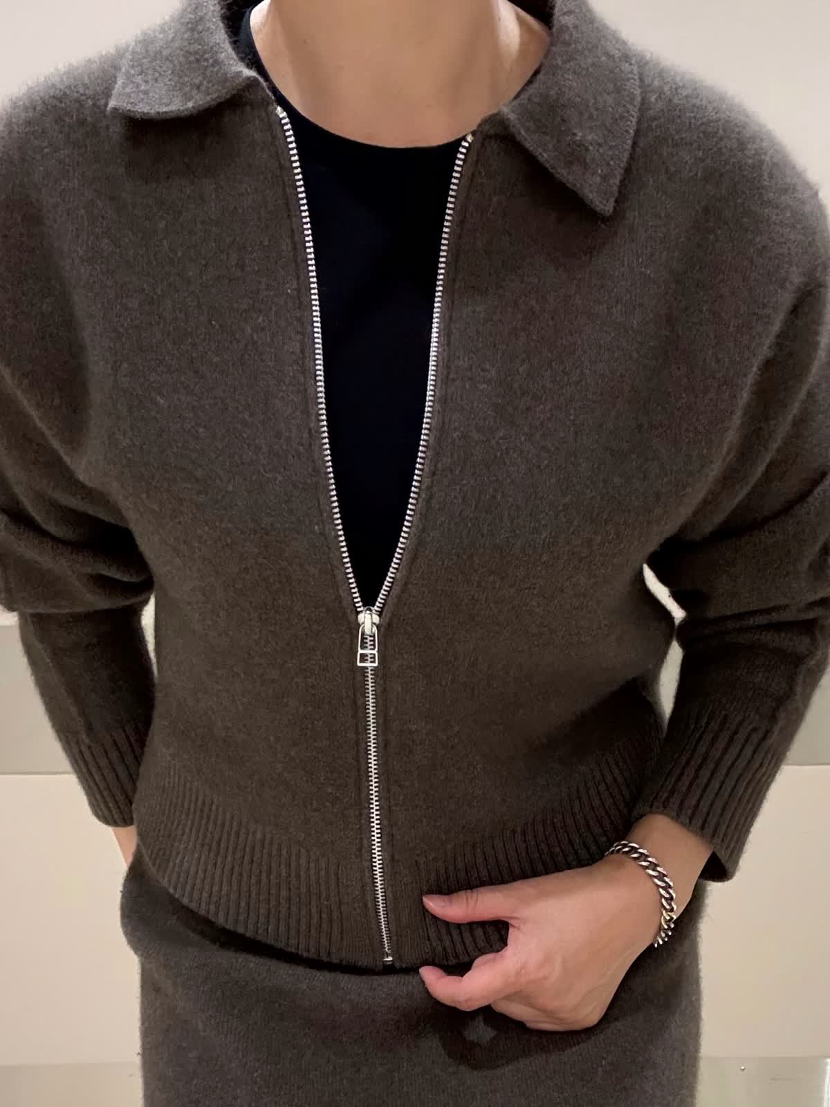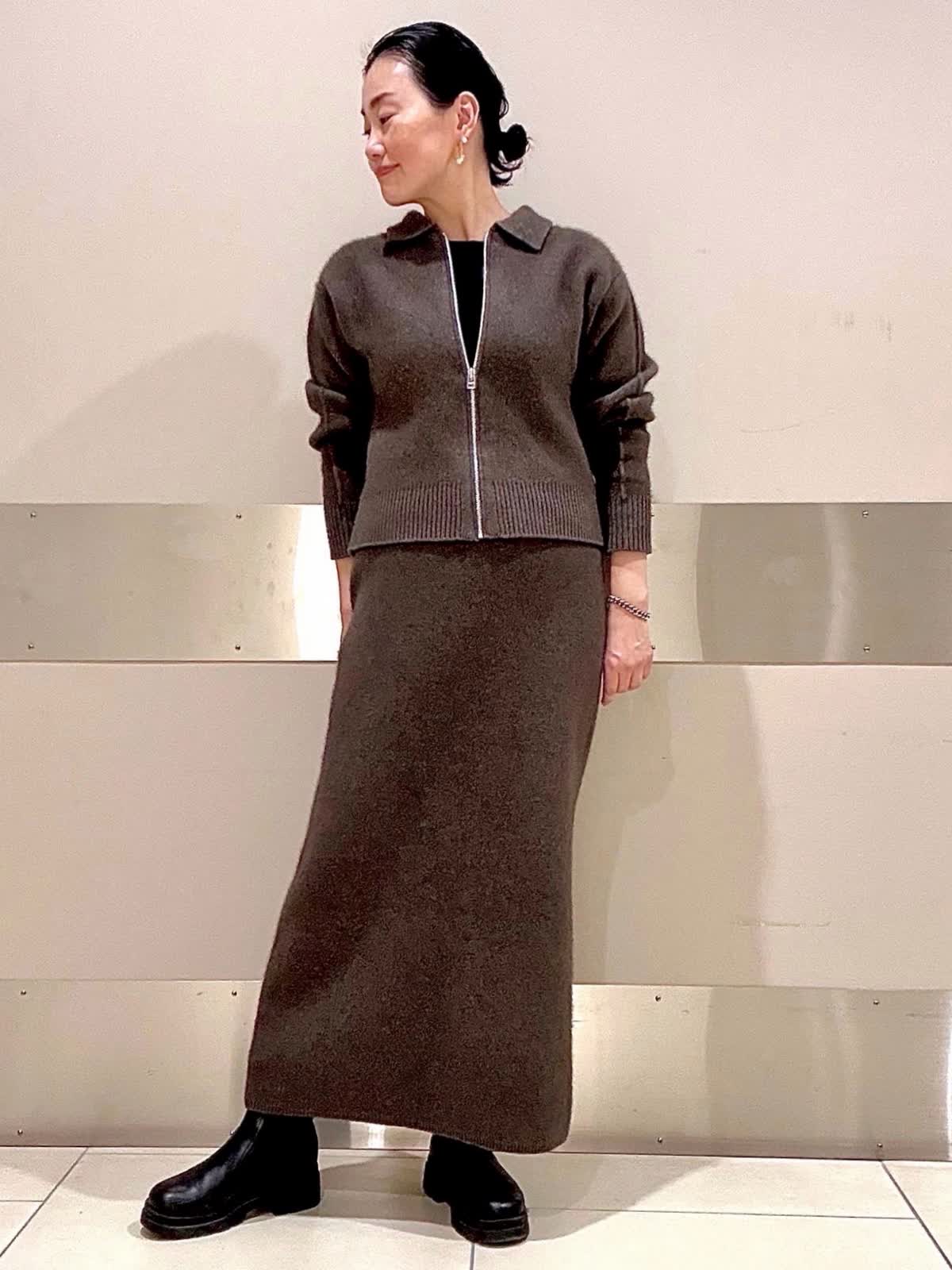 【着用サイズ、カラー】ニット:ブラウン スカート:ブラウン カットソー:ブラック リラックスした着心地とふんわり軽い暖かさがお気に入りなニットセットアップ。適度な厚みがある質感でボディラインが出過ぎないのも嬉しく、スカートは後ろスリットで足捌きよくアクティブに動けます。それぞれ単品での着回しもたくさん楽しめます。