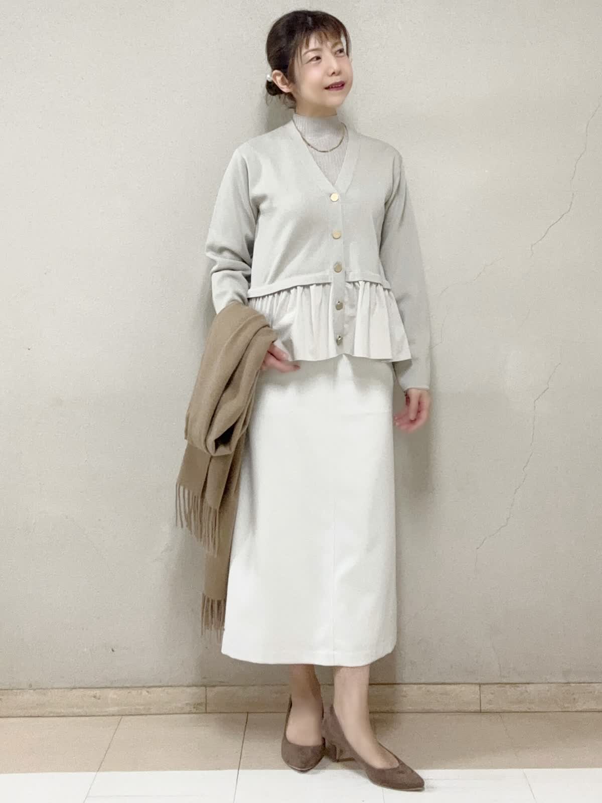 【着用サイズ】カーディガン:フリー ラメニット:フリー スカート:9号 【着用カラー】カーディガン:ベージュ ラメニット:ベージュ スカート:オフホワイト お出掛けスタイル イベントが多いシーズンに少し華やかさのあるトップスが良い。普段使いのカジュアルなデニムスタイルにも。