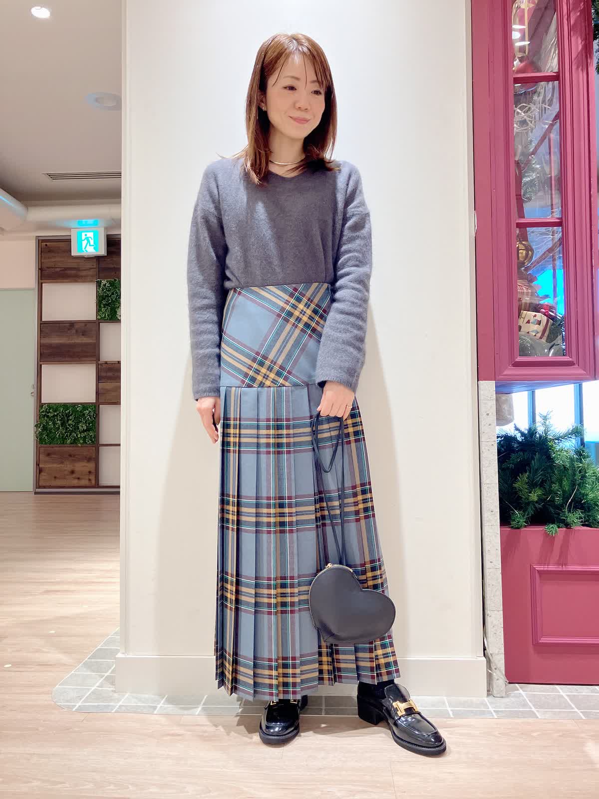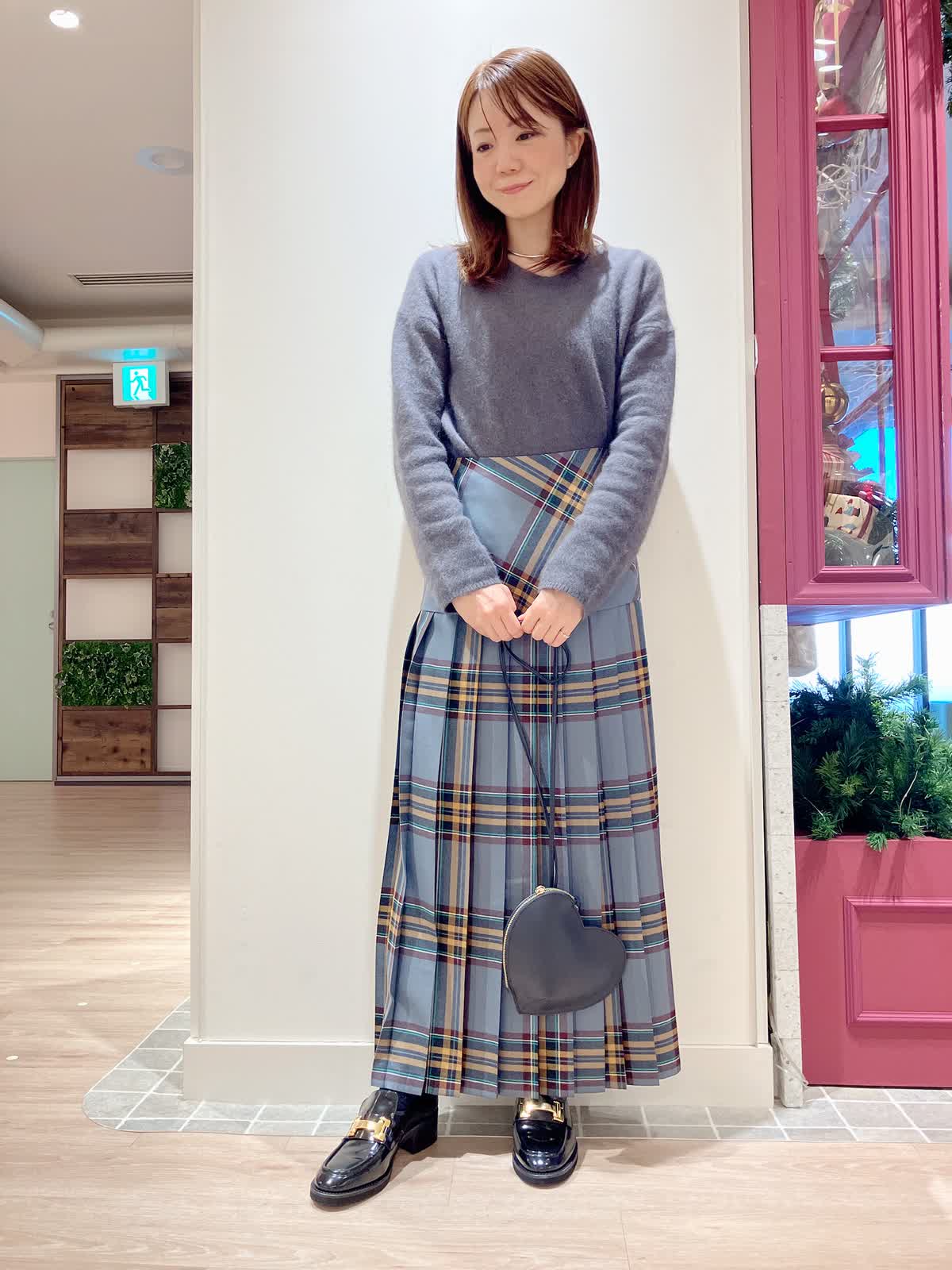 【着用サイズ】ニット:9号 スカート:7号 【着用カラー】ニット:チャコールグレー スカート:ブルーグレー コーディネートのテーマは冬のお出かけスタイリングです。 ふわもこのラクーンニットは、軽くて暖かくて着心地抜群。オニールオブダブリンのお洒落なスカートと合わせて、クリスマスや忘年会など、冬のお出かけシーンで大活躍間違いなしです。