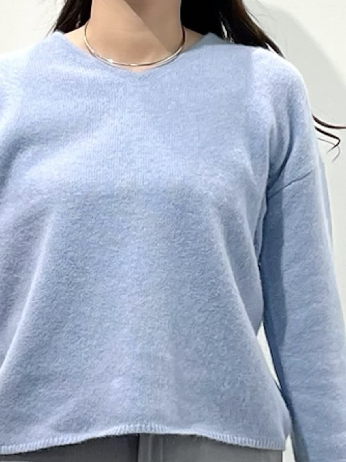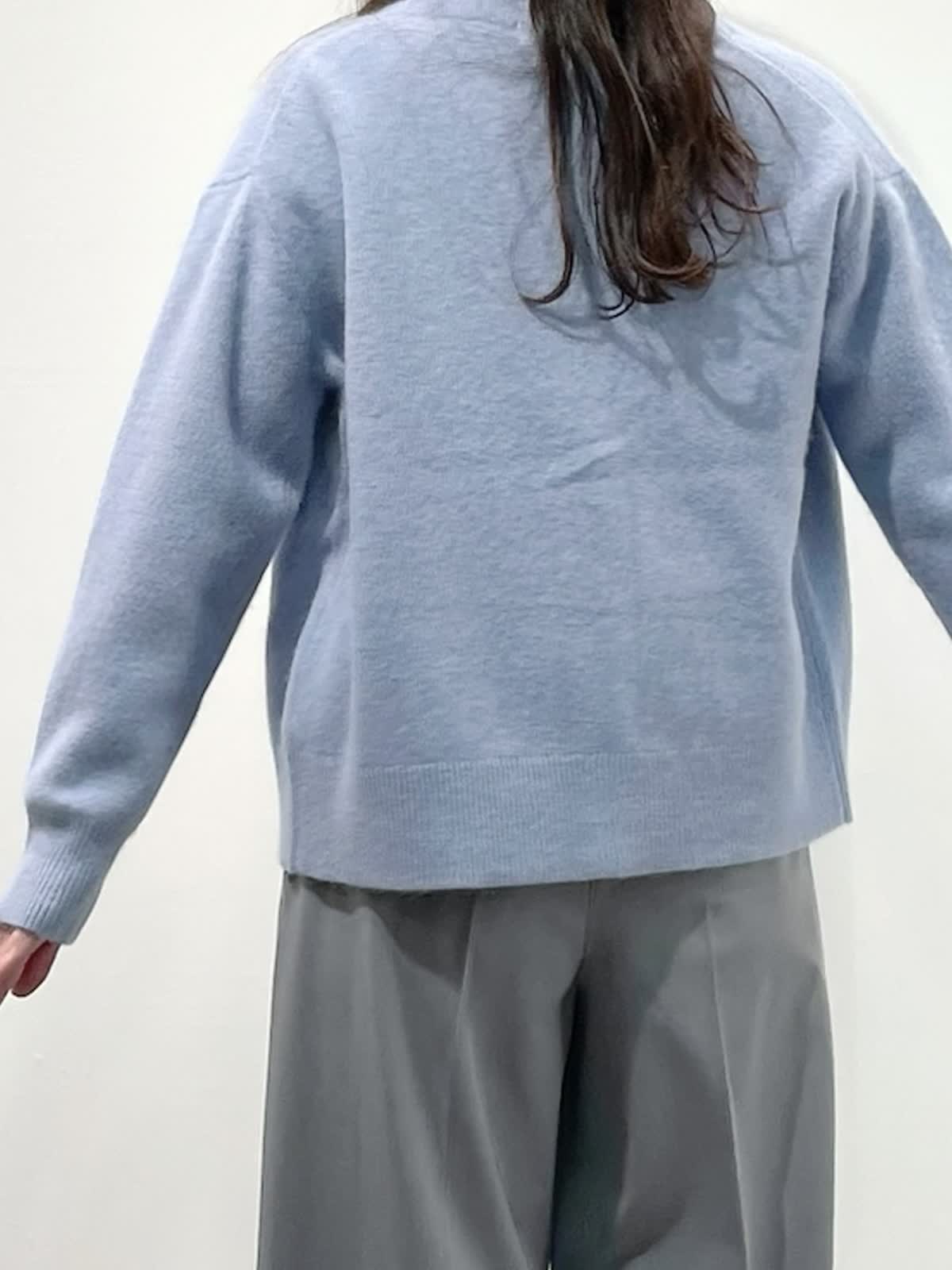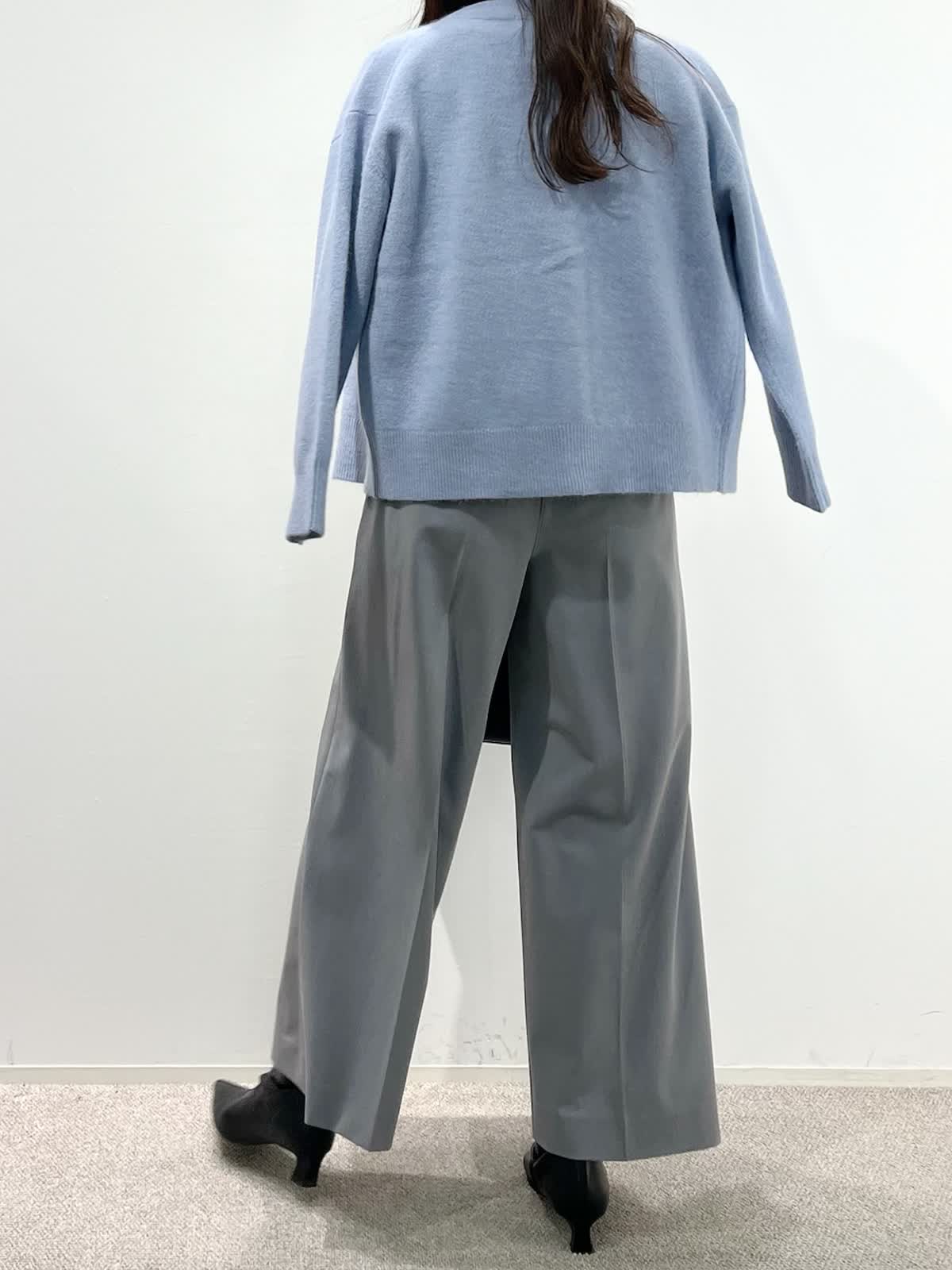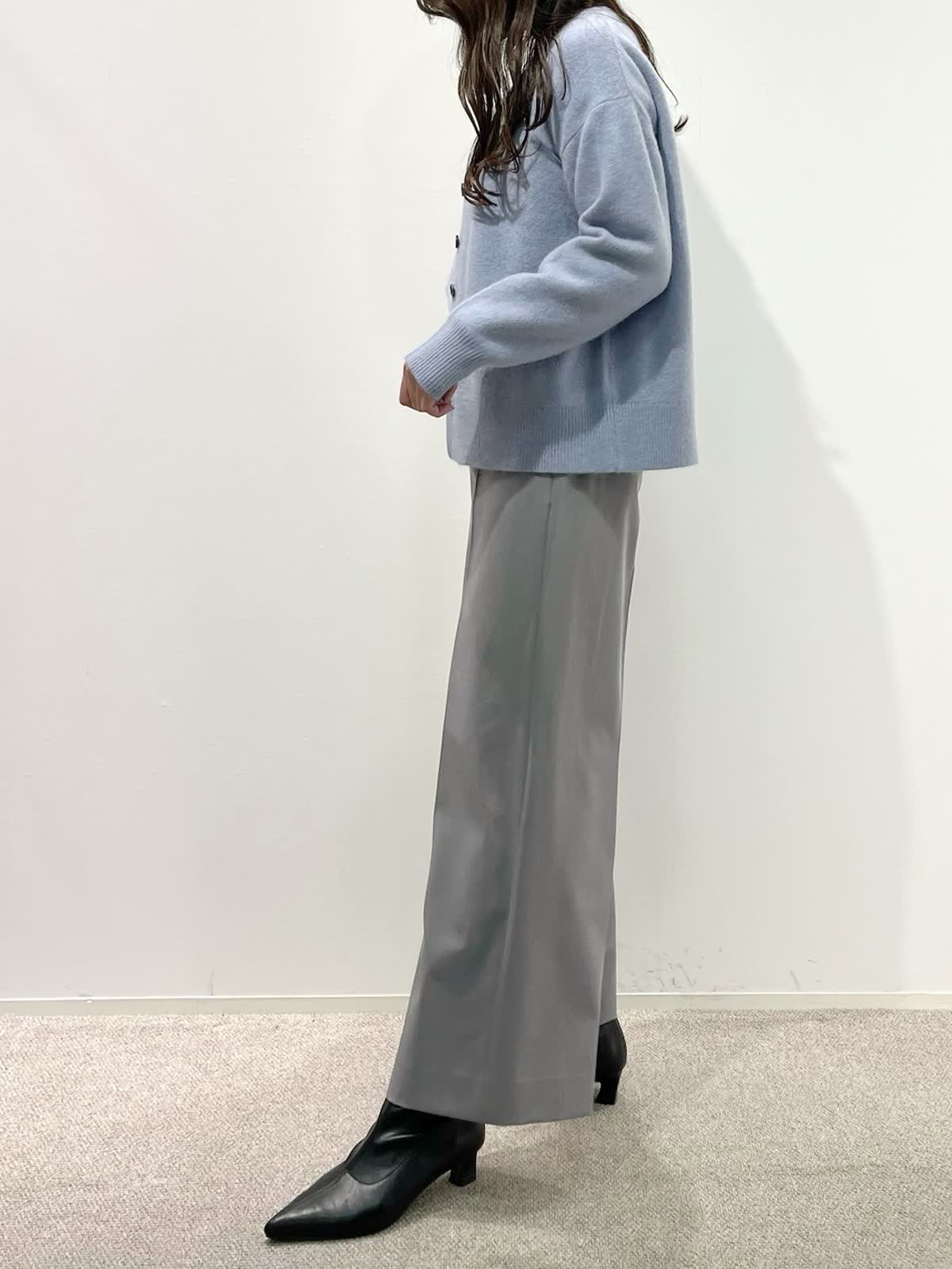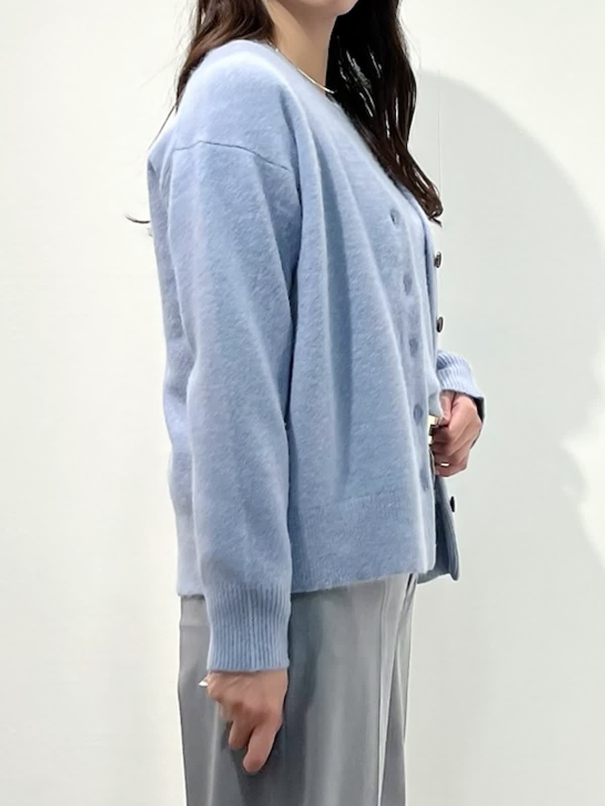【着用サイズ】カーディガン:9号 ニット:9号 パンツ:11号 【着用カラー】カーディガン:サックス ニット:サックス パンツ:ミディアムグレー バッグ:ブラック 「淡色トーンで魅せるラクーンニットの上品コーデ」 淡いブルー×グレーの配色トーンで柔らかく透明感のあるおすすめスタイル。ふわふわとした質感の上質ラクーンニットは、Vネックニットとカーディガンのアンサンブルがおすすめ。ソフトなタッチと、軽くてあたたかい素材感が、冬のコーデに抜け感を演出してくれるアイテム。パンツ合わせで大人な上品スタイルに。着回し抜群で、通勤やデイリーにも華やかに着こなせます。きれいめカラーで、上品なラグジュアリースタイルが完成。