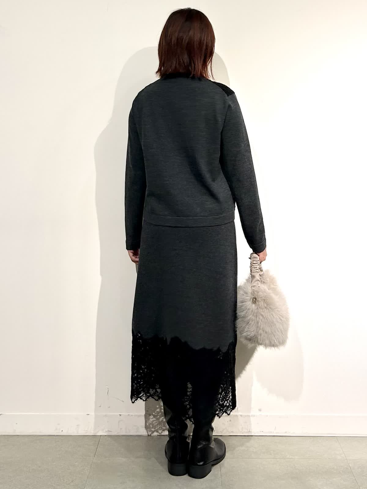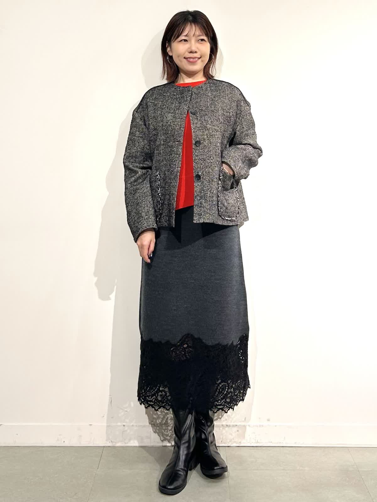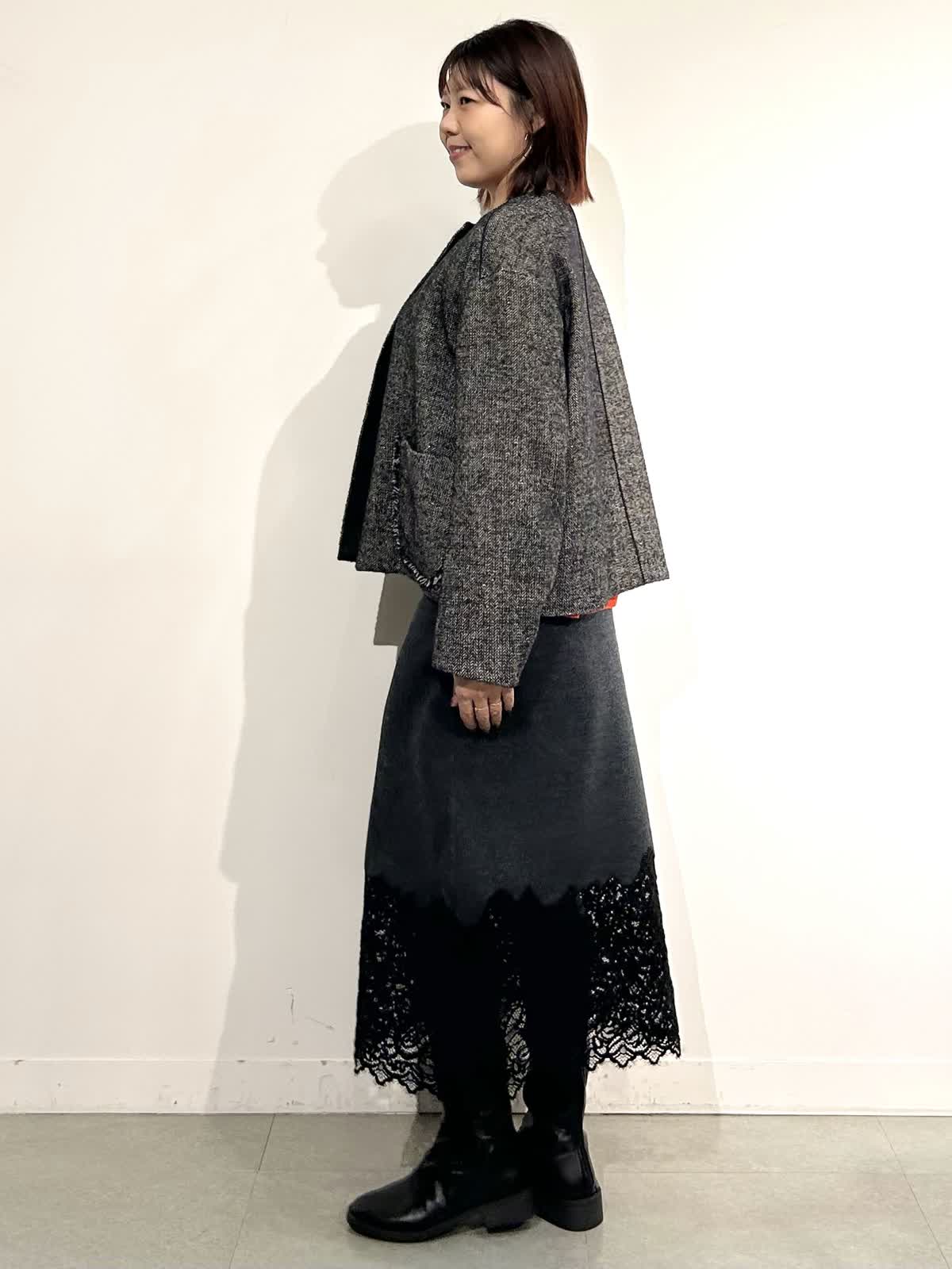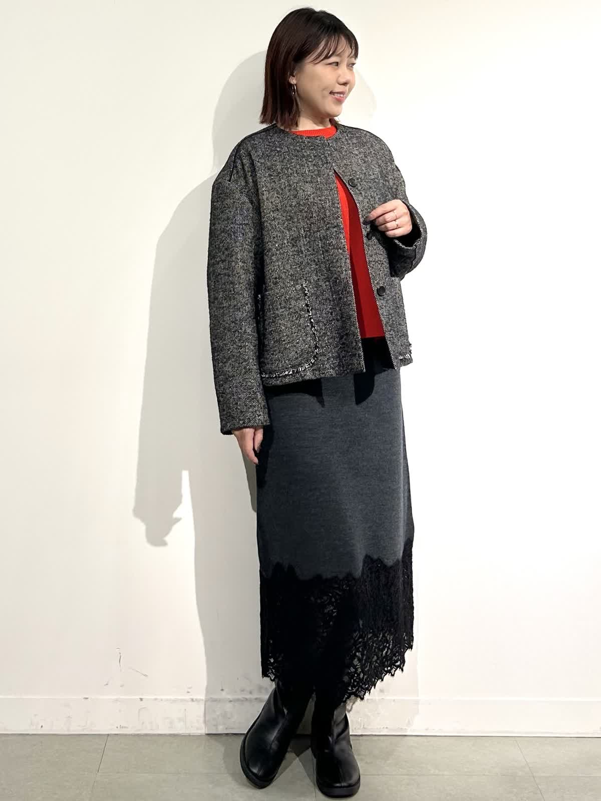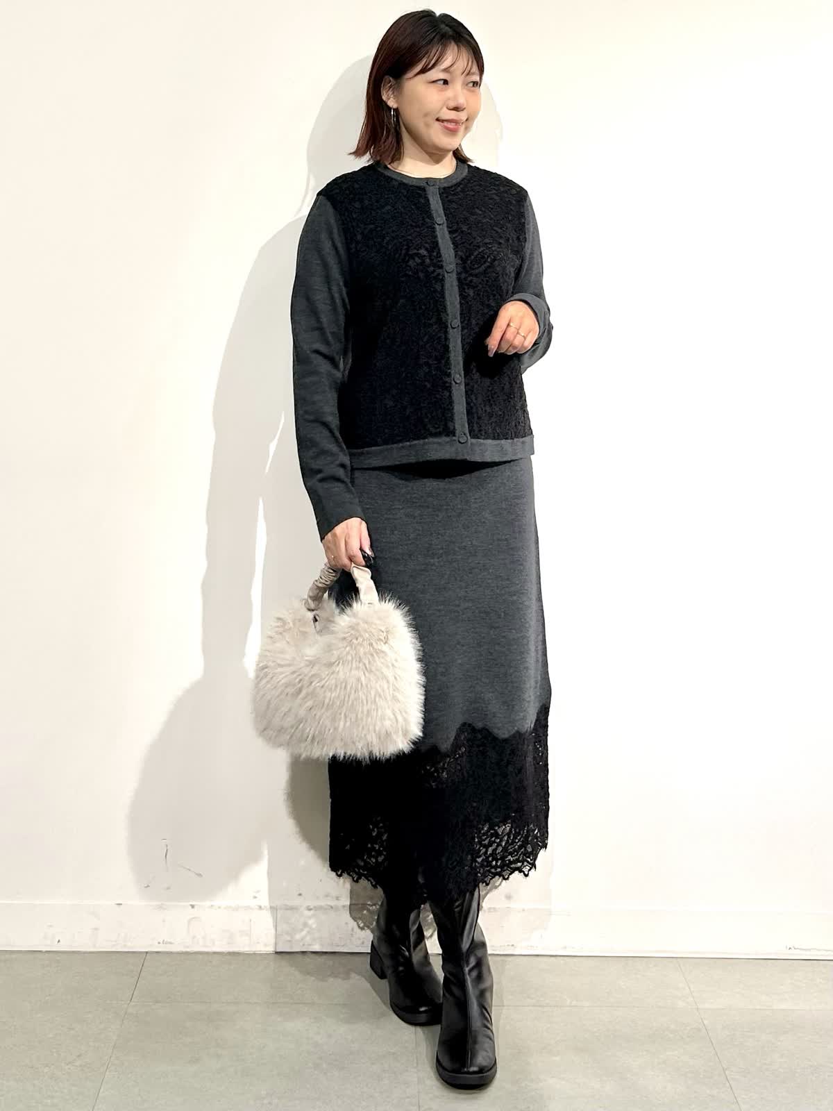 【着用カラー】コート:ブラック ニット:シュイロ カーデ・スカート: チャコールグレー
