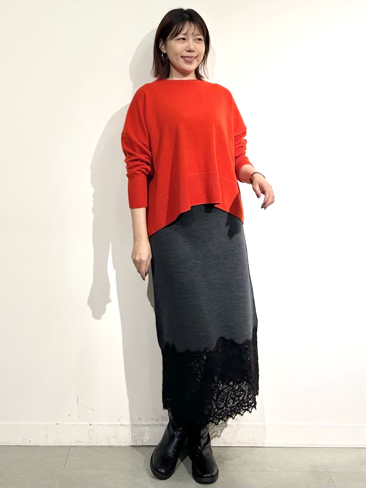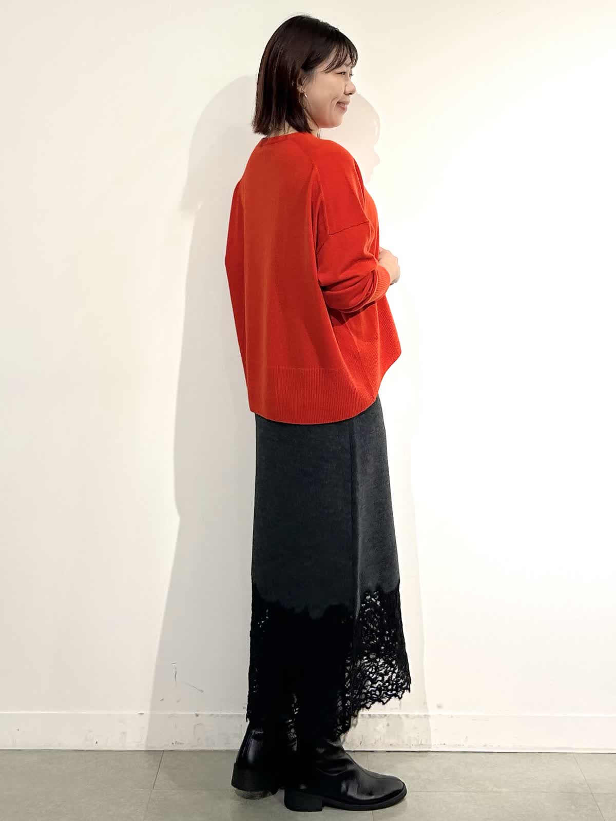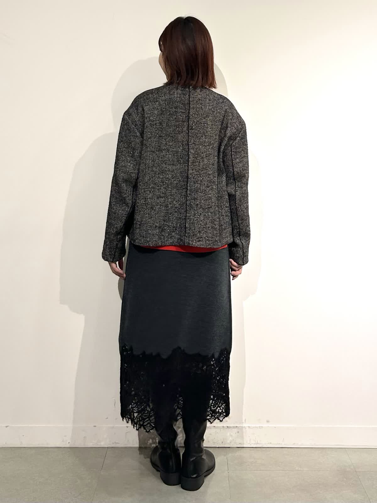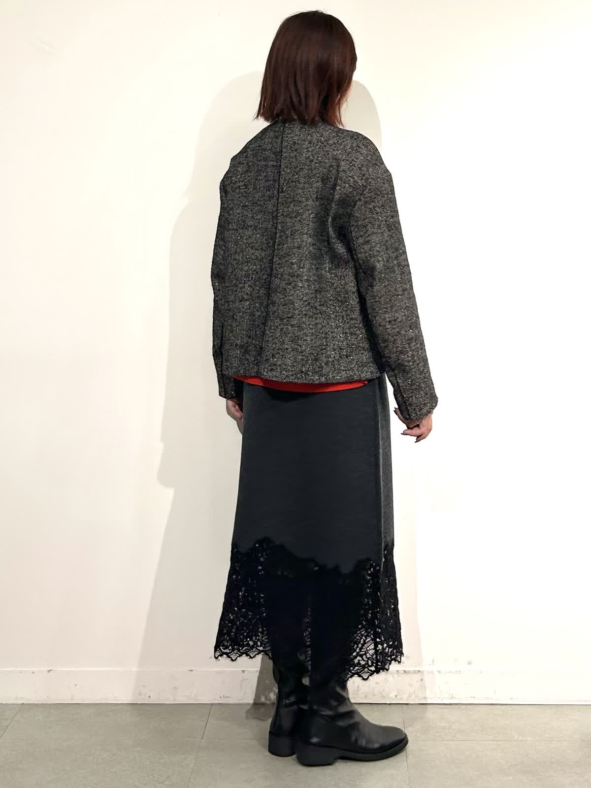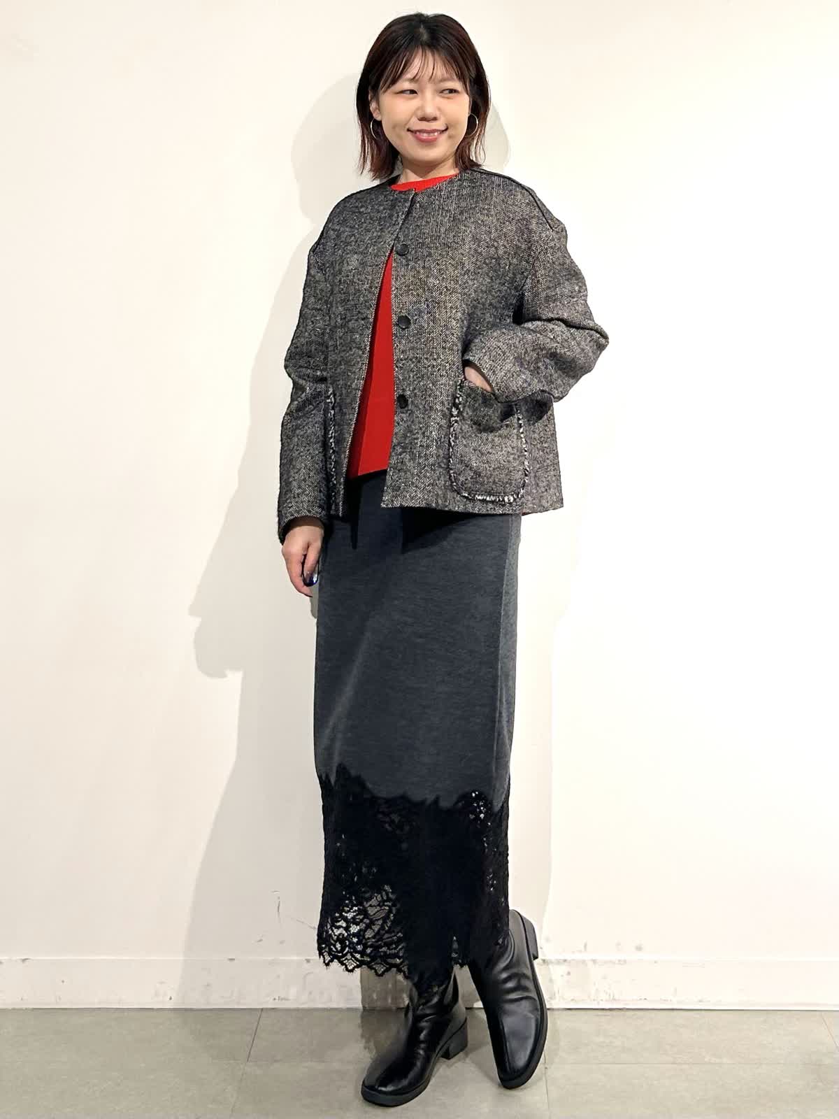 【着用カラー】コート:ブラック ニット:シュイロ カーデ・スカート: チャコールグレー