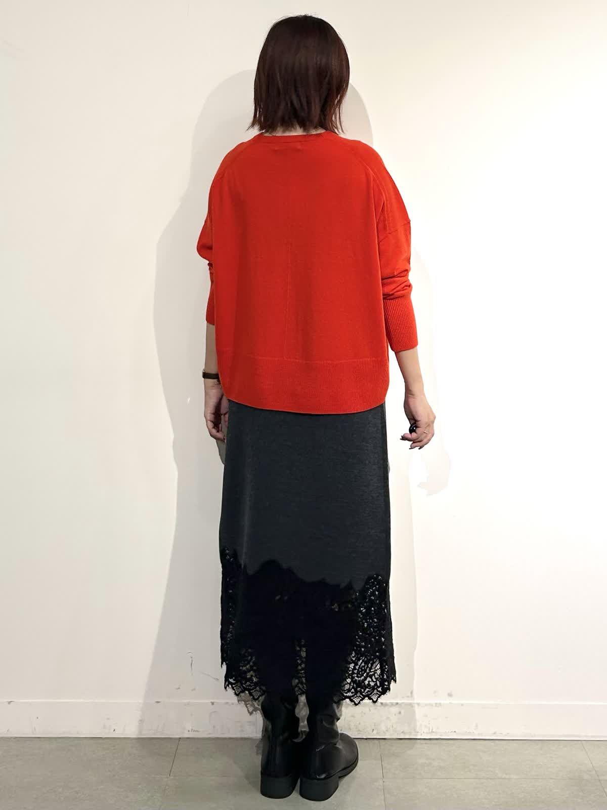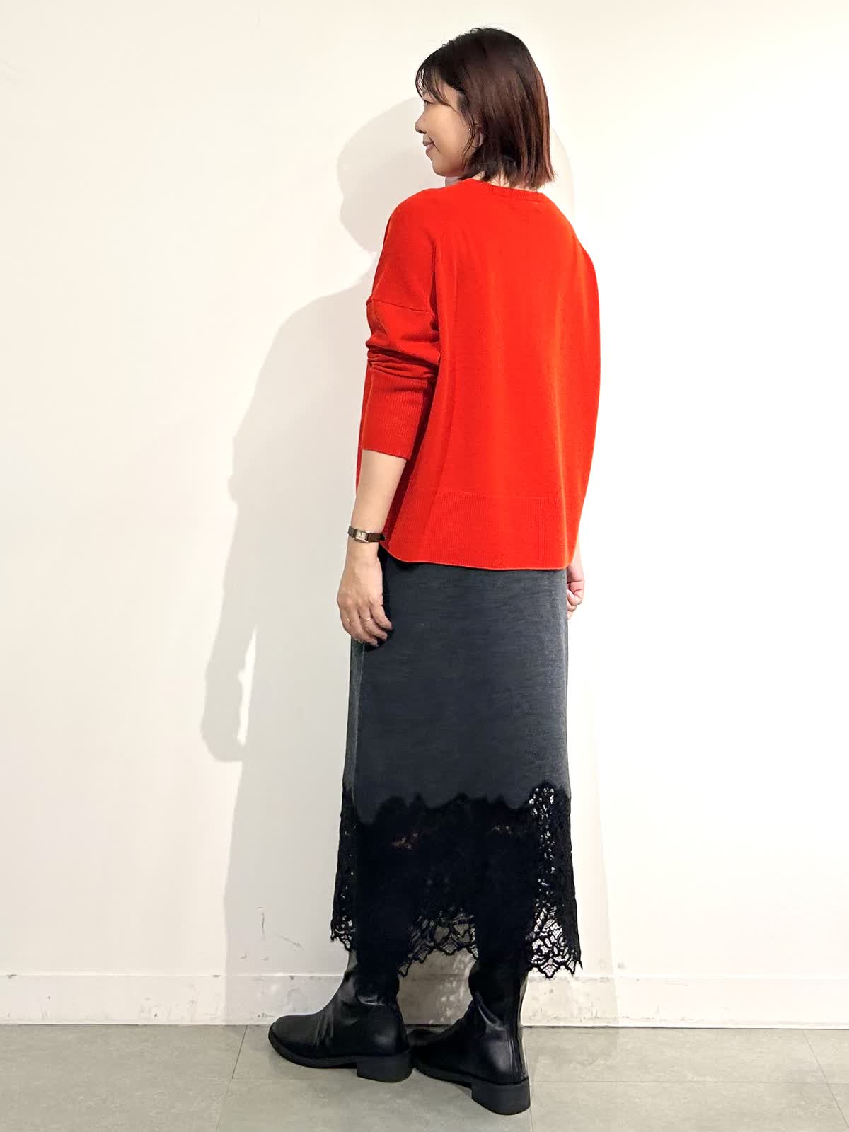 スカートのレースが品よく、さりげない華やかさをプラスしてくれます。