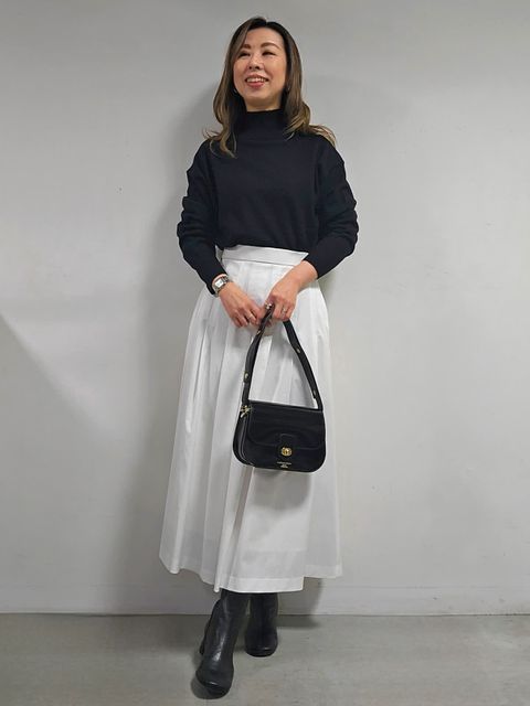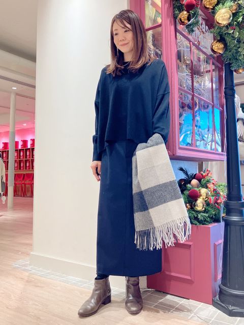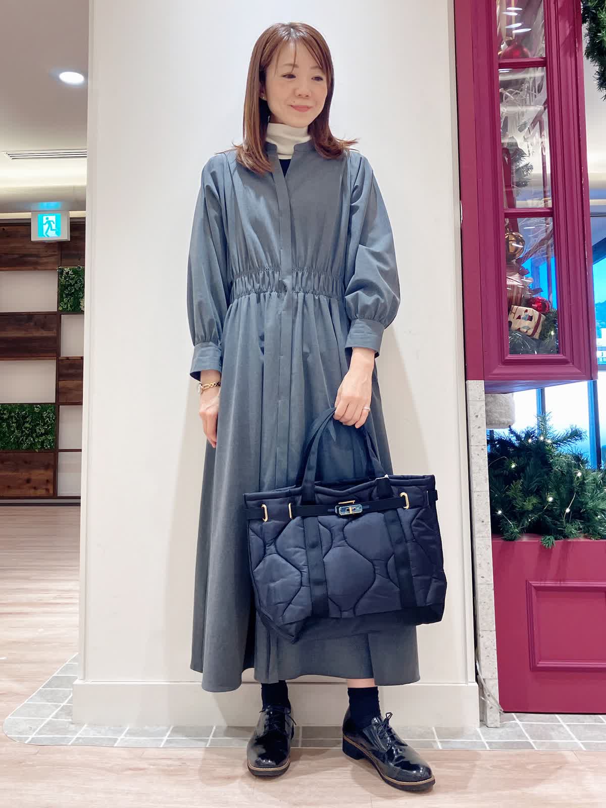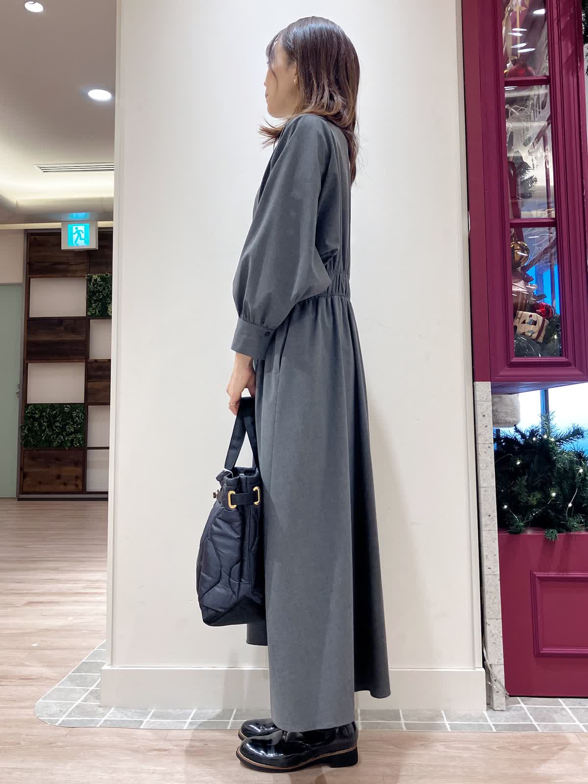 【着用サイズ】ワンピース:9号 ニット:9号 【着用カラー】ワンピース:チャコールグレー ニット:ソノタ コーディネートのテーマは年末年始のくつろぎスタイリングです。 ウエストシャーリングワンピースは、1枚でも着映えするアイテム。シワになりにくく、ウォッシャブルなのも嬉しいポイント。 キーネックからインナーのタートルを見せてもおしゃれ。年末年始のお家コーディネートにおすすめです。