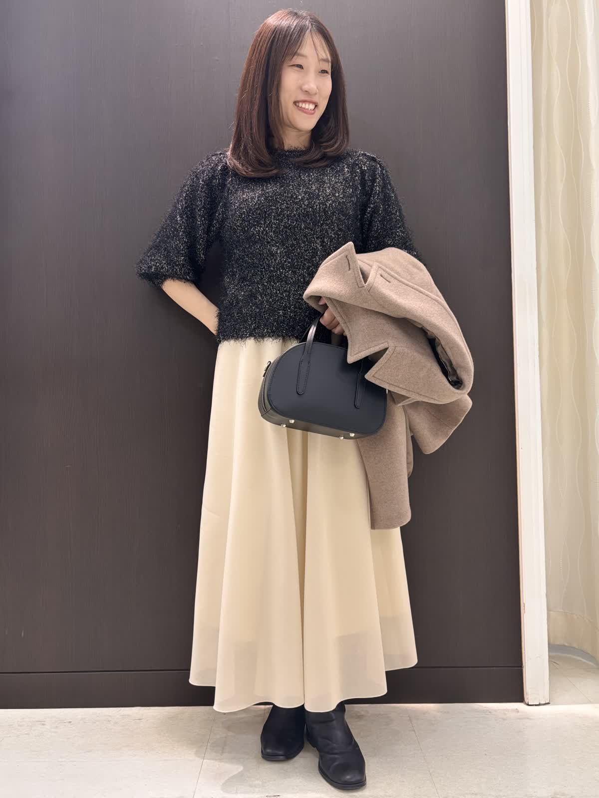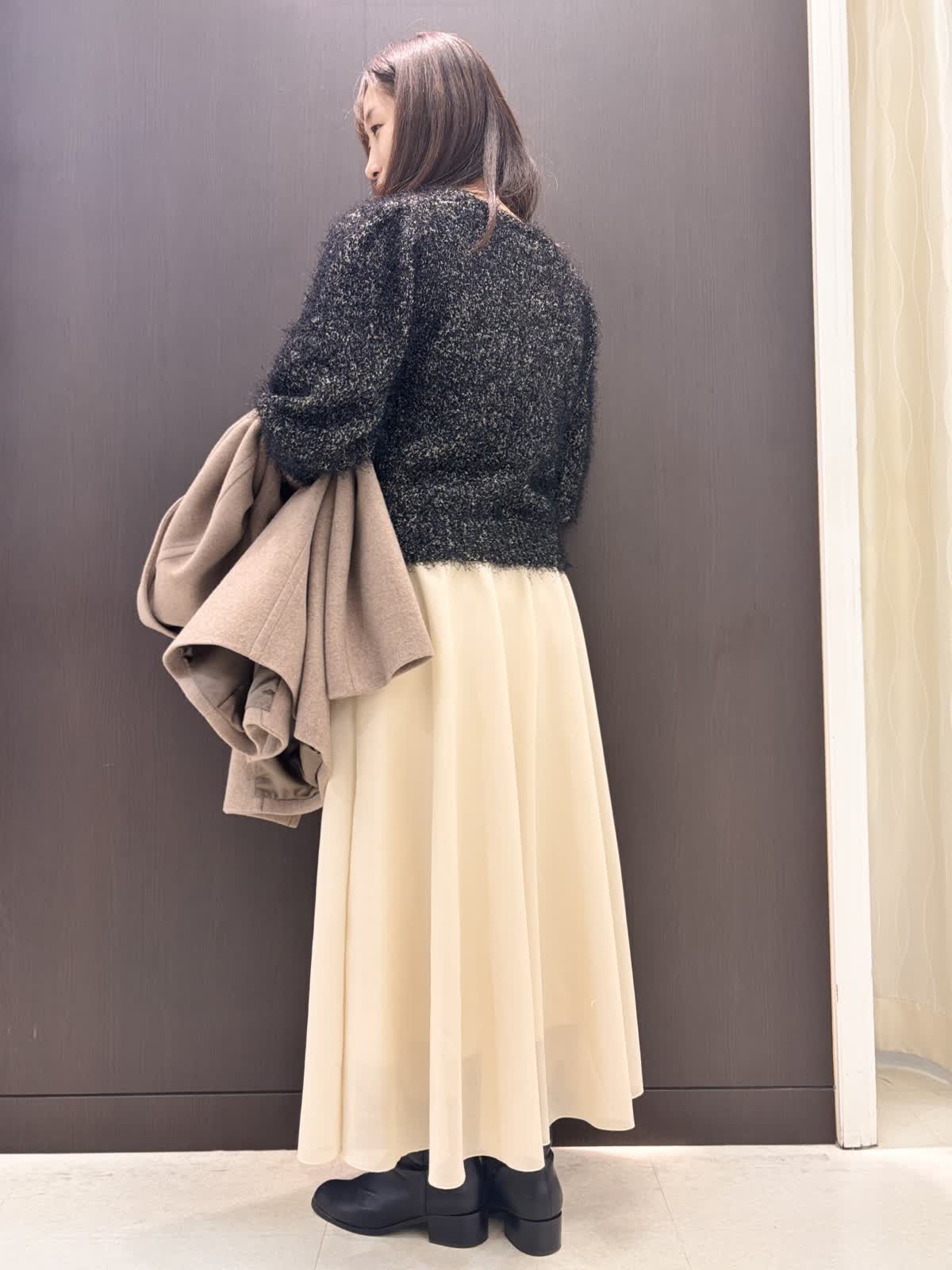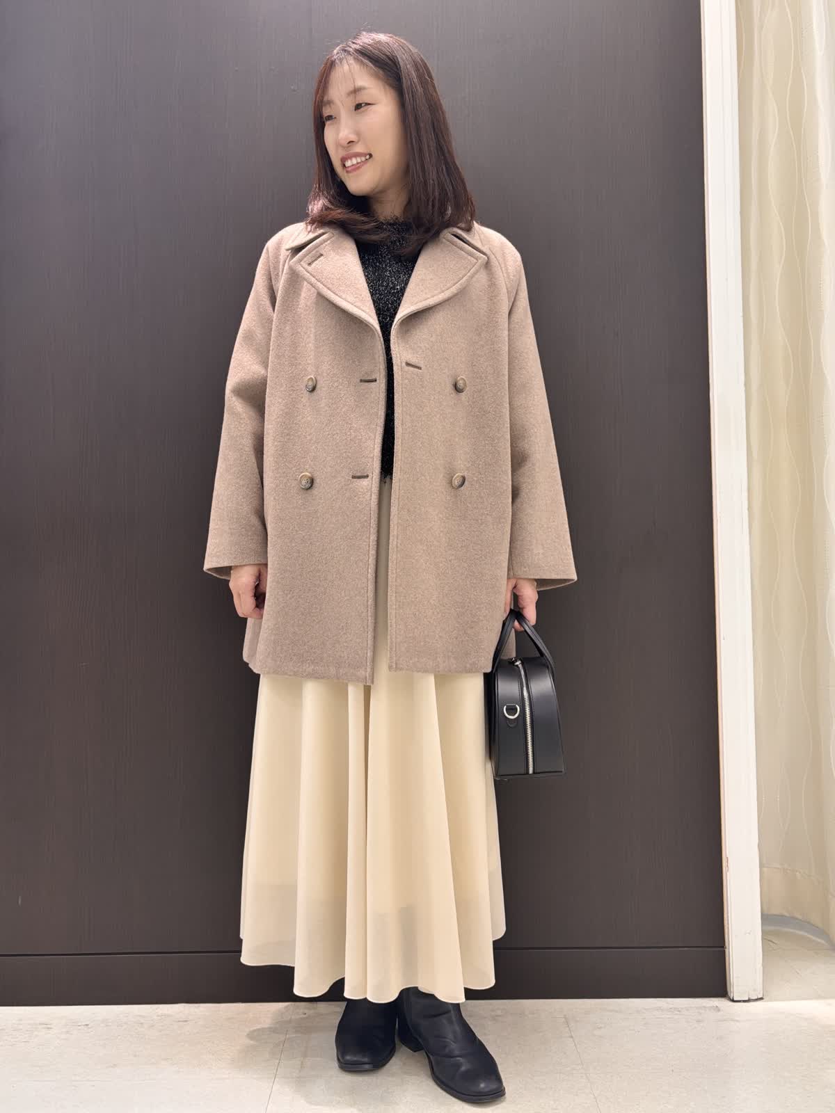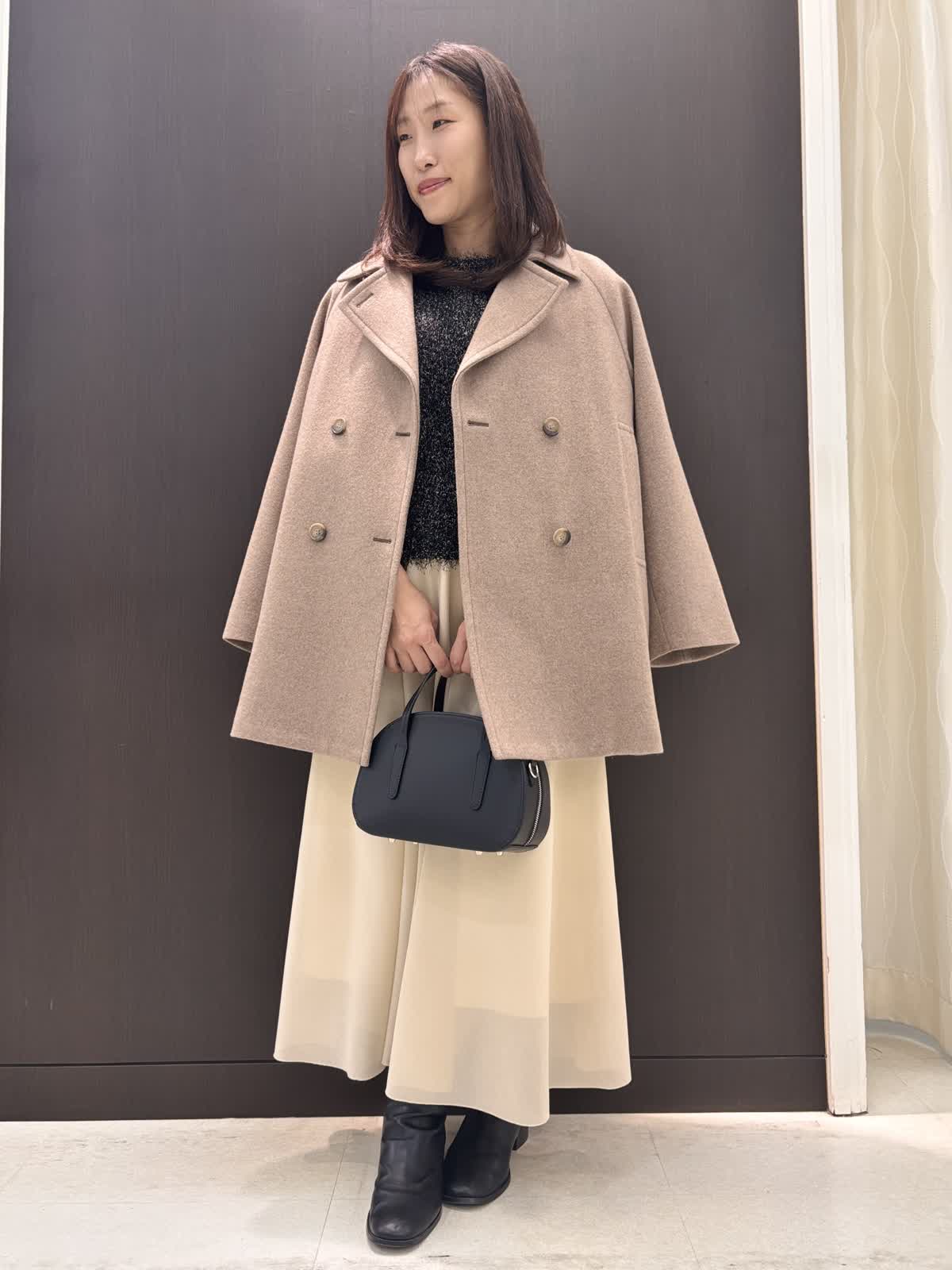 【着用カラー】コート: モカチャ ニット:ブラック スカート:アイボリー