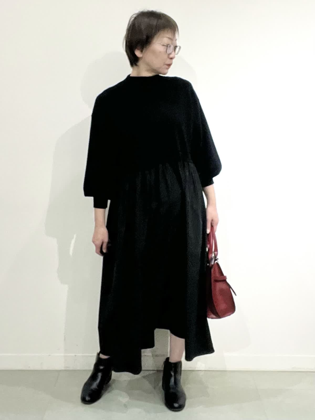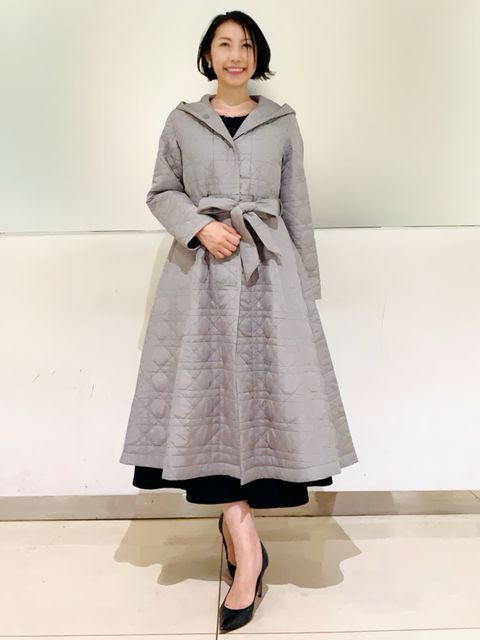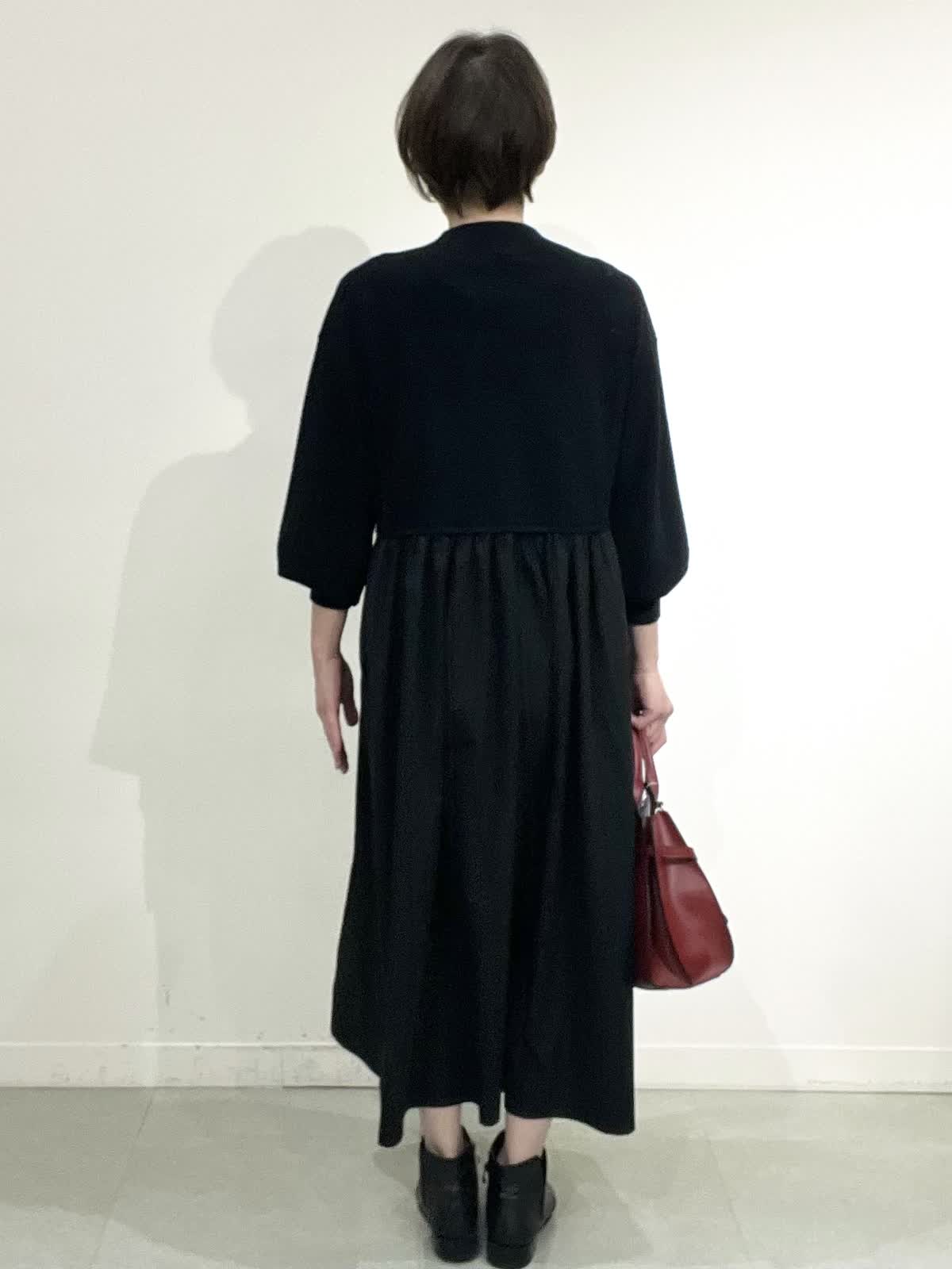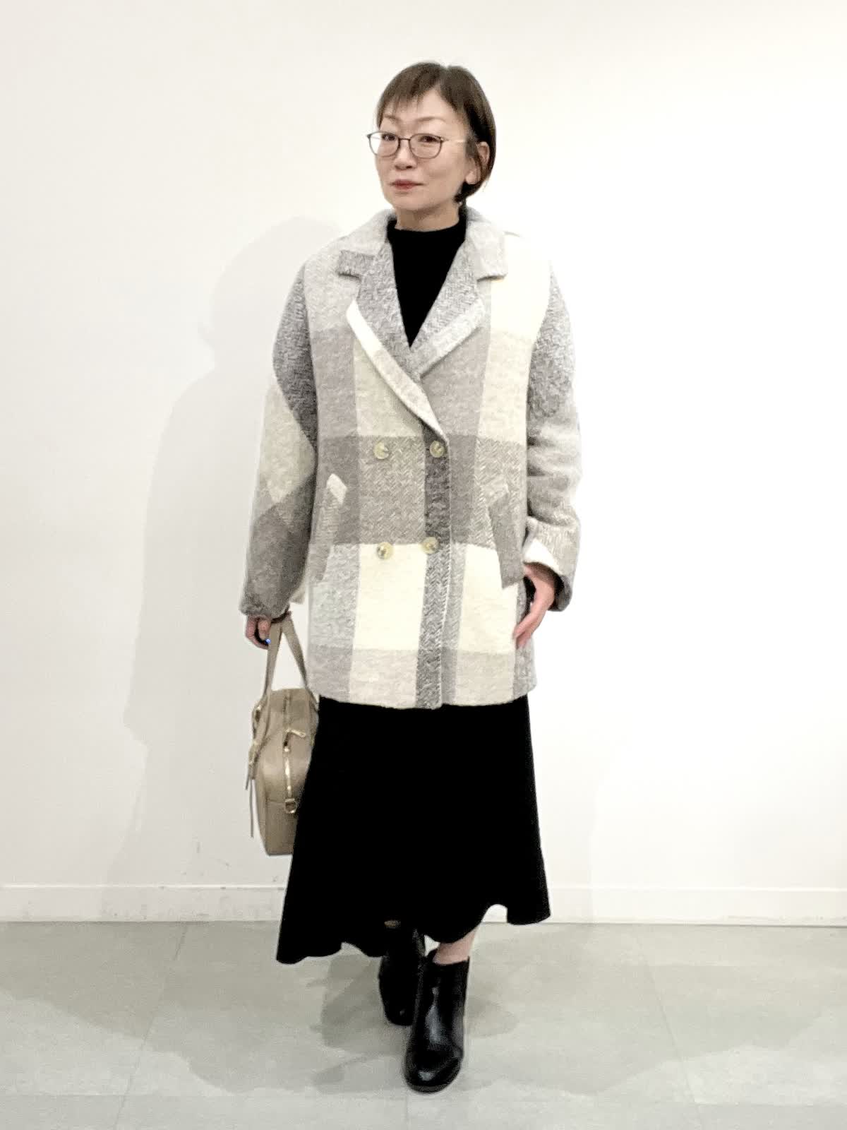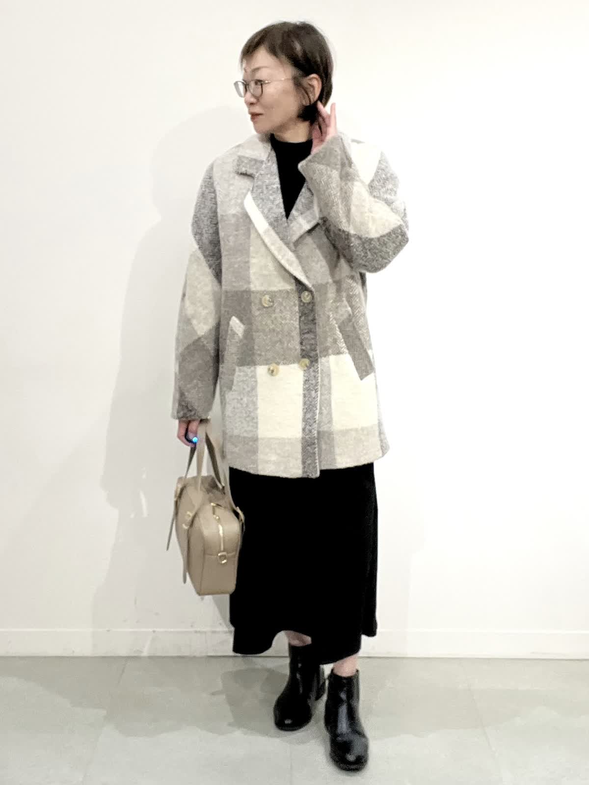 【着用サイズ】コート:09 ワンピース:フリー 【着用カラー】コート:オフホワイト ワンピース:ブラック バック:グレーベージュ イタリア製のコートは立体感のある素材で、ざっくりとした風合いがとで素敵です。ゆったりしたサイズ感なのですが、もたつきがありません。 合わせたワンピースは、胸元で切り替えのあり、シンプルで着心地の良い素材です。ご自宅でお洗濯できます。