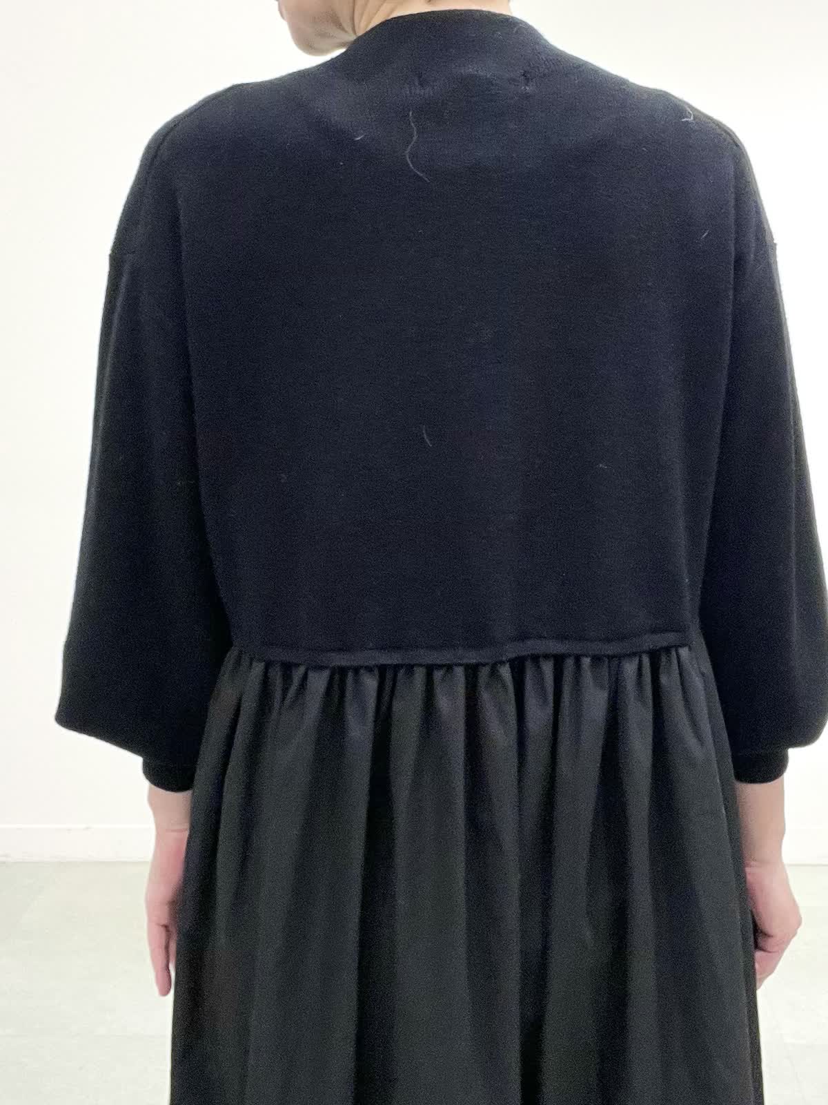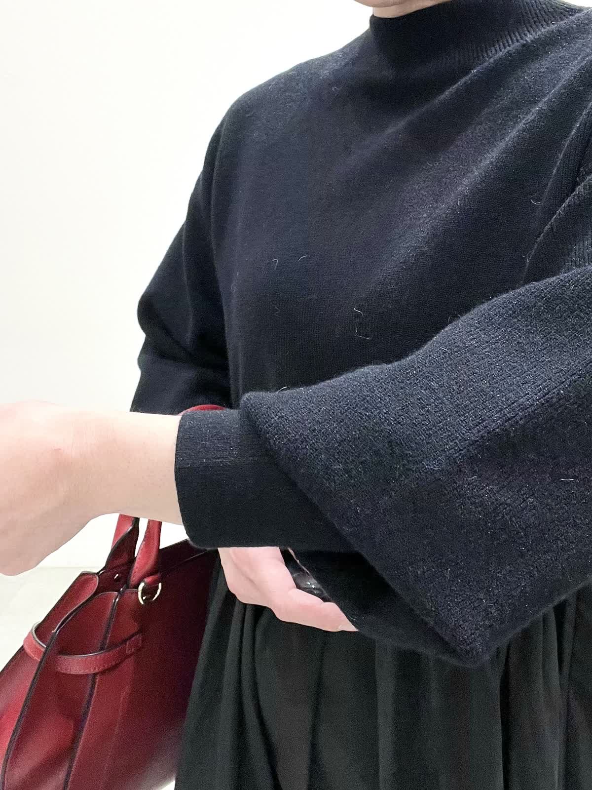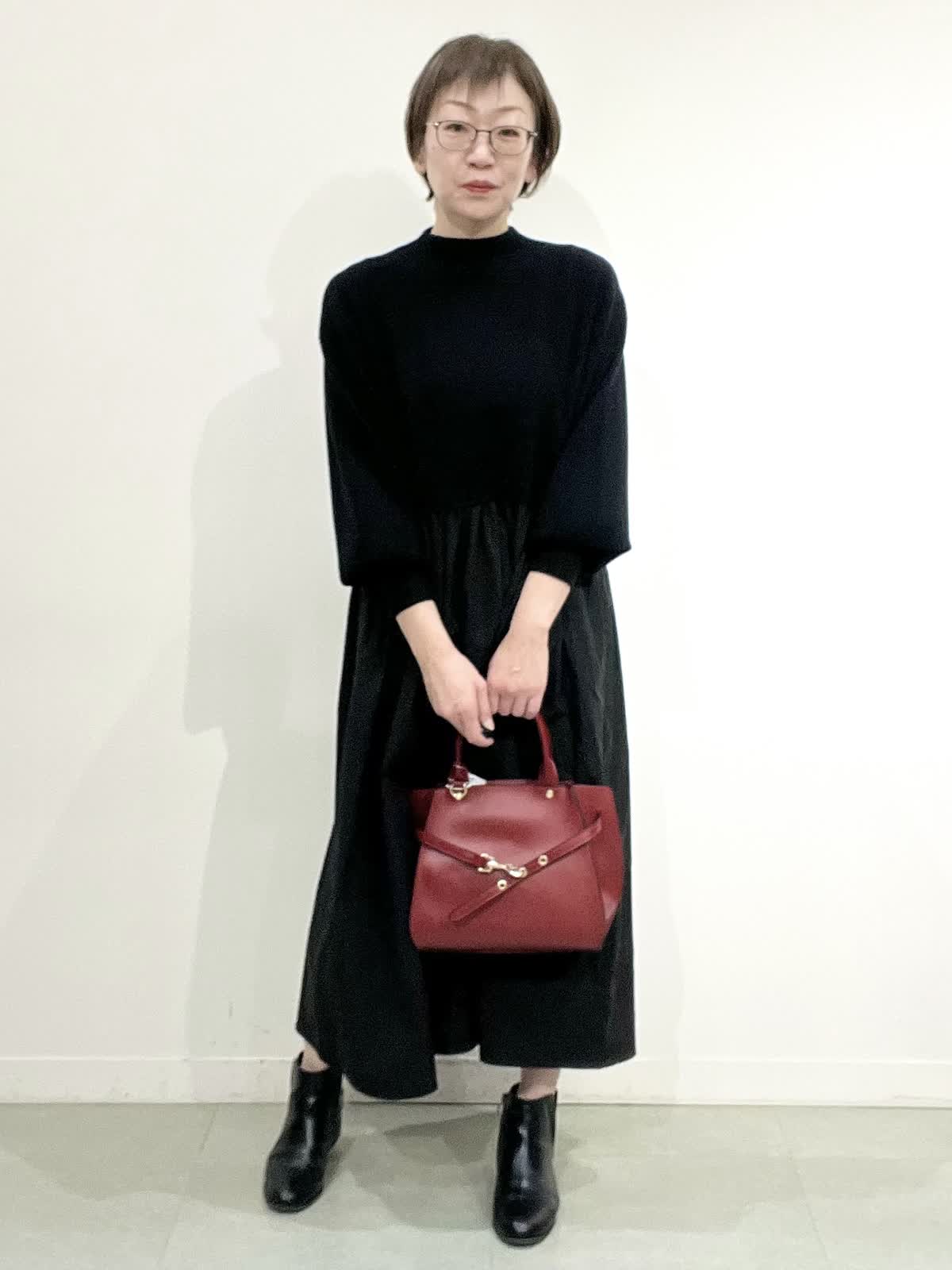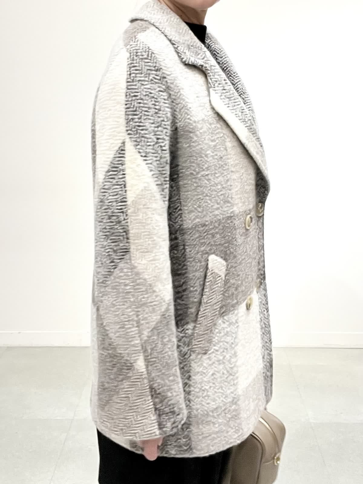 【着用サイズ】コート:09 ワンピース:フリー 【着用カラー】コート:オフホワイト ワンピース:ブラック バック:グレーベージュ イタリア製のコートは立体感のある素材で、ざっくりとした風合いがとで素敵です。ゆったりしたサイズ感なのですが、もたつきがありません。 合わせたワンピースは、胸元で切り替えのあり、シンプルで着心地の良い素材です。ご自宅でお洗濯できます。