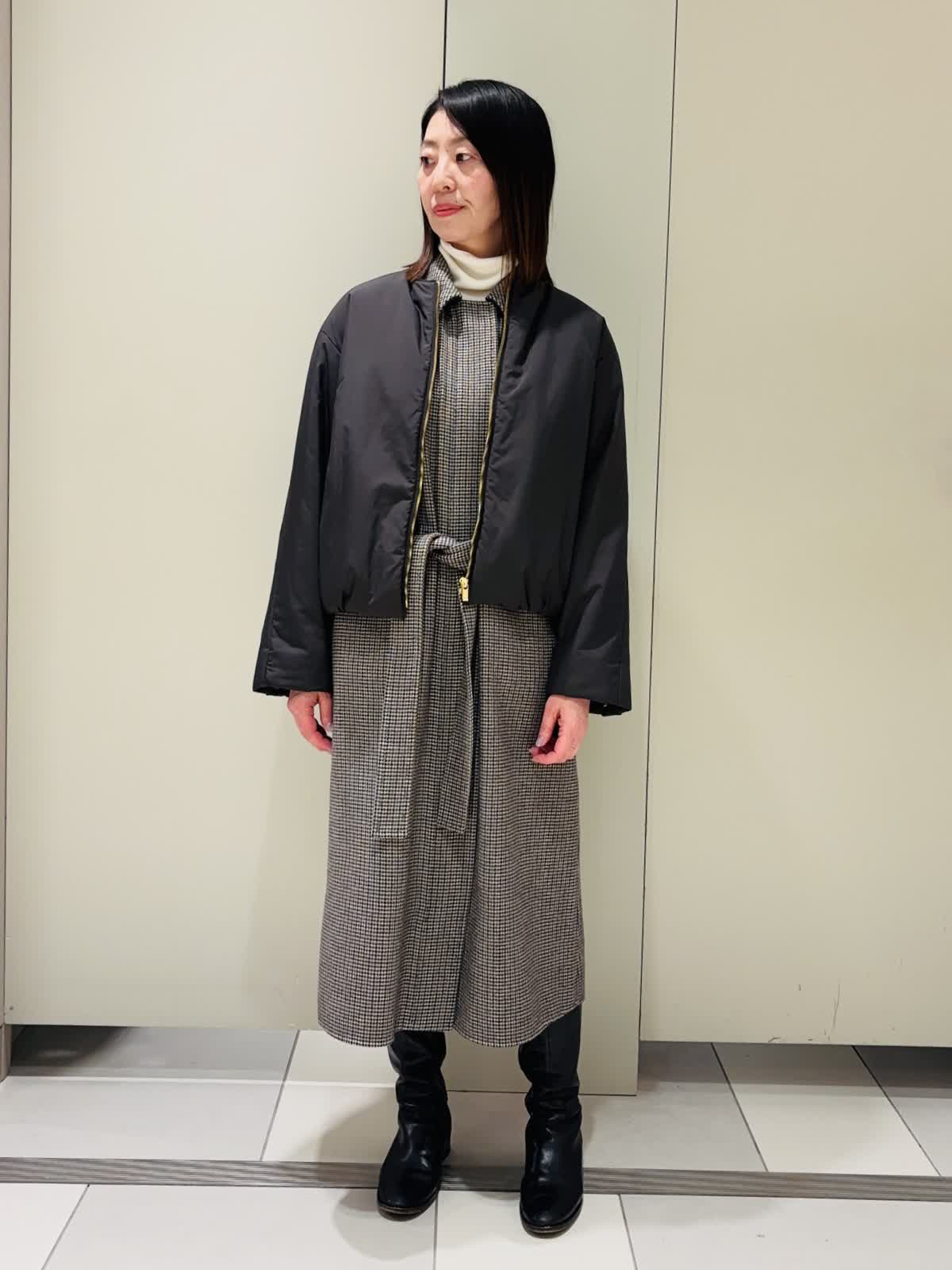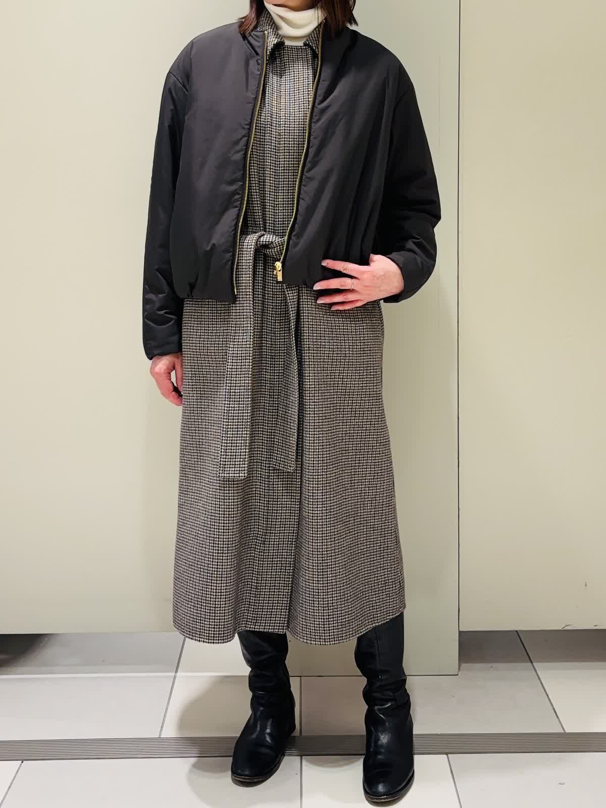 【着用サイズ】ブルゾン:7号 ニット:9号 ジレ:7号 【着用カラー]ブルゾン:ブラック ニット: グレーベージュ ジレ:柄小 軽くて暖かい中綿ブルゾン。裾にギャザーが入っていてるが裾にグログランテープを使用しているので広がりすぎずコンパクトなシルエットに。ゴールドのファスナーもカジュアルすぎず大人っぽく着られます。袖口もボタンで調整できます。 スカート、パンツ、ワンピースなど何でも合わせやすくおすすめです。