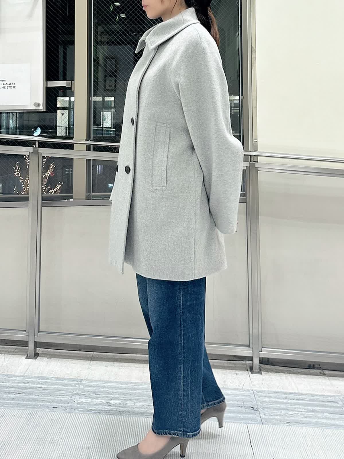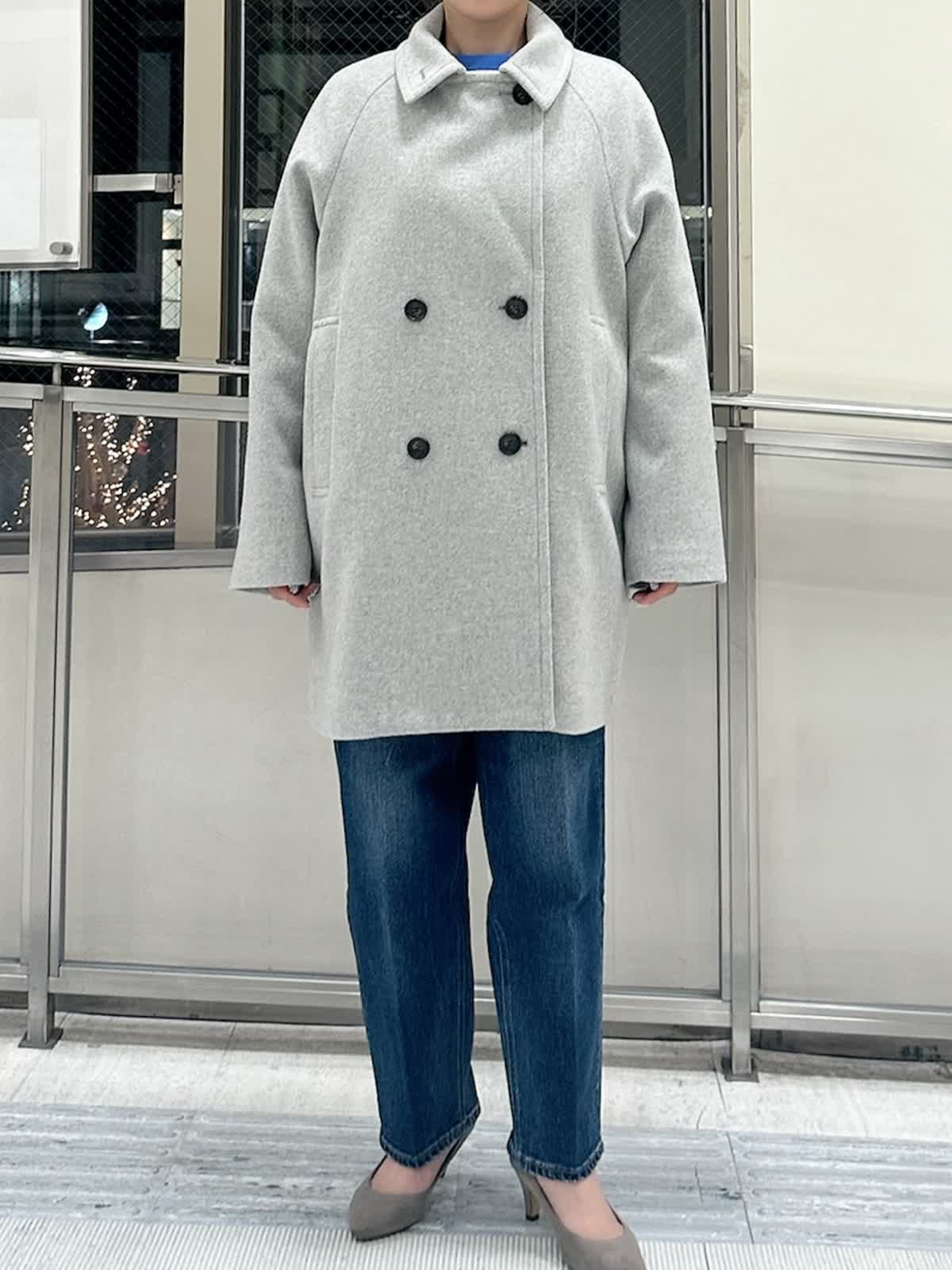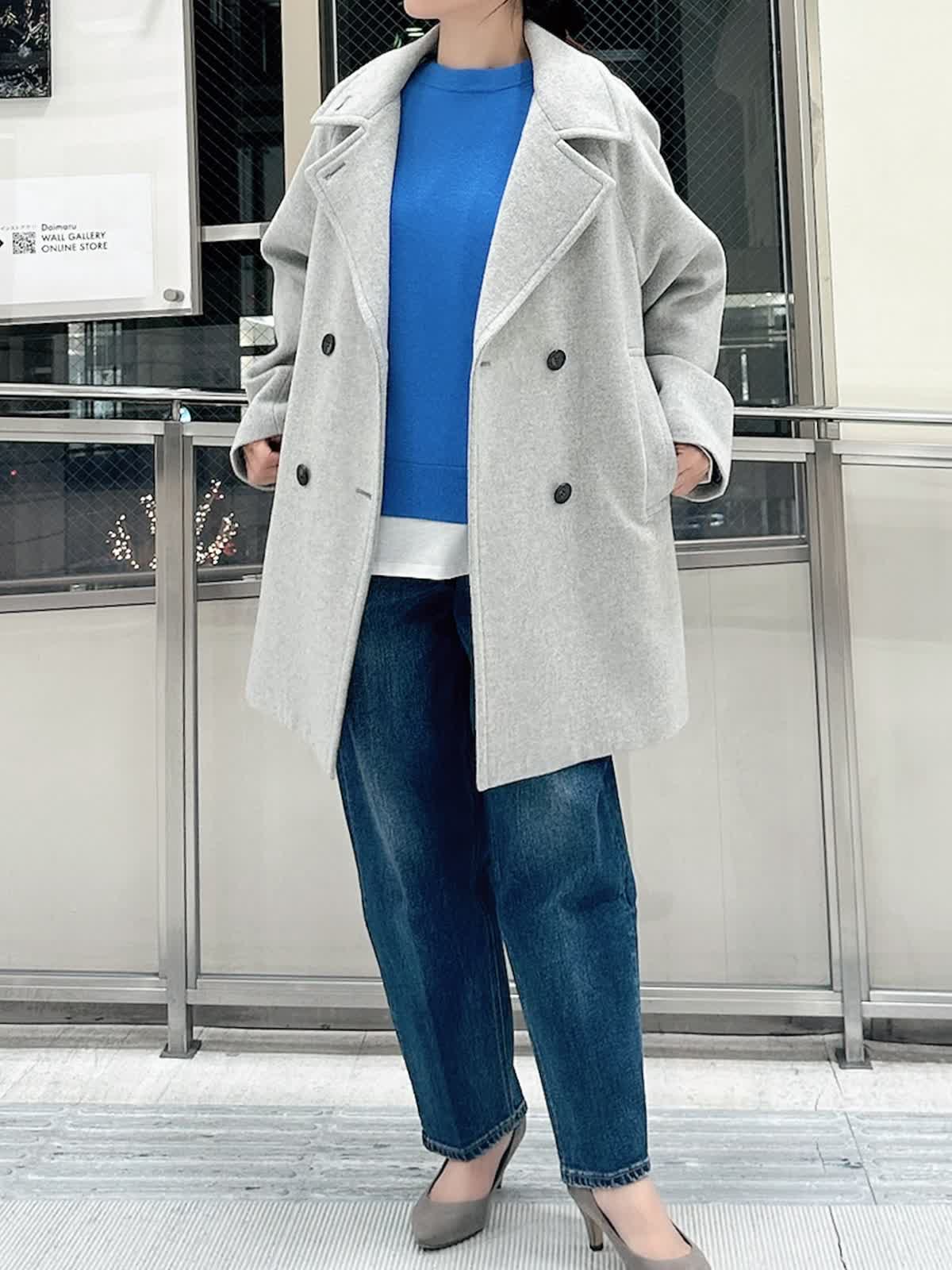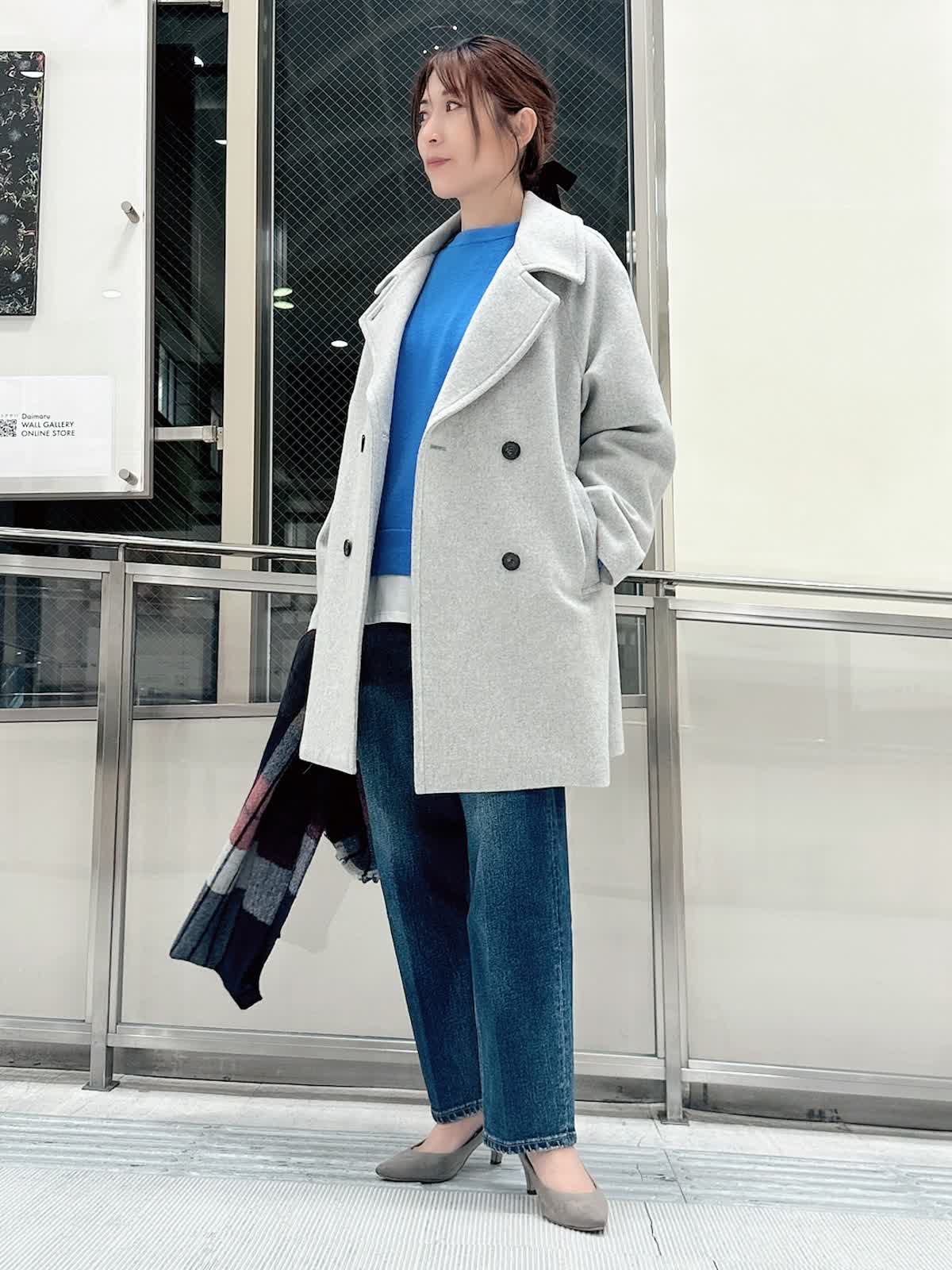 【着用サイズ/カラー】 コート:フリー/グレー ニット:9号/ブルー パンツ:9号/インディゴ カットソー:フリー/ホワイト 暗い色になりがちな冬のコーデを、鮮やかなブルーニットで華やかに。キレイ色のニットは春先まで重宝します。 ニットの裾から白をのぞかせて、抜け感をプラス。白ロンTを一枚インするだけで洗練された印象に。