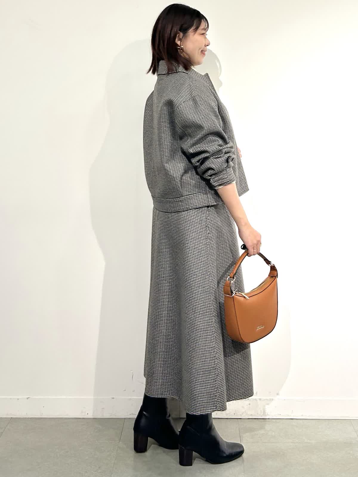 【着用カラー】ブルゾン・スカート:柄小 ニット:オフホワイト