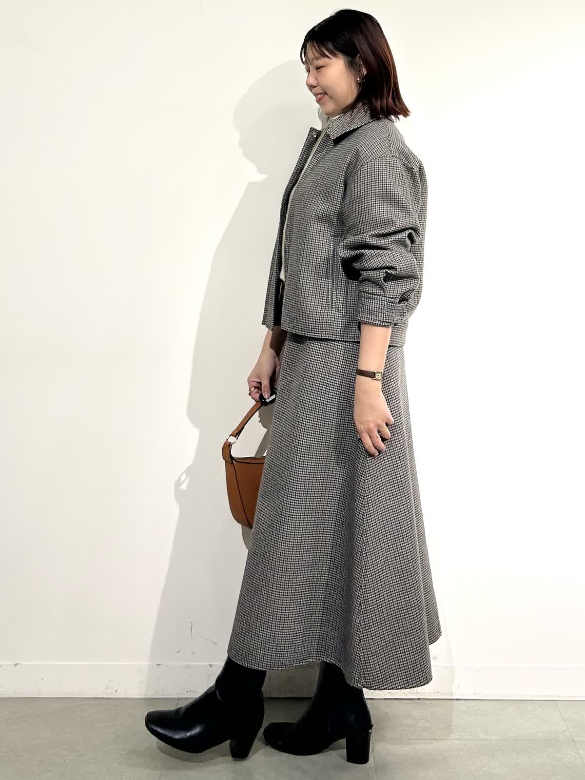 ダブルフェイスの生地は毛玉になりにくく、空気を含むので見た目以上に軽く手暖かいです。ブルゾンは袖のゆとり感が今っぽいシルエットになり、着丈がコンパクトですっきりとまとまるのでスカートもパンツもワンピにも合わせらる万能さです。