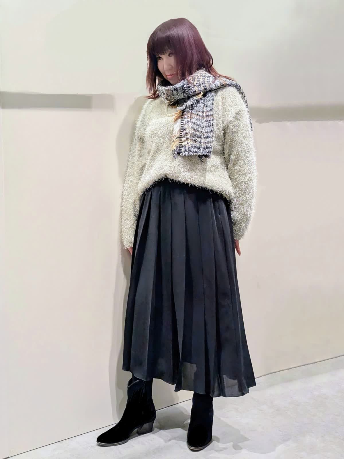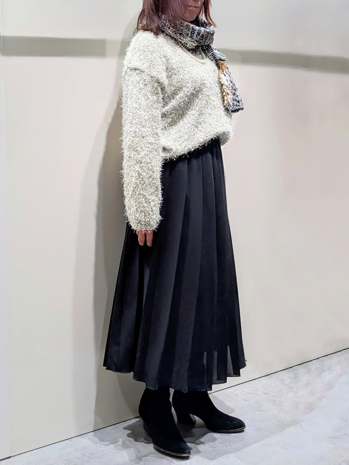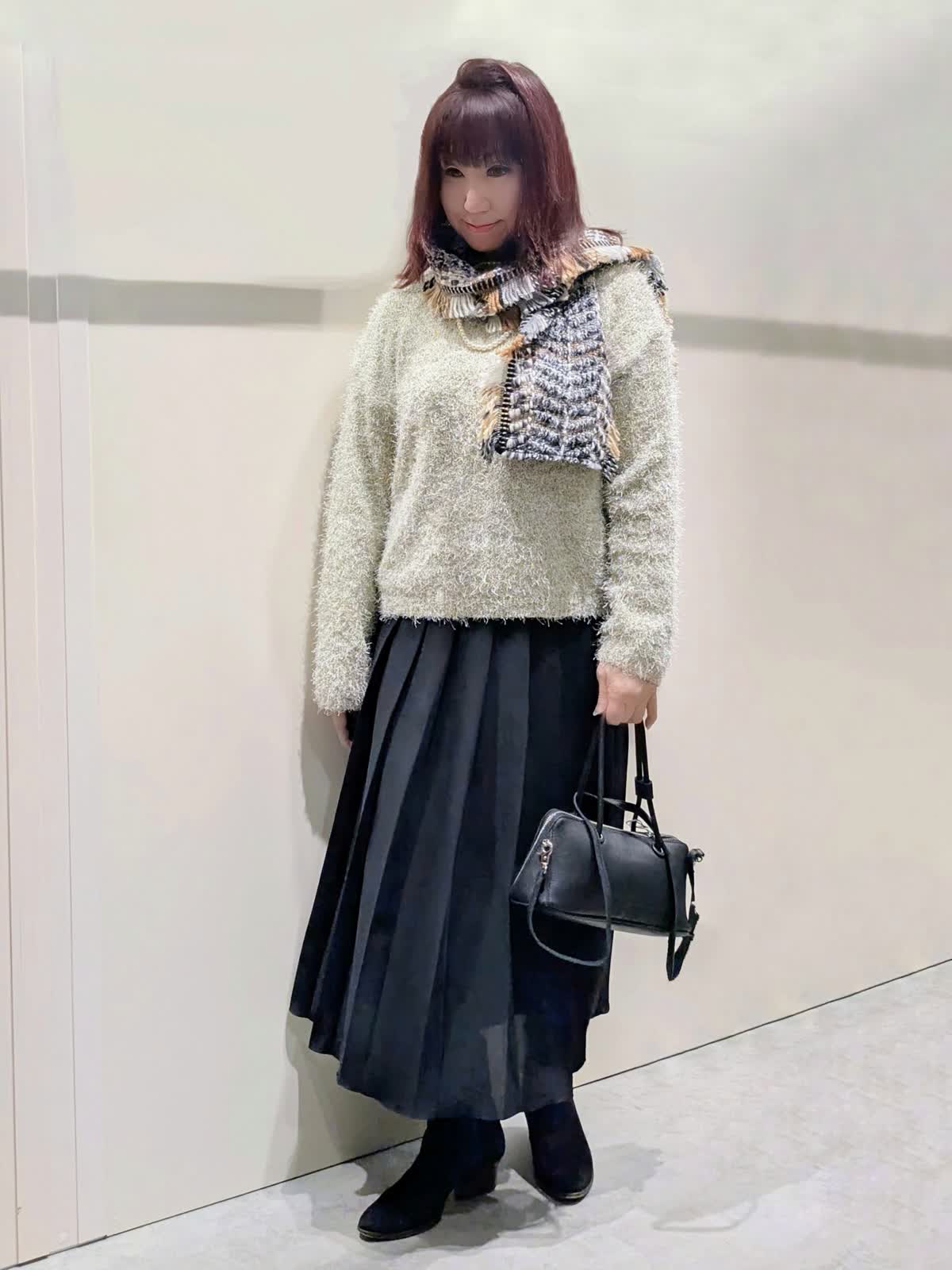 Le SoukニットとニットとスカートとスカートとバッグとINEDアクセサリーとLe Soukストールと7-IDconcept.コートとコート(近鉄あべのハルカス7-IDconcept.)