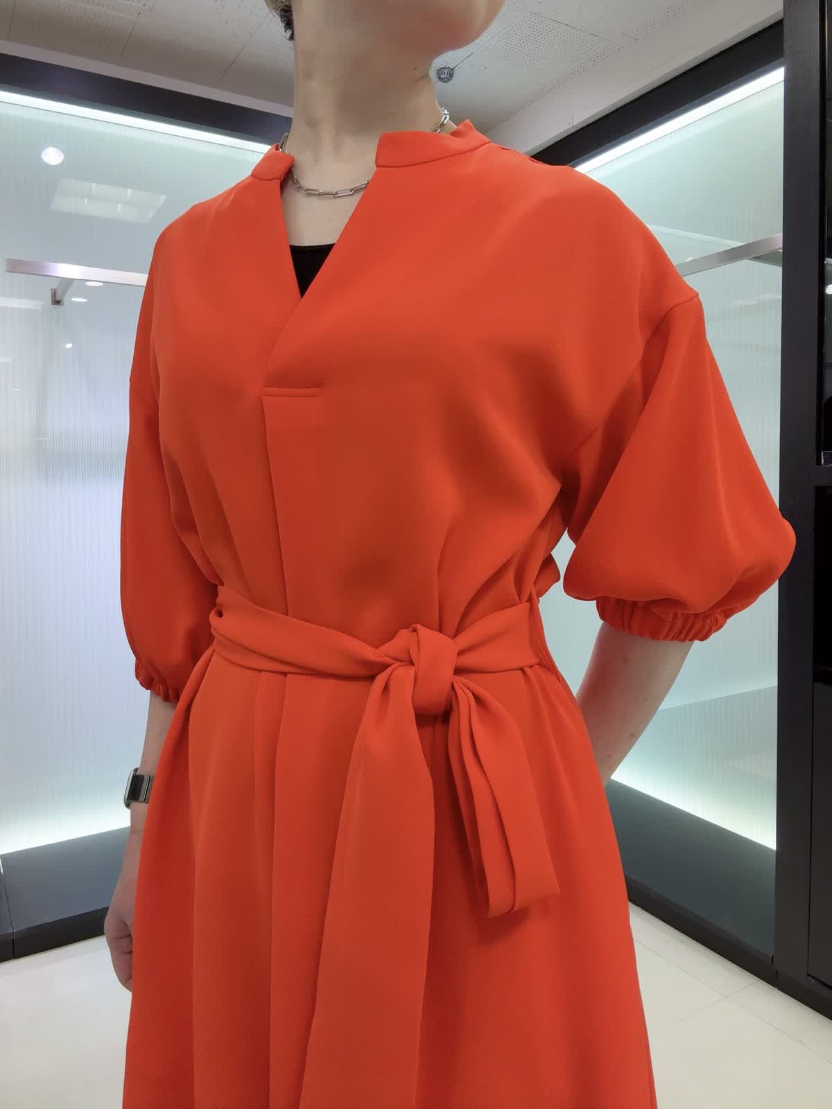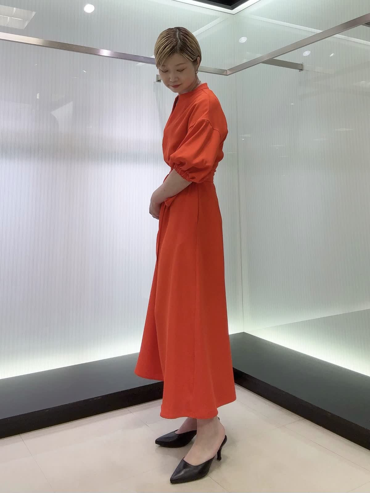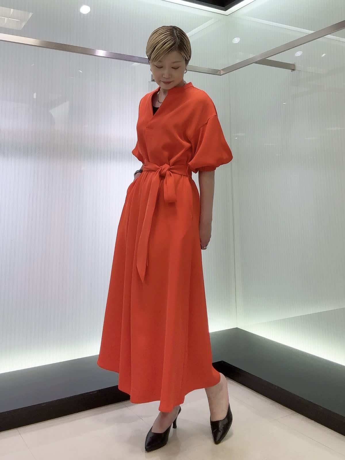 【着用カラー・サイズ】ワンピース : オレンジ/9号 エレガントなスキッパーワンピース♪共布のサッシュベルトで綺麗なシルエットになりスタイルアップ効果があります。お呼ばれなど特別な日の装いにおすすめです!