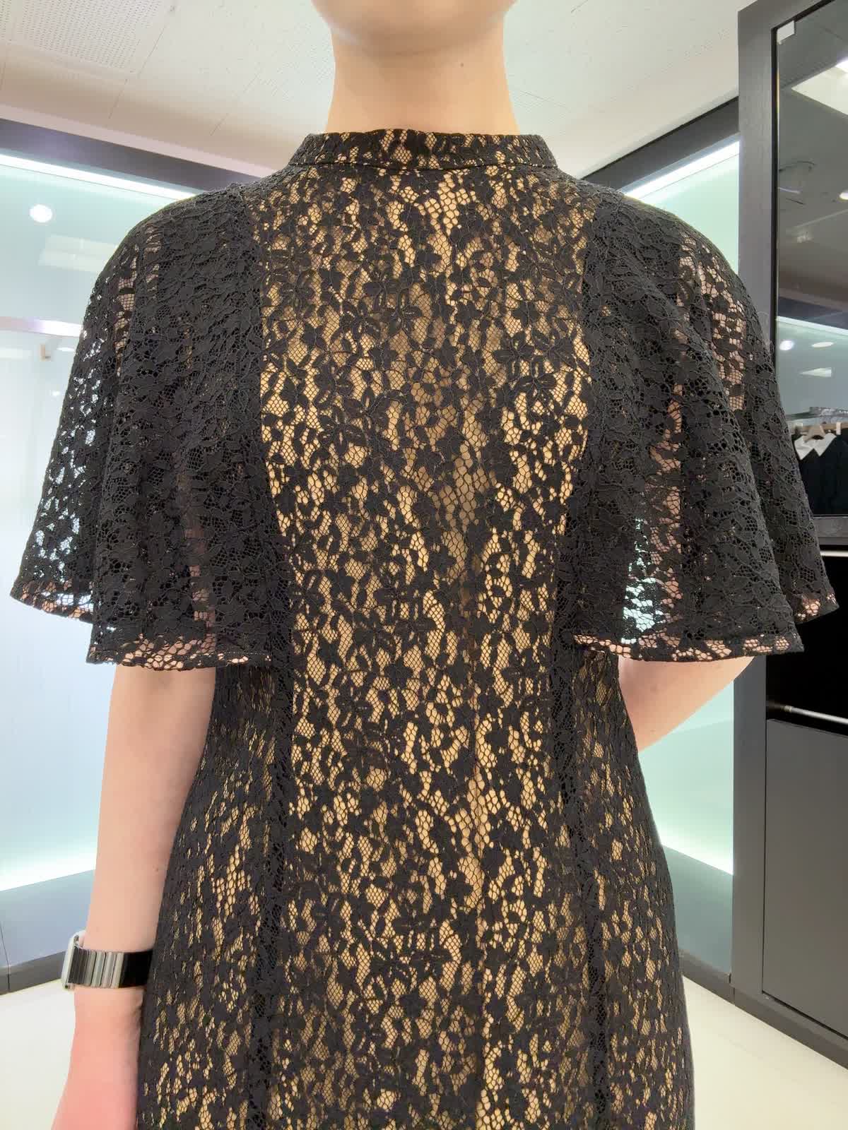 【着用カラー・サイズ】ワンピース : ブラック/9号 大人っぽい小花柄のレースワンピース♪マーメイドシルエットなのでスタイルアップ効果があり、着やせして見えます。また、二の腕をカバーしてくれるデザインも嬉しいポイント!同窓会や結婚式など特別な日の装いにおすすめです。