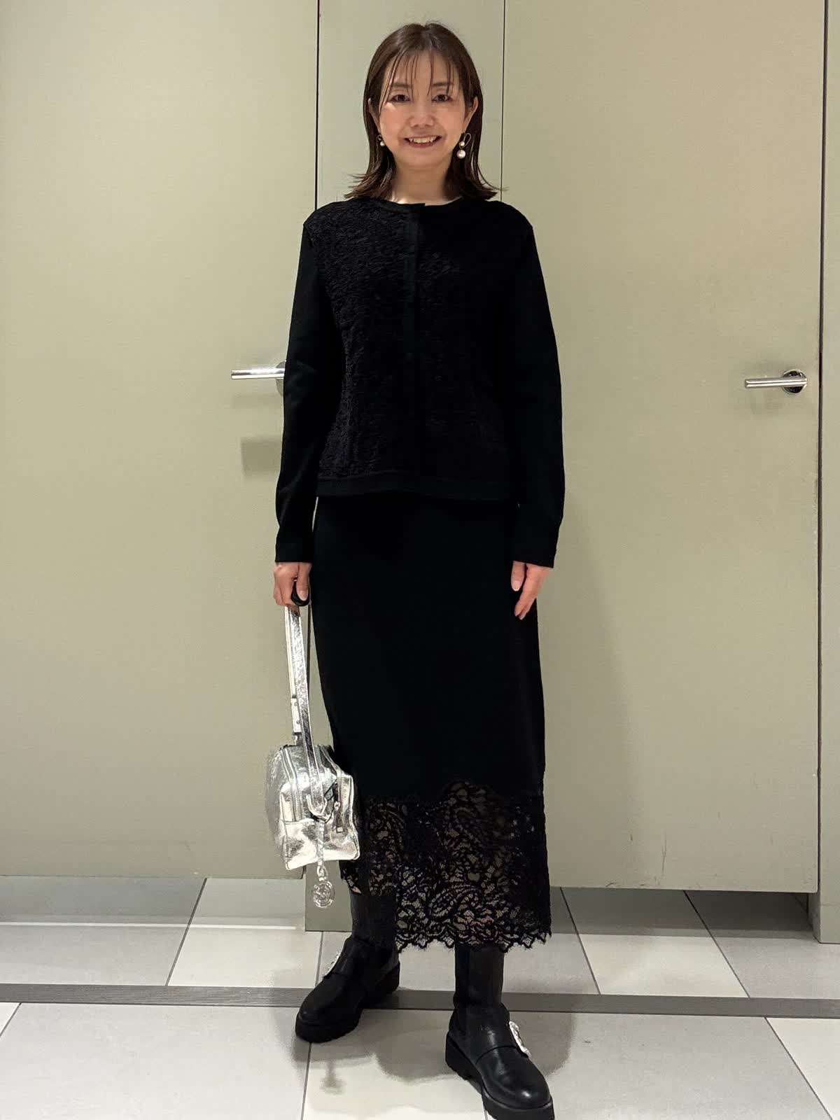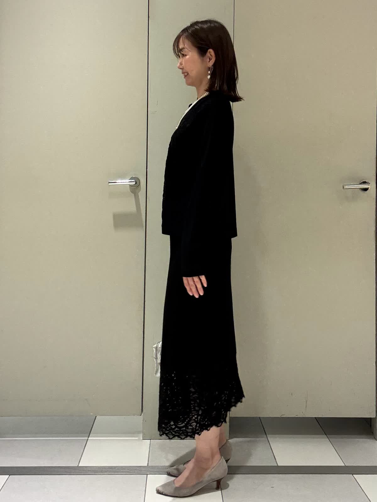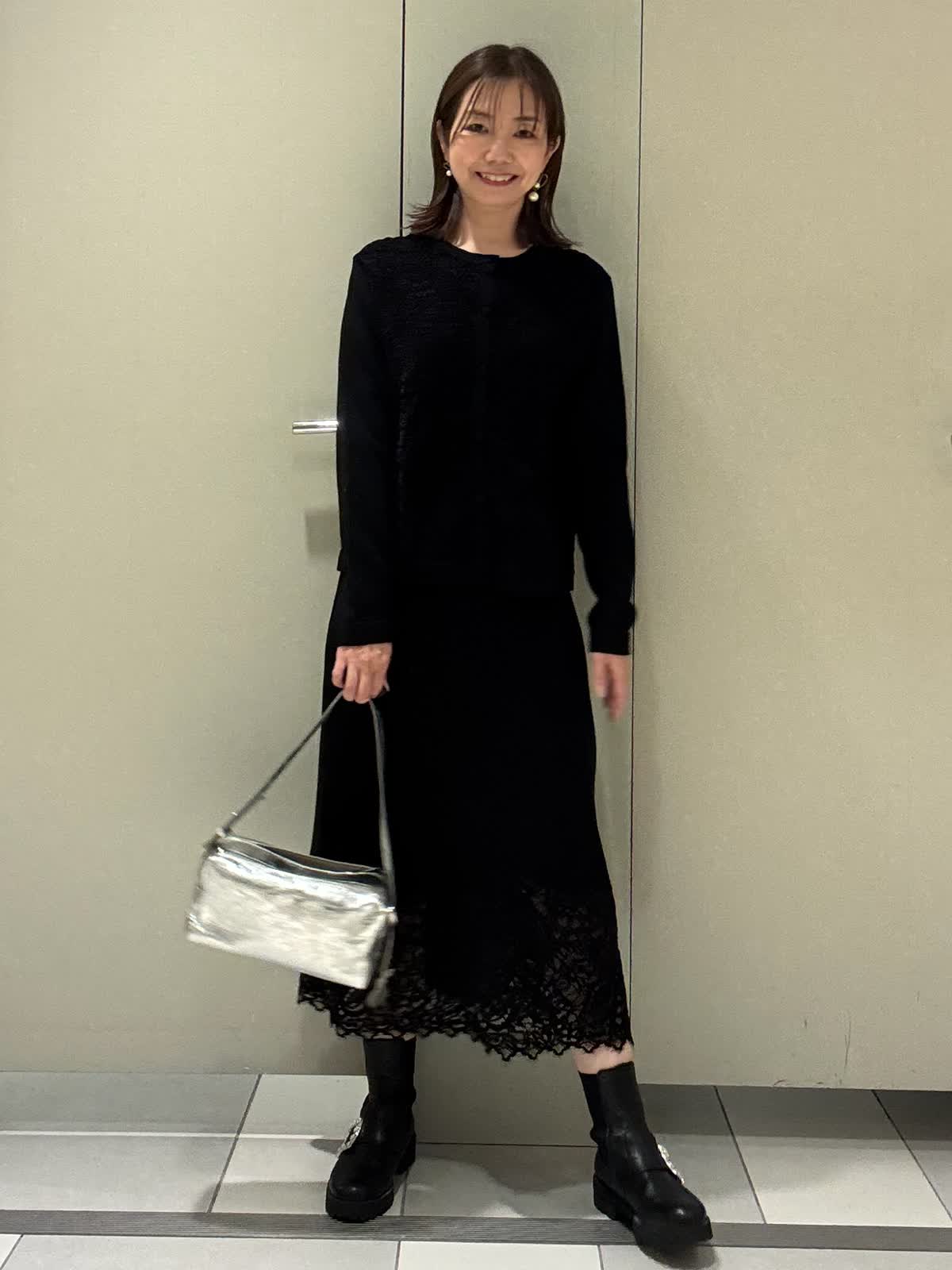 【着用サイズ】全て:9号 【着用カラー】ニット、スカート:ブラック セットアップで着るとキレイめコーデになり、お食事やセミフォーマルでもお召しいただけます。 スカートはオールゴムになり、9号を着用してますが購入する際はいつものサイズの7号を購入します。