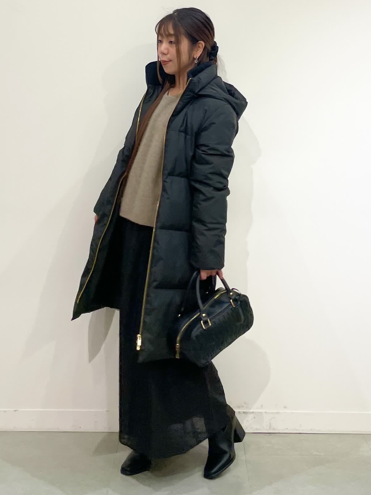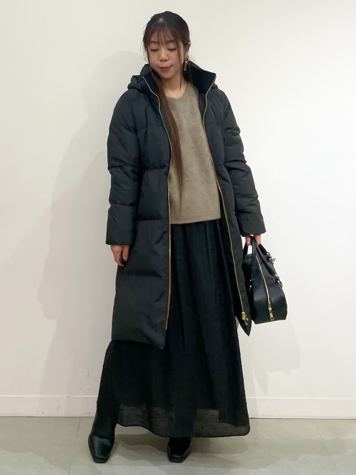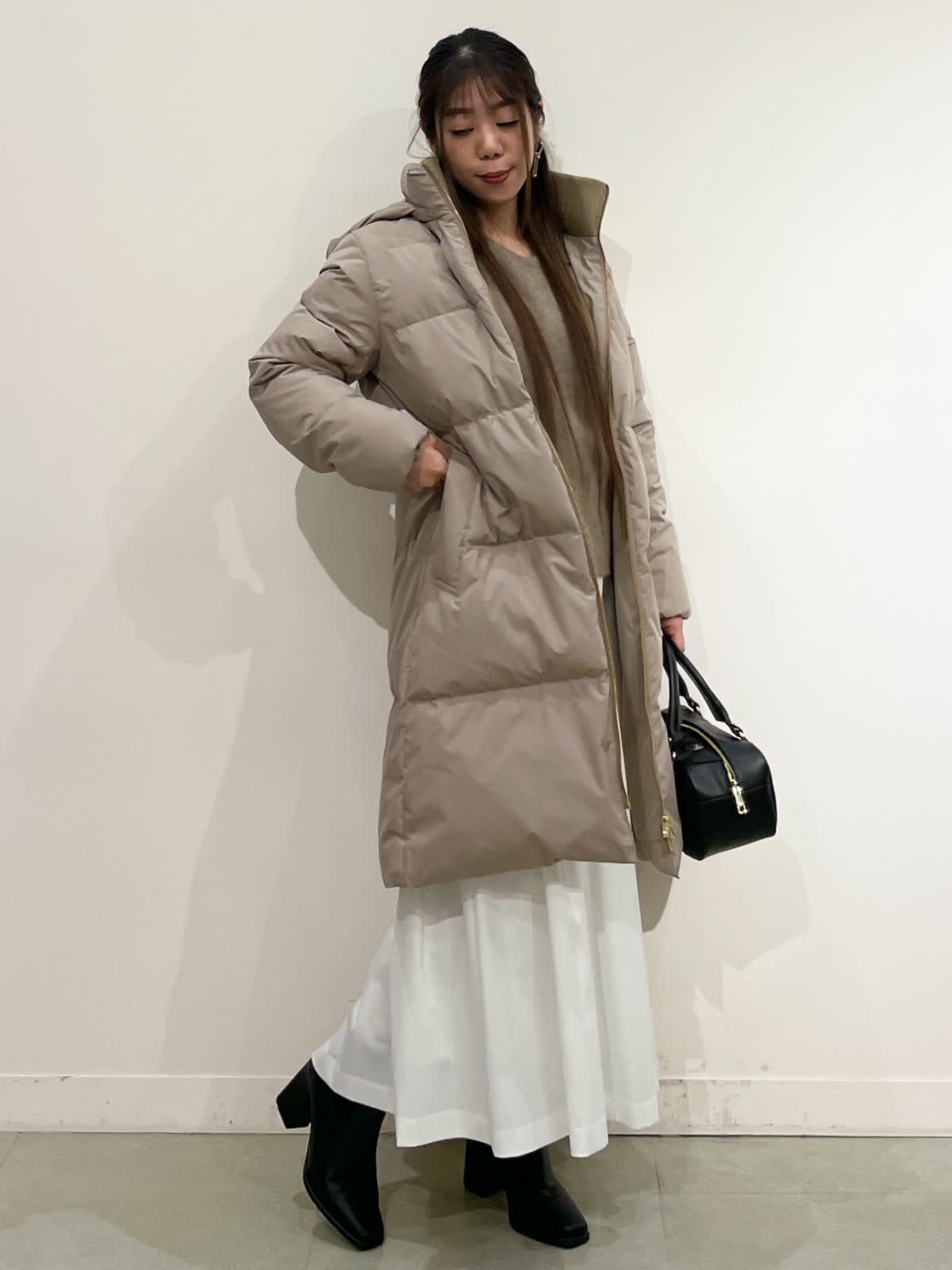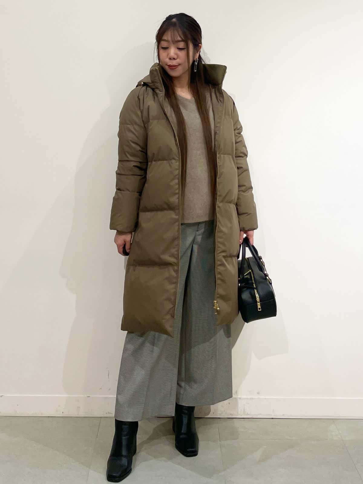 【着用サイズ】コート:9号ニット:9号/パンツ:7号/スカート:7号 コート:ブラック・ベージュ・モカチャ スカート:ブラック・オフホワイト/パンツ:チドリ バック:チドリ 休日のお出かけコーデ。着回し抜群ダウンコートはとても軽く、ジャストなサイズ感のデザインなので用途に合わせてスタイリングを幅広く着て頂けるおすすめの1枚です。