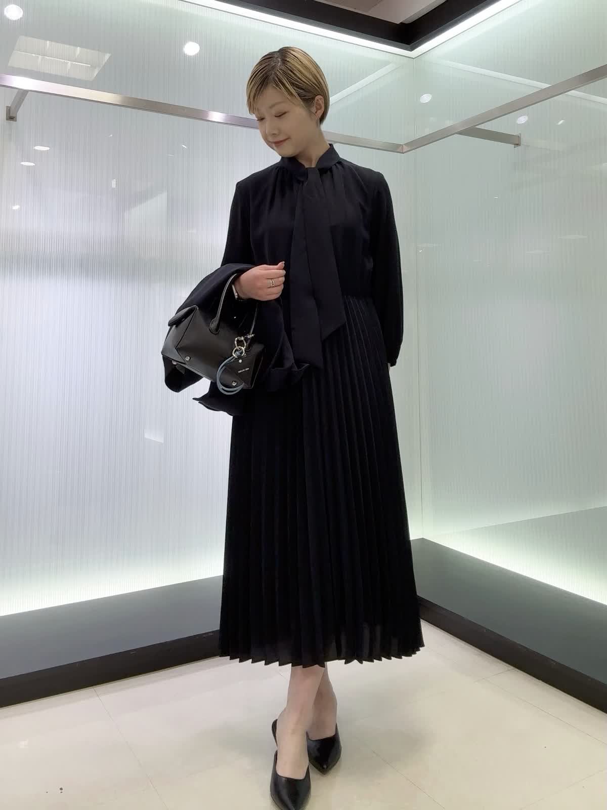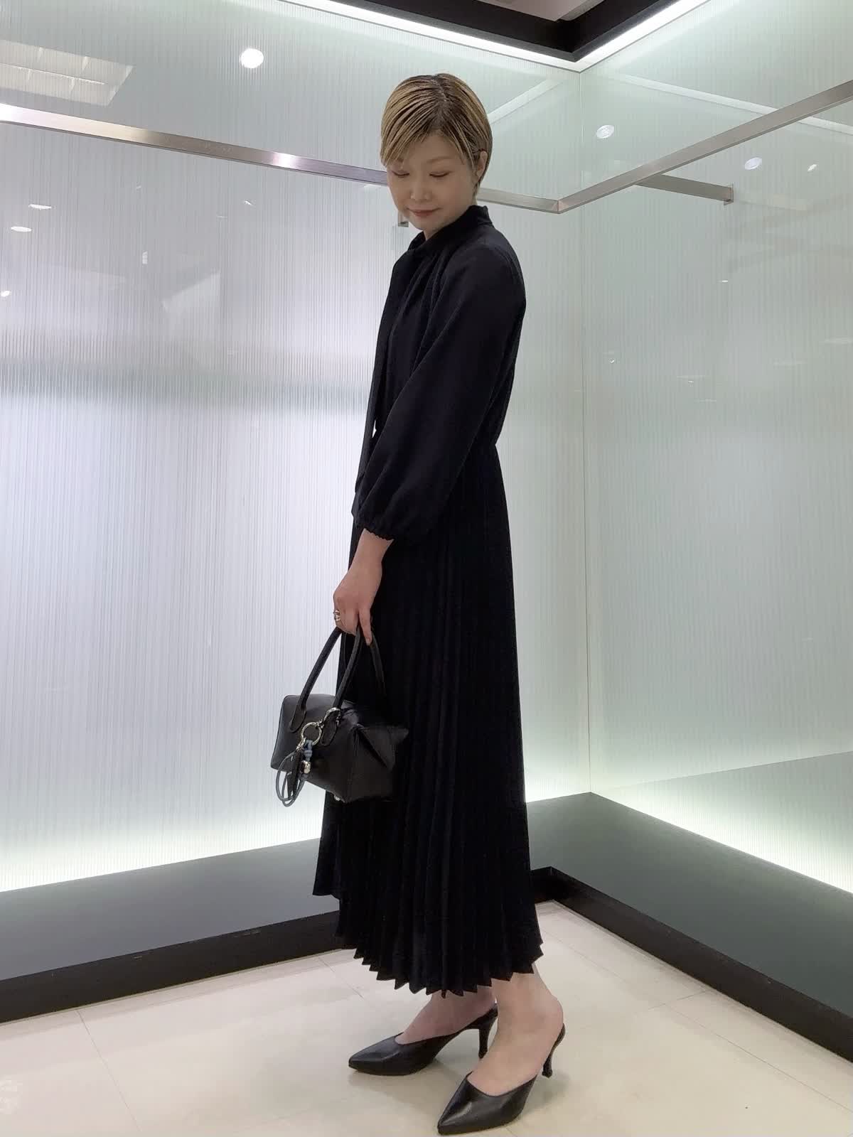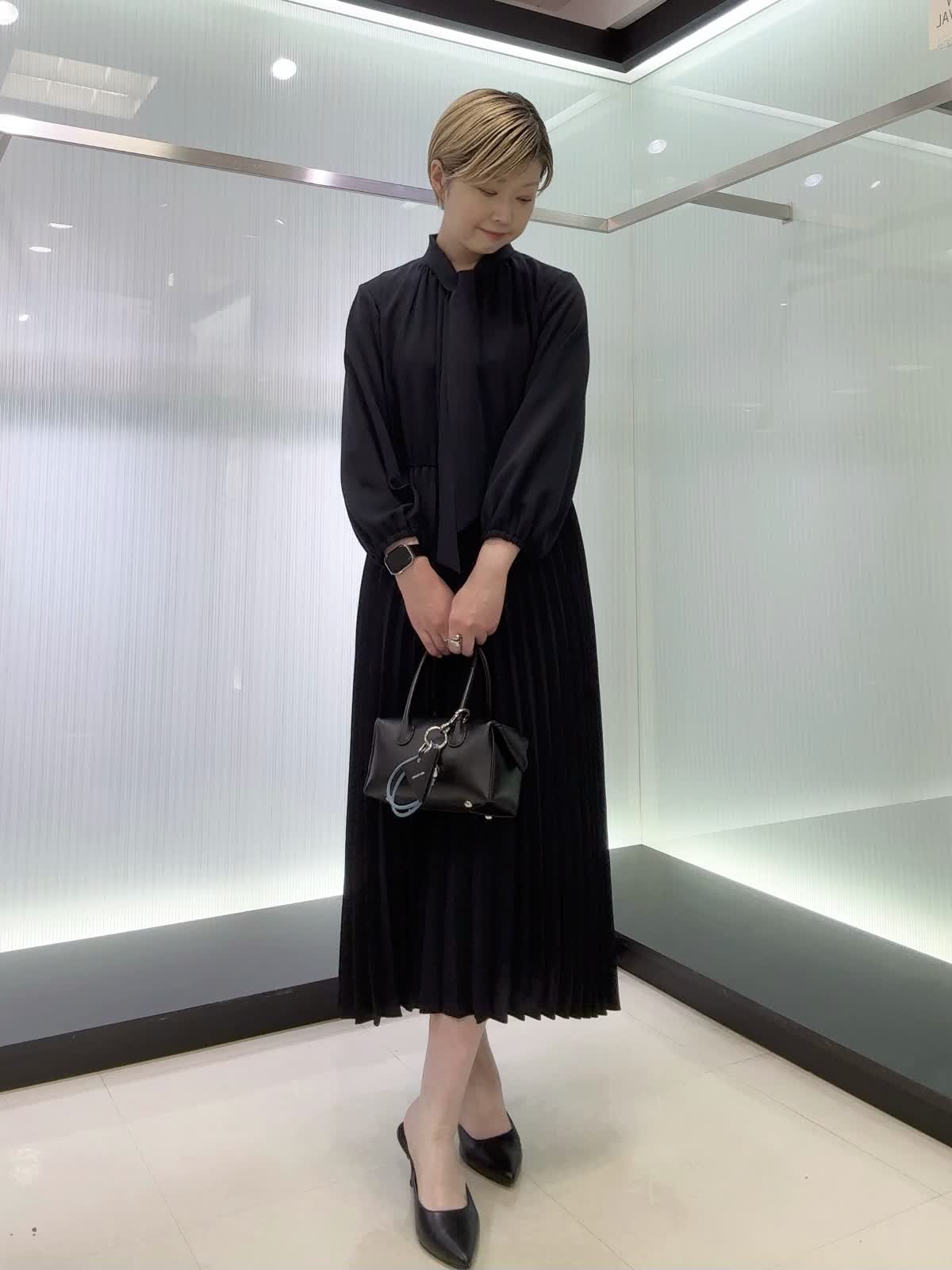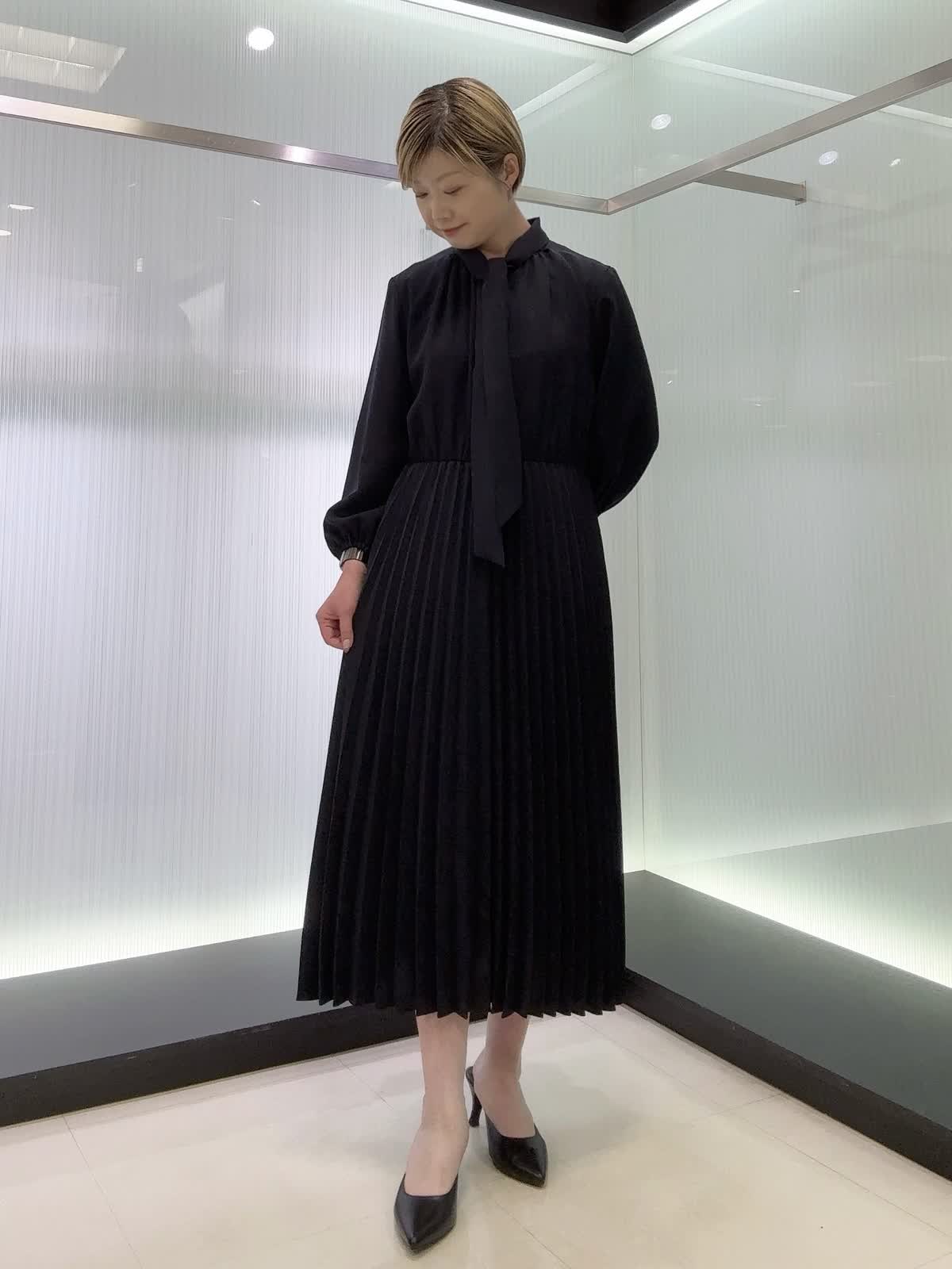 【着用カラー・サイズ】ワンピース : ネイビー/7号 上品なボウタイ付きワンピース♪スカート部分はプリーツなので動いた時の揺れ感が素敵なワンピースです。ウエストはゴム使用なのでストレスフリー。年間を通して着られる素材なのでおすすめです!