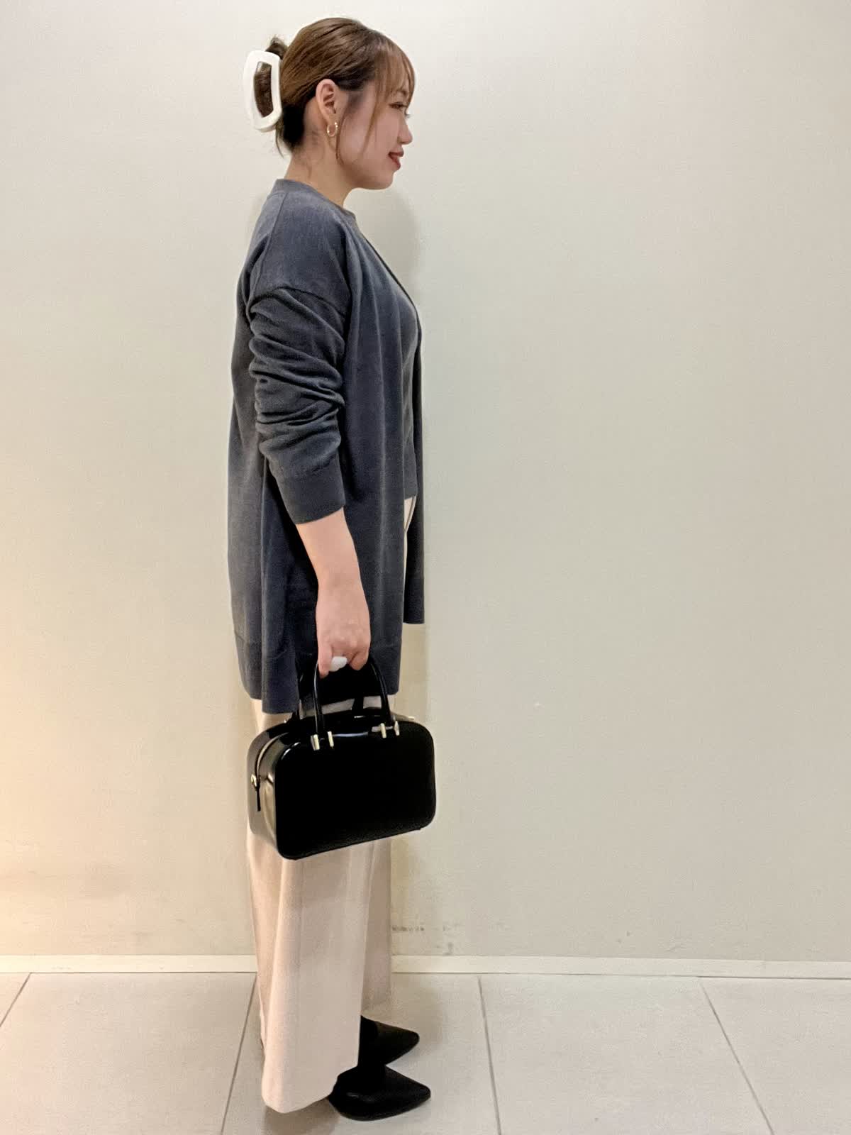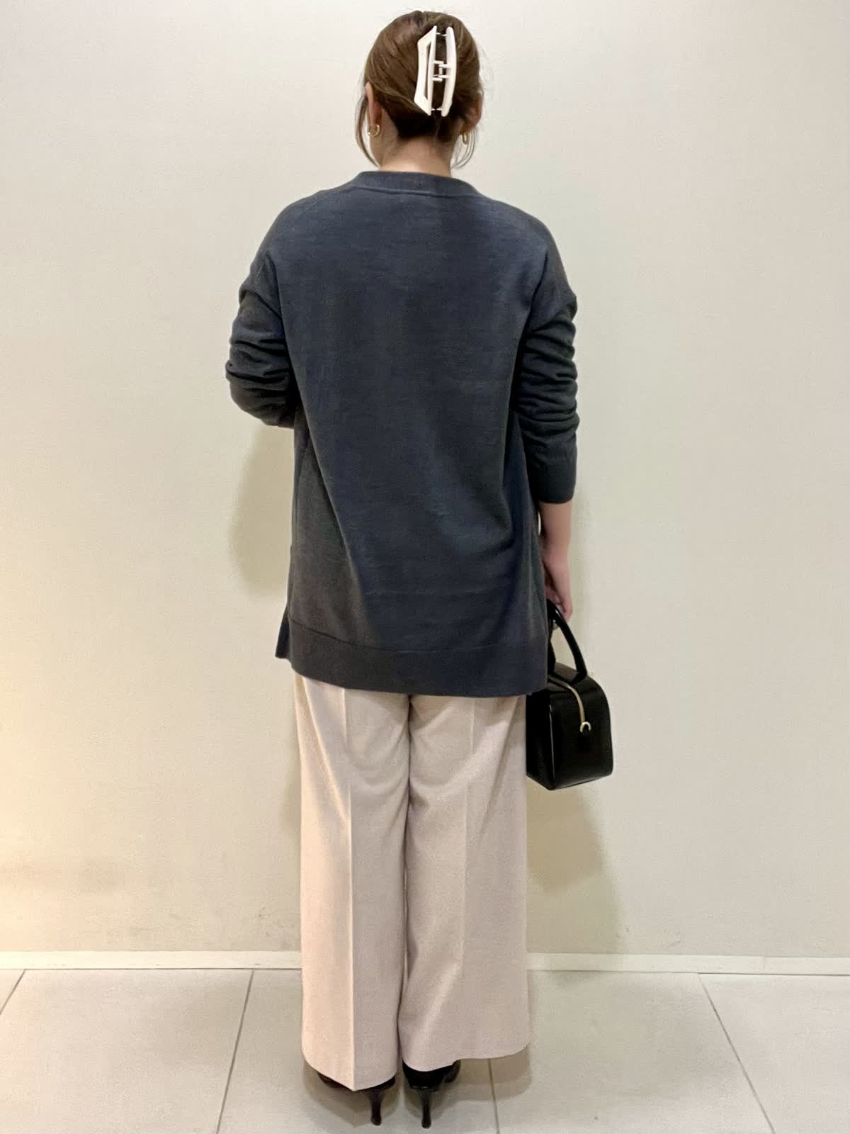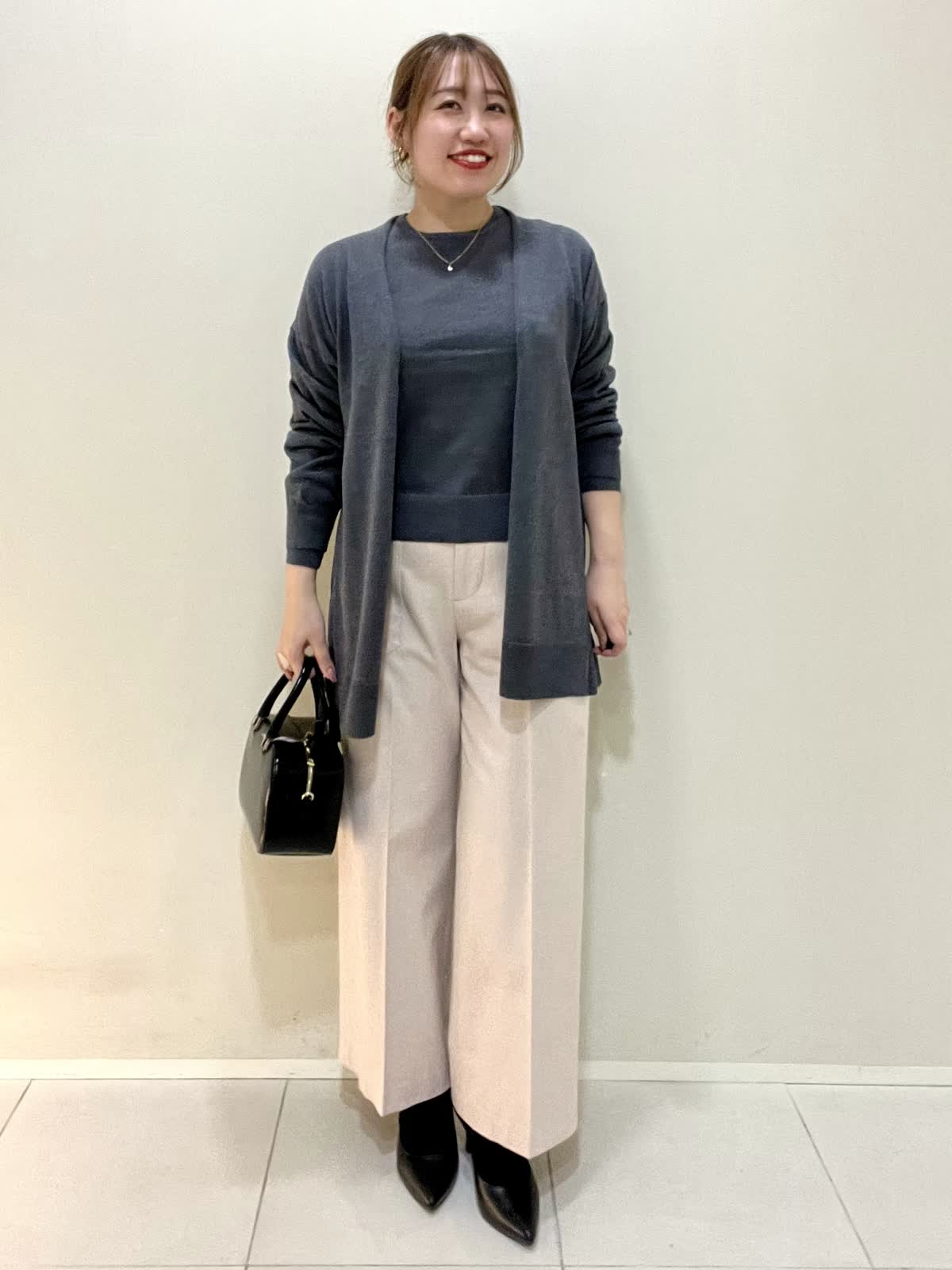 【着用サイズ】カーディガン:フリー ニット:フリー パンツ:M 【着用カラー】カーディガン:チャコールグレー ニット:チャコールグレー パンツ:ベージュ 通勤コーデ。毎年の人気の着流しカーディガンとクルーネックニットをアンサンブルで合わせました。ウール100%のカーディガンとアンサンブルはベーシックなデザインなのでお仕事などで使いやすいです。ご自宅で洗えるウールなので気兼ねなく着やすいです。ワイドパンツはウール混で暖かく、センタープレスなので綺麗めに使えます