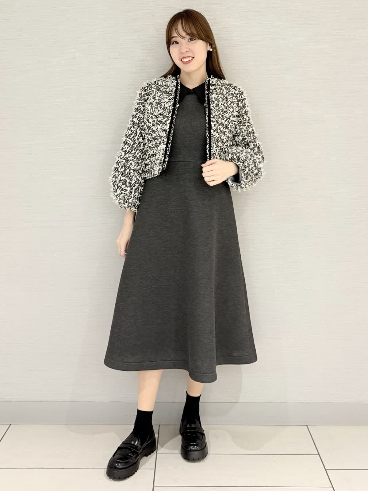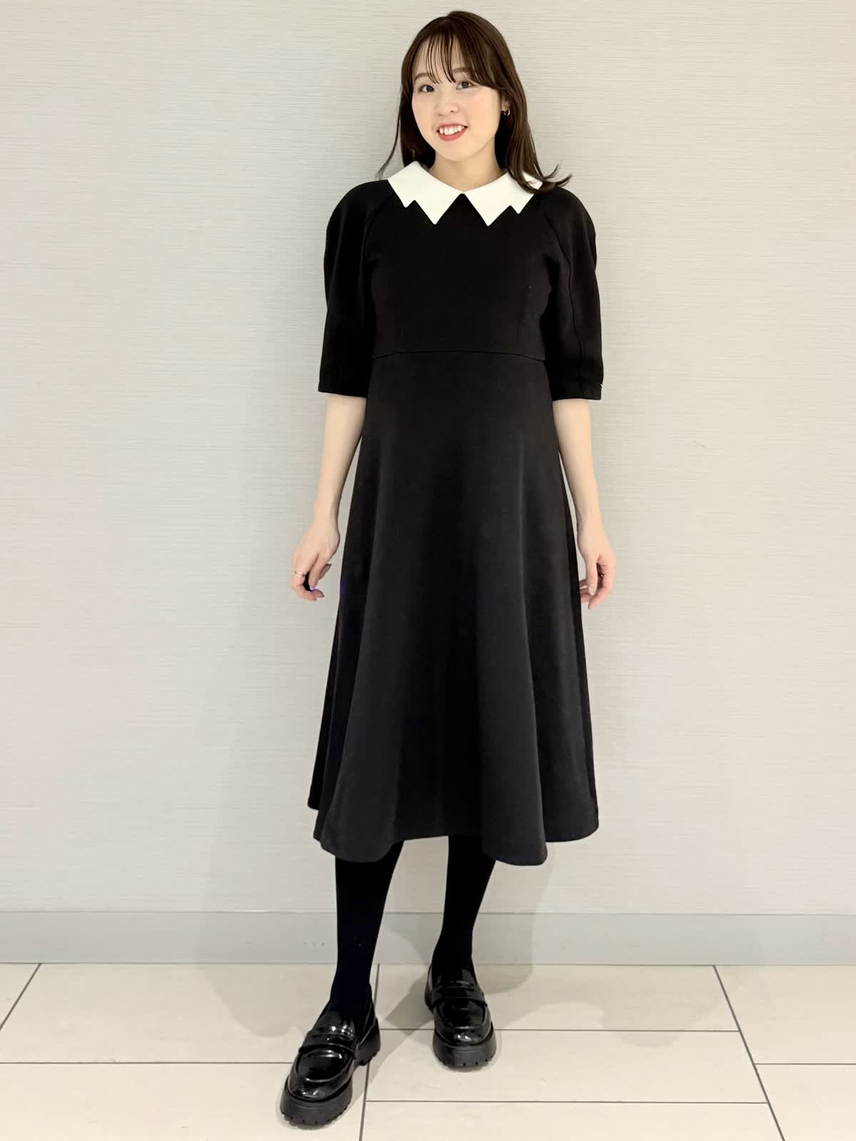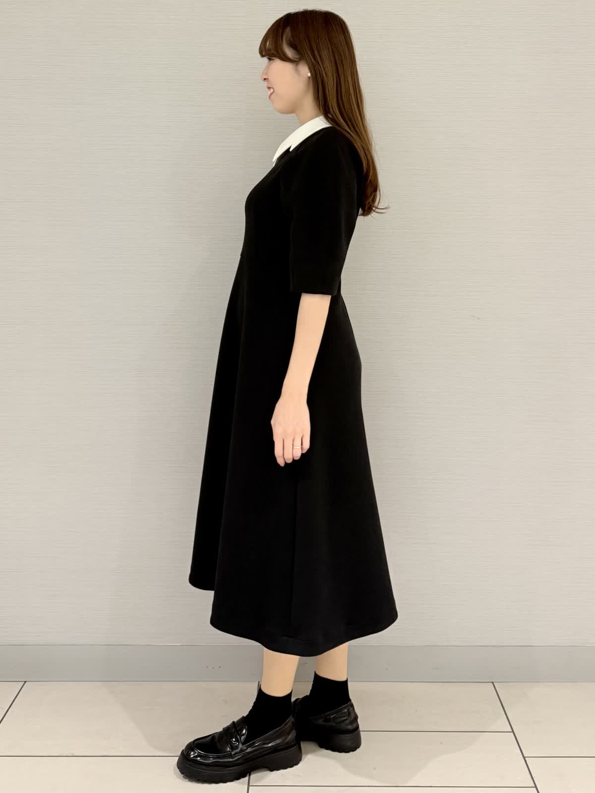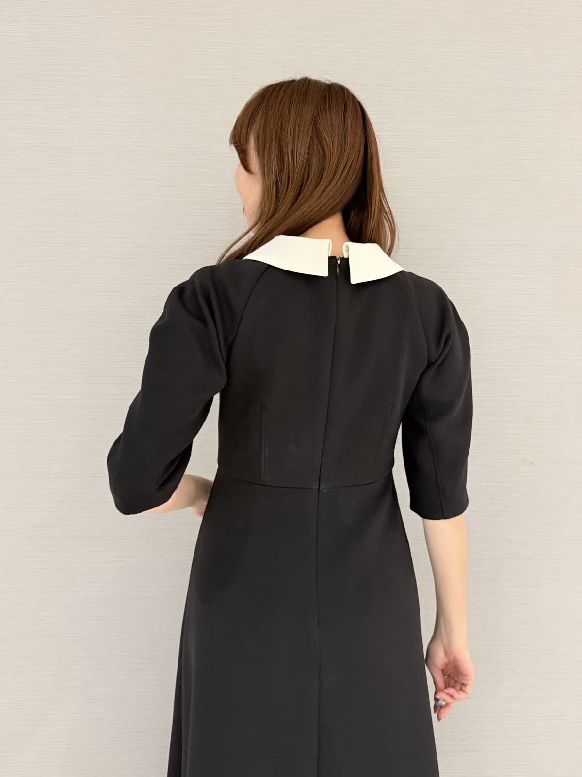 【着用サイズ/カラー】ワンピース:9号/ブラック冨張愛さんコラボアイテム♪ワンピースは襟とお袖に拘りフェミニンにモード感がプラス。黒は衿が白なのでエレガントにお召しいただけます。グレーは衿が黒なのでモード感があり甘さダウン。生地はグレーよりも黒の方が膨らみが少ないです。