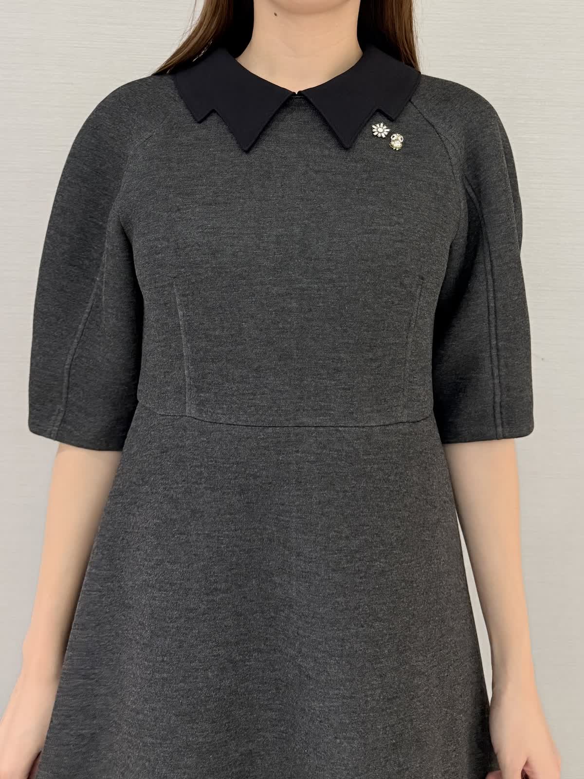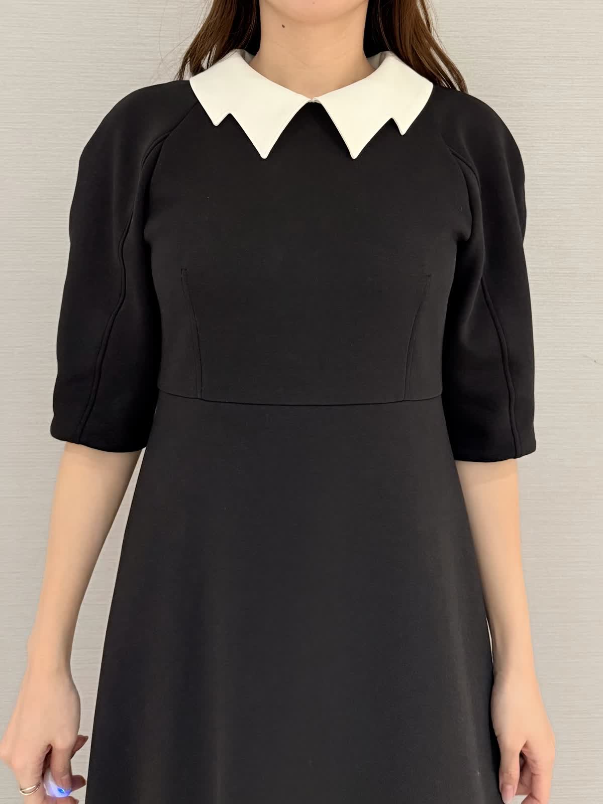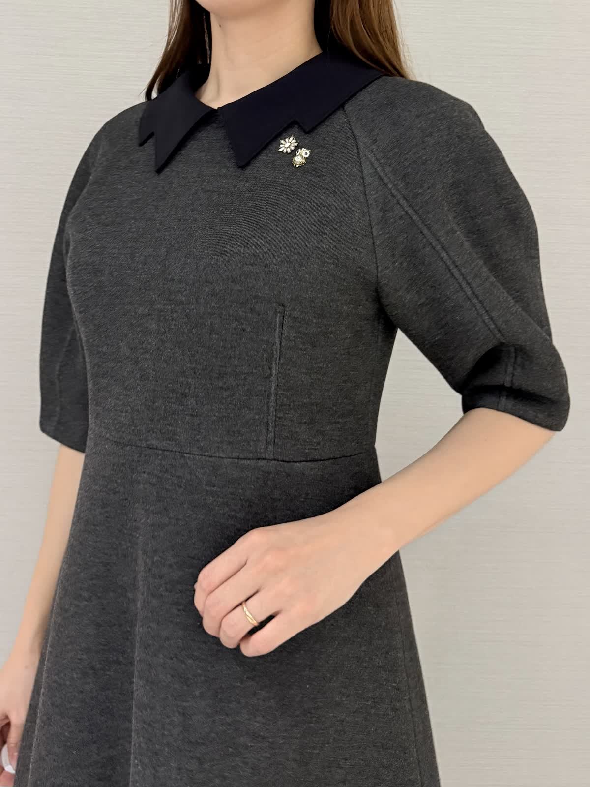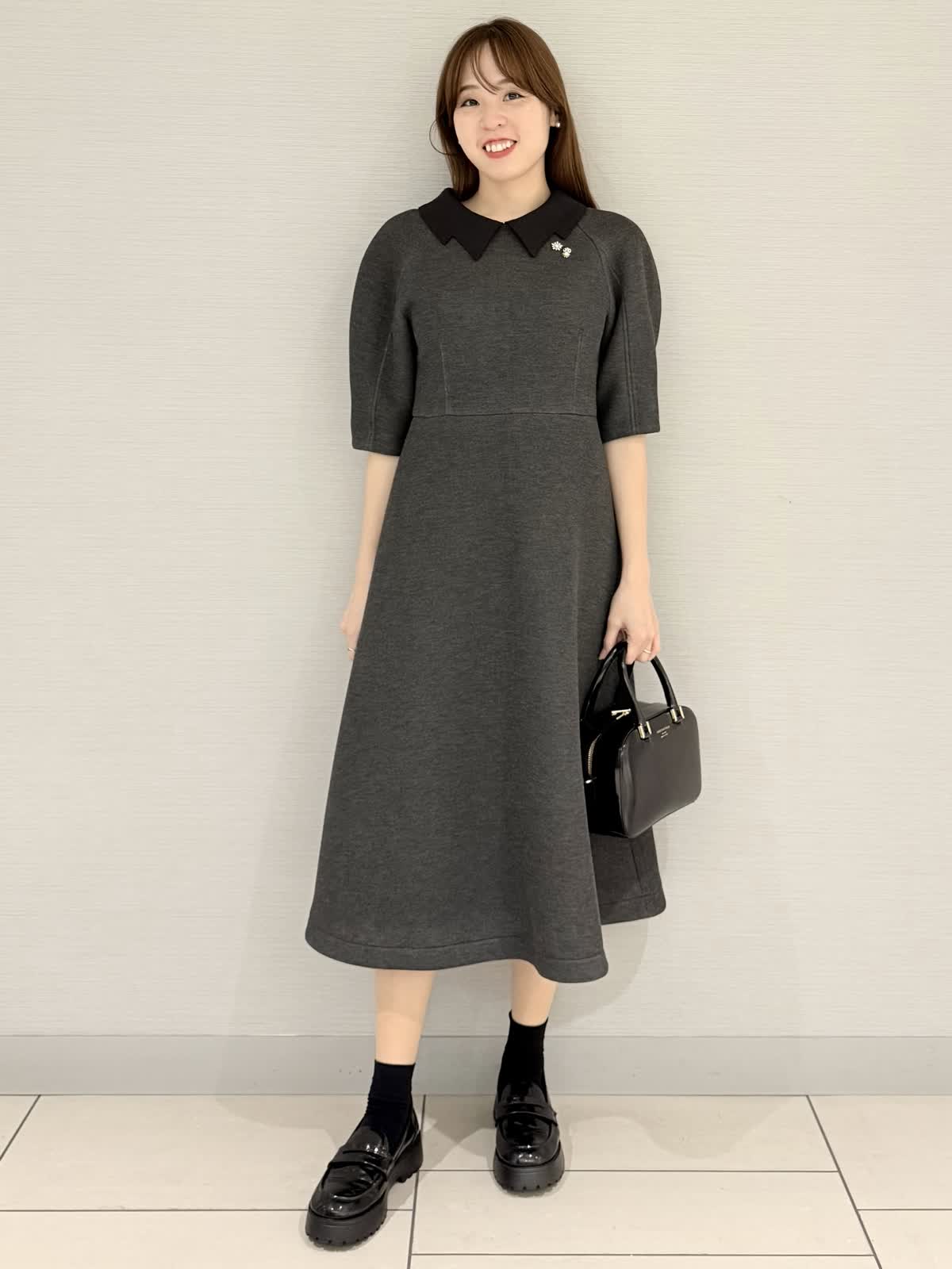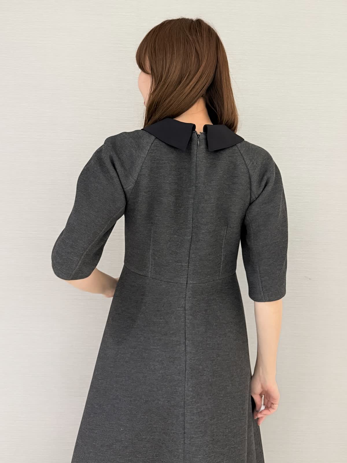 【着用サイズ/カラー】ワンピース:9号/ブラック冨張愛さんコラボアイテム♪ワンピースは襟とお袖に拘りフェミニンにモード感がプラス。黒は衿が白なのでエレガントにお召しいただけます。グレーは衿が黒なのでモード感があり甘さダウン。生地はグレーよりも黒の方が膨らみが少ないです。