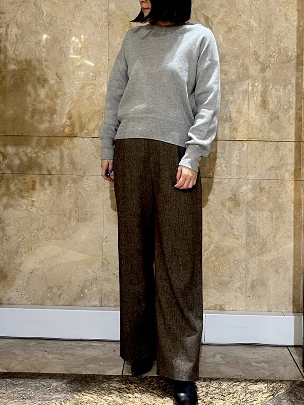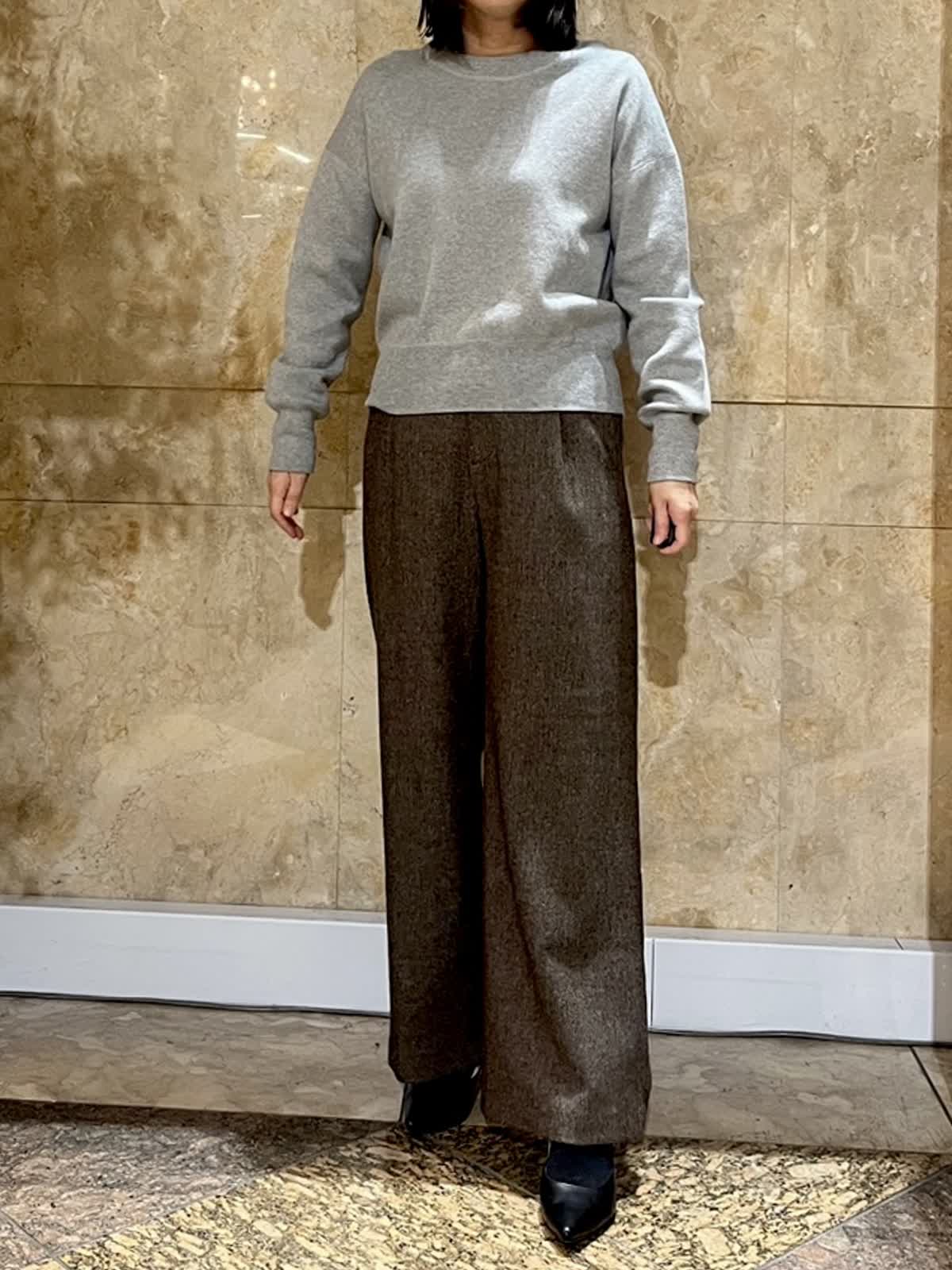 【着用サイズ/カラー】ニット:フリーサイズ/グレー パンツ:9号/ブラウン 綿100%のニットは、やわらかな着心地で肌あたりもやさしく、毎日気負わず着ていただける一枚です。ウールが苦手な方にも安心しておすすめできます。 お出かけはもちろん、日常使いにも取り入れやすいです。着回し力は抜群です。