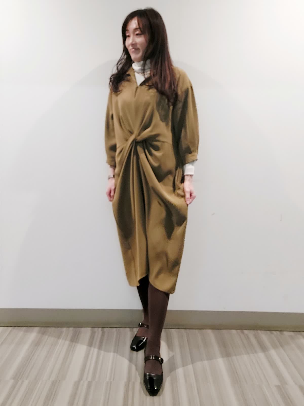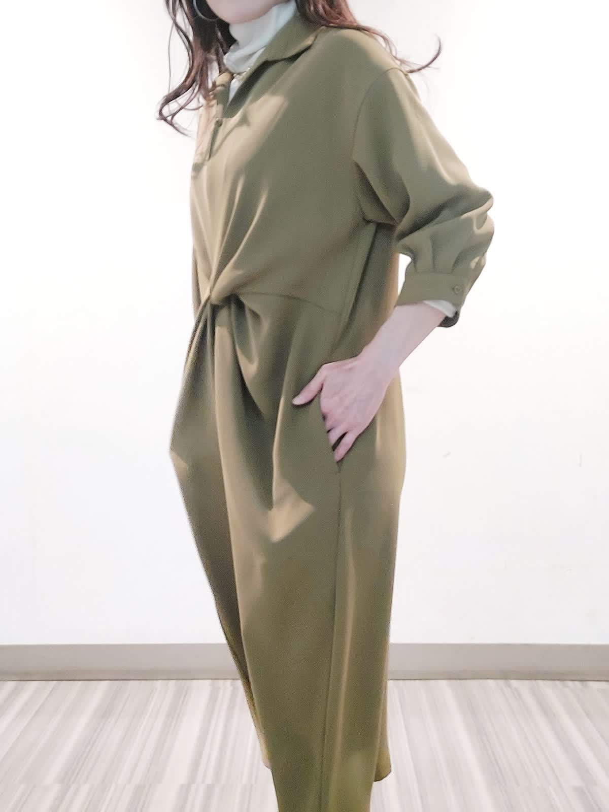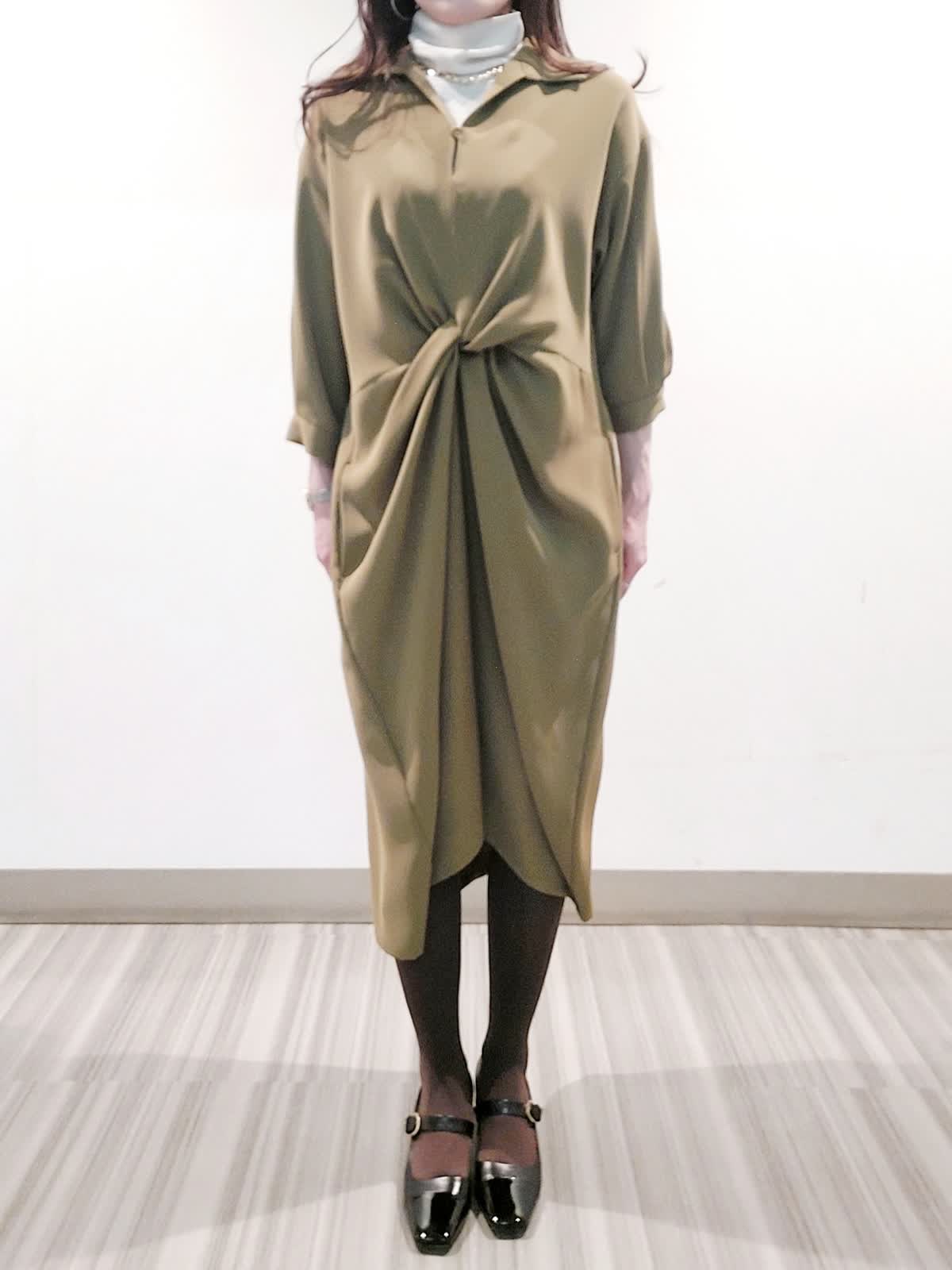 【着用サイズ】ワンピース:9号 ニット:9号 落ち感のあるダブルサテン素材で作られたシャツワンピースは、ウエストのツイストディテールがポイントで着やせ効果も◎。ドレープ感のあるエレガントな素材なので上品な改まった席からカジュアルにも色んなシーンでお使いいただけます。ストレッチ性もあり着心地抜群で、シワにもなりにくいイージーケア素材です。インナーに合わせたタートルは、スーパーハイゲージのホールガーメントで、イッツの定番ニットです。吸水性に優れ快適な着心地で、夏はひんやりと冬は暖かくシーズンレス素材です。