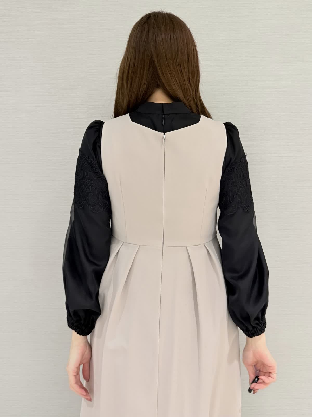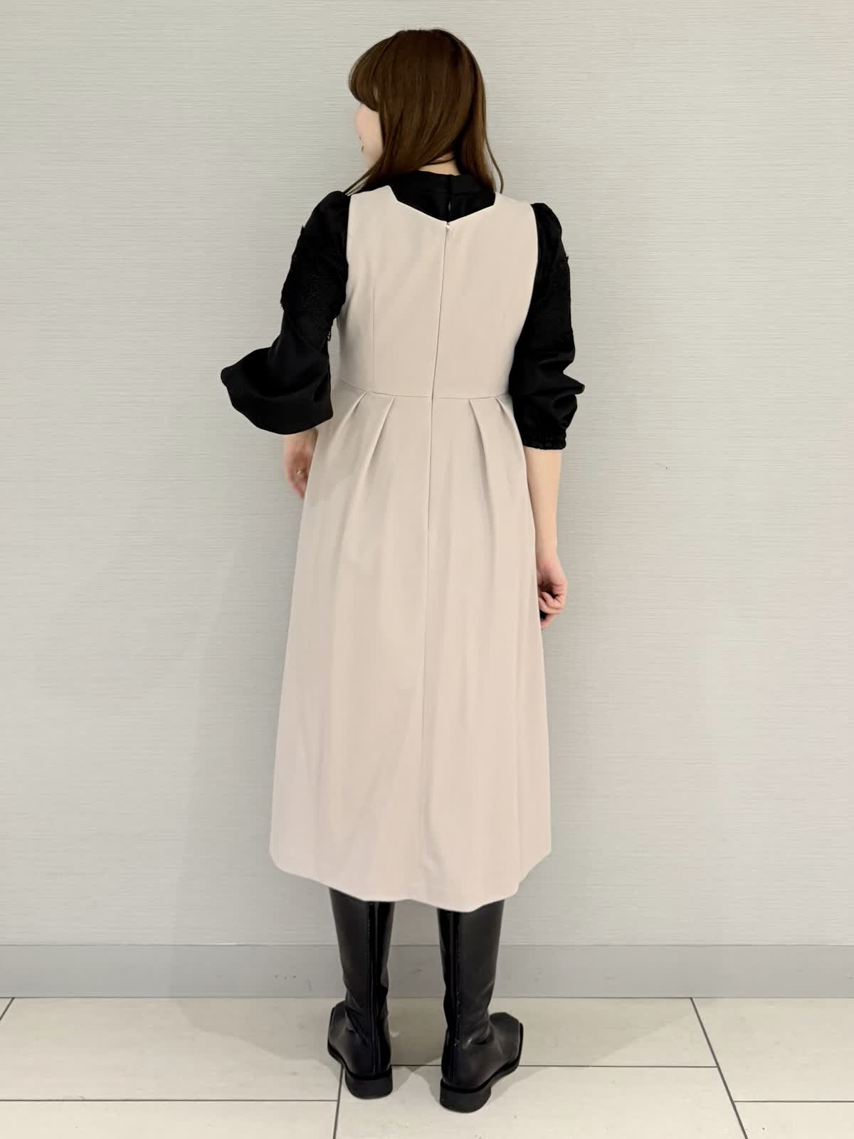 ブラック×ベージュで大人フェミニンのコーディネート!ワンピースは春先までお召しいただけます。コートはコクーンシルエットで黒はモード感もあり甘さダウンしたい方に◎
