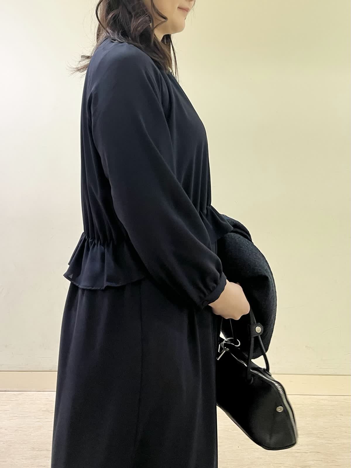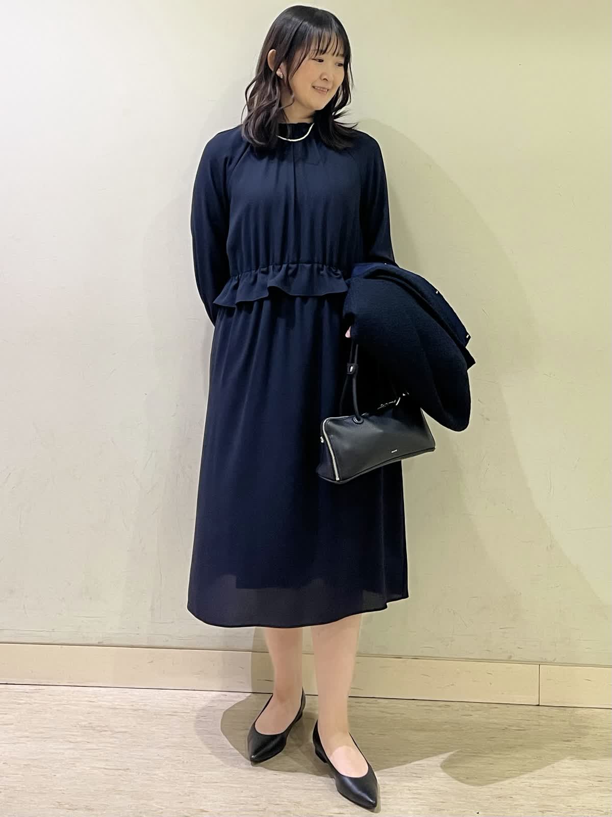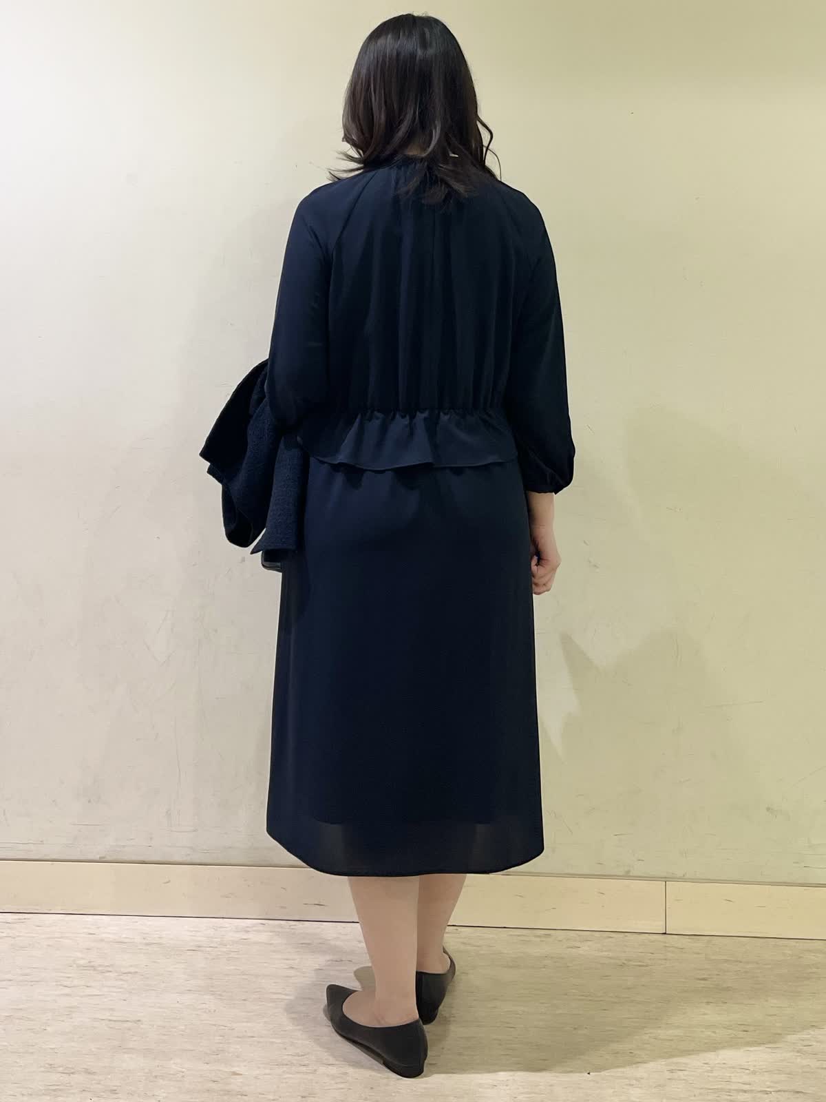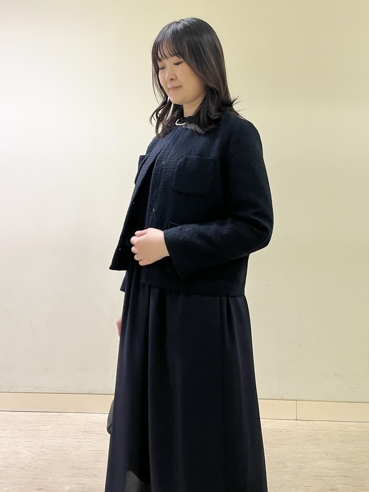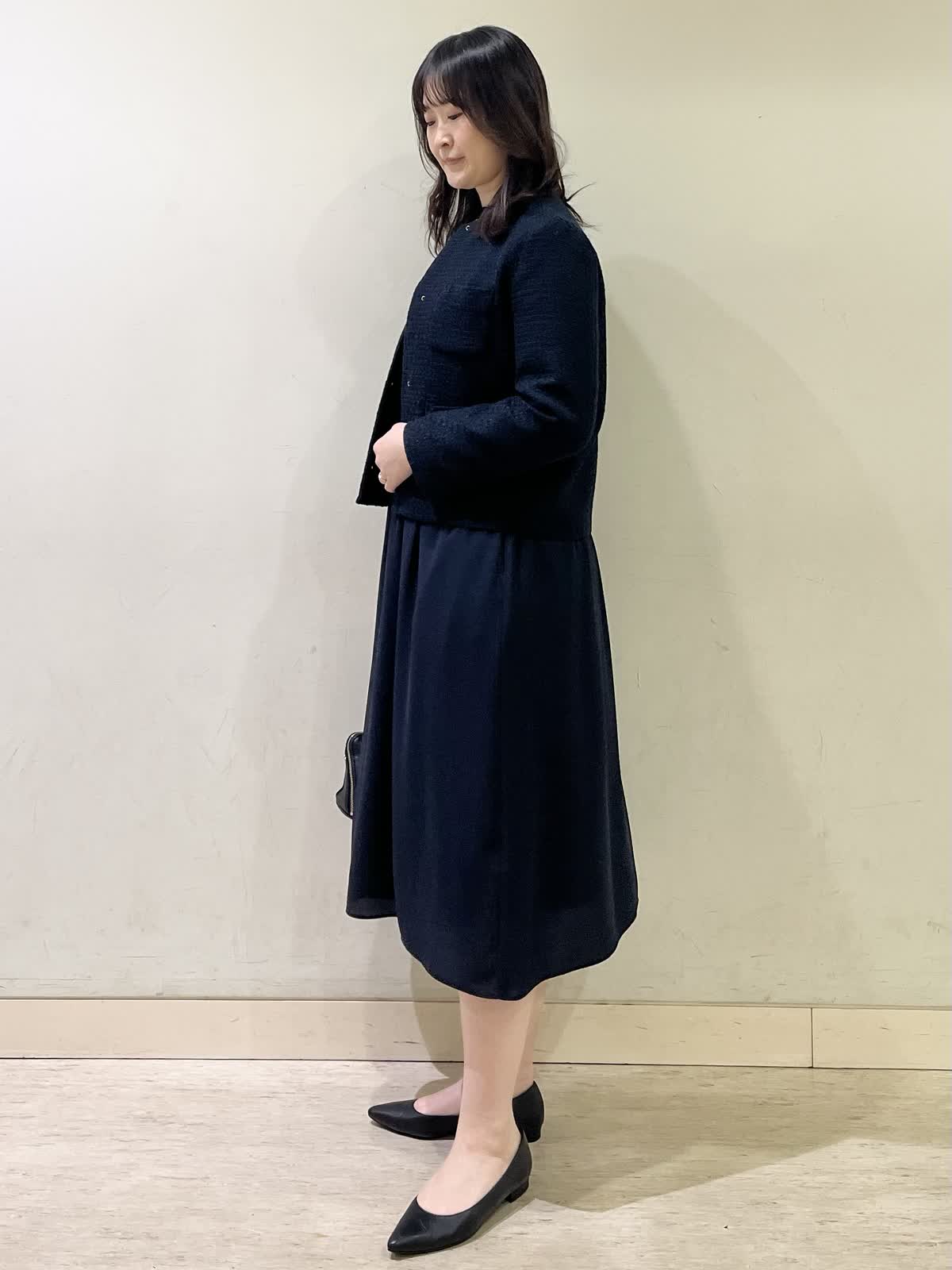 【着用カラー/サイズ】ジャケット:ネイビー/11号 ワンピース:ネイビー/11号 ハレの日の入学卒業式スタイル。ジャケットか×ワンピースのネイビー定番スタイルです。スッキリとした洗練されたジャケットは、ハレの日に相応しいエレガントなデザインです。異素材のワンピースは、さらっと薄手で広がらず、落ち感のある素材です。首元とウエストのさりげないフリルが華やかさをプラスしてくれます。
