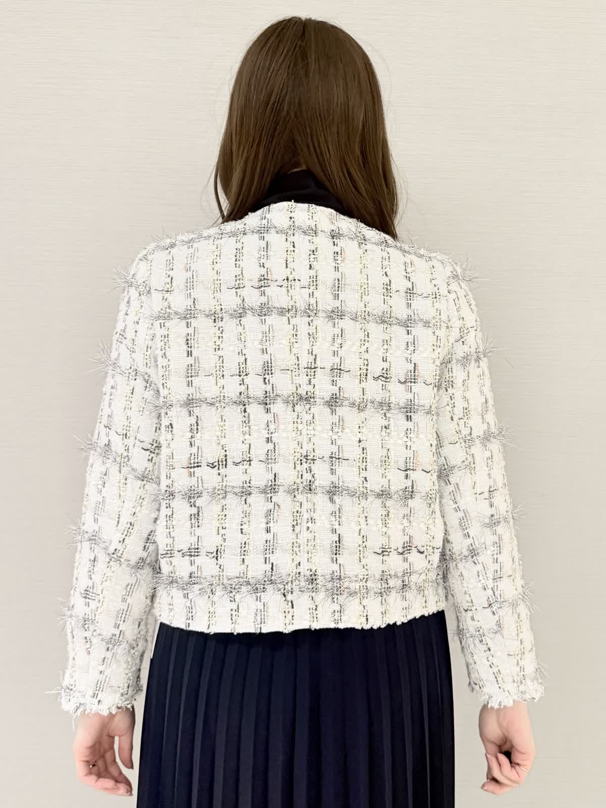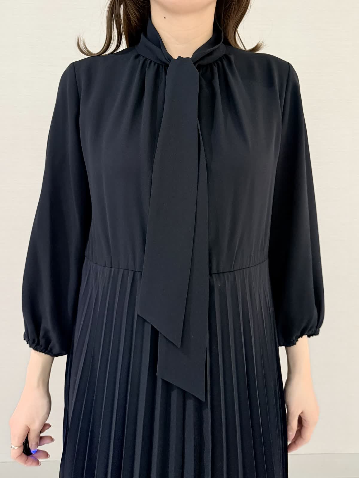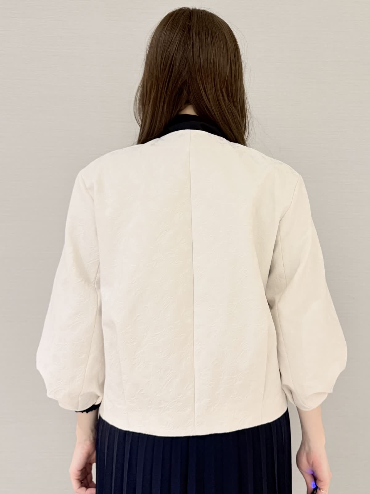 ジャケット:9号/アイボリーワンピース:9号/ネイビー《ハレの日にオススメのスタイリング。ジャケットは白すぎないアイボリーなのでネイビーと相性◎小物は色を揃えました》
