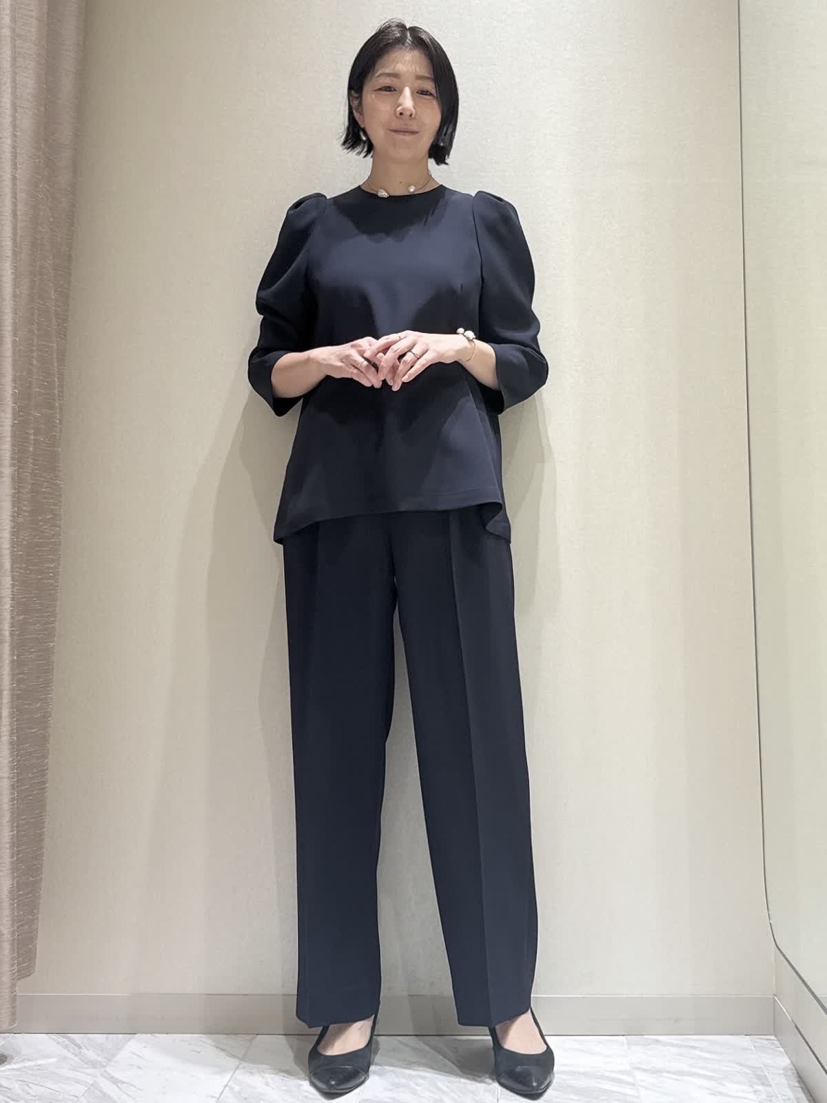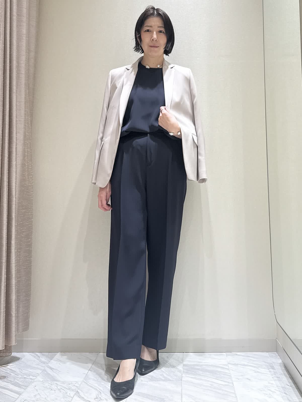 【着用サイズ】全て:9号 【着用カラー】ジャケット:ベージュブラウス: ネイビー パンツ: ネイビー