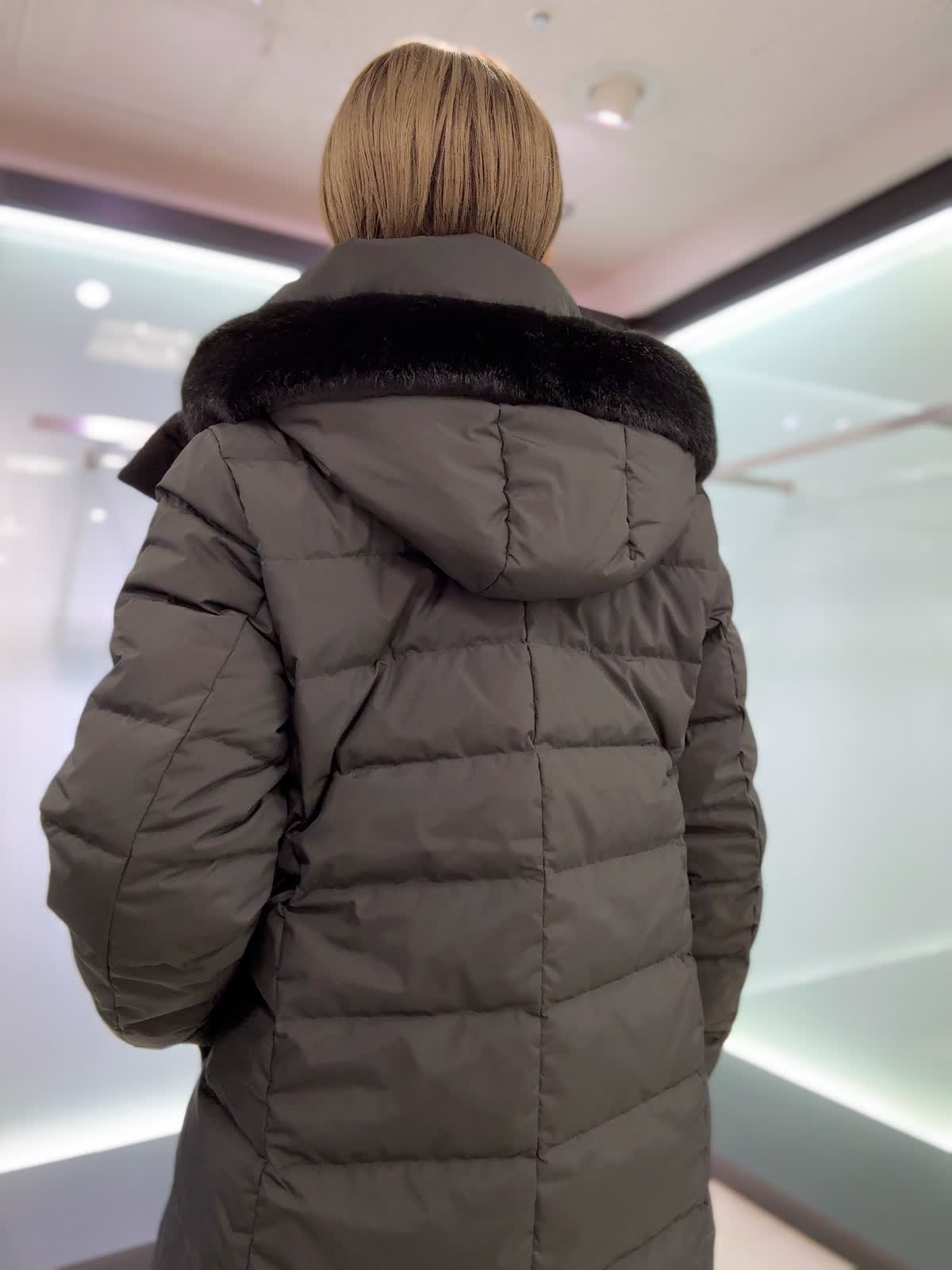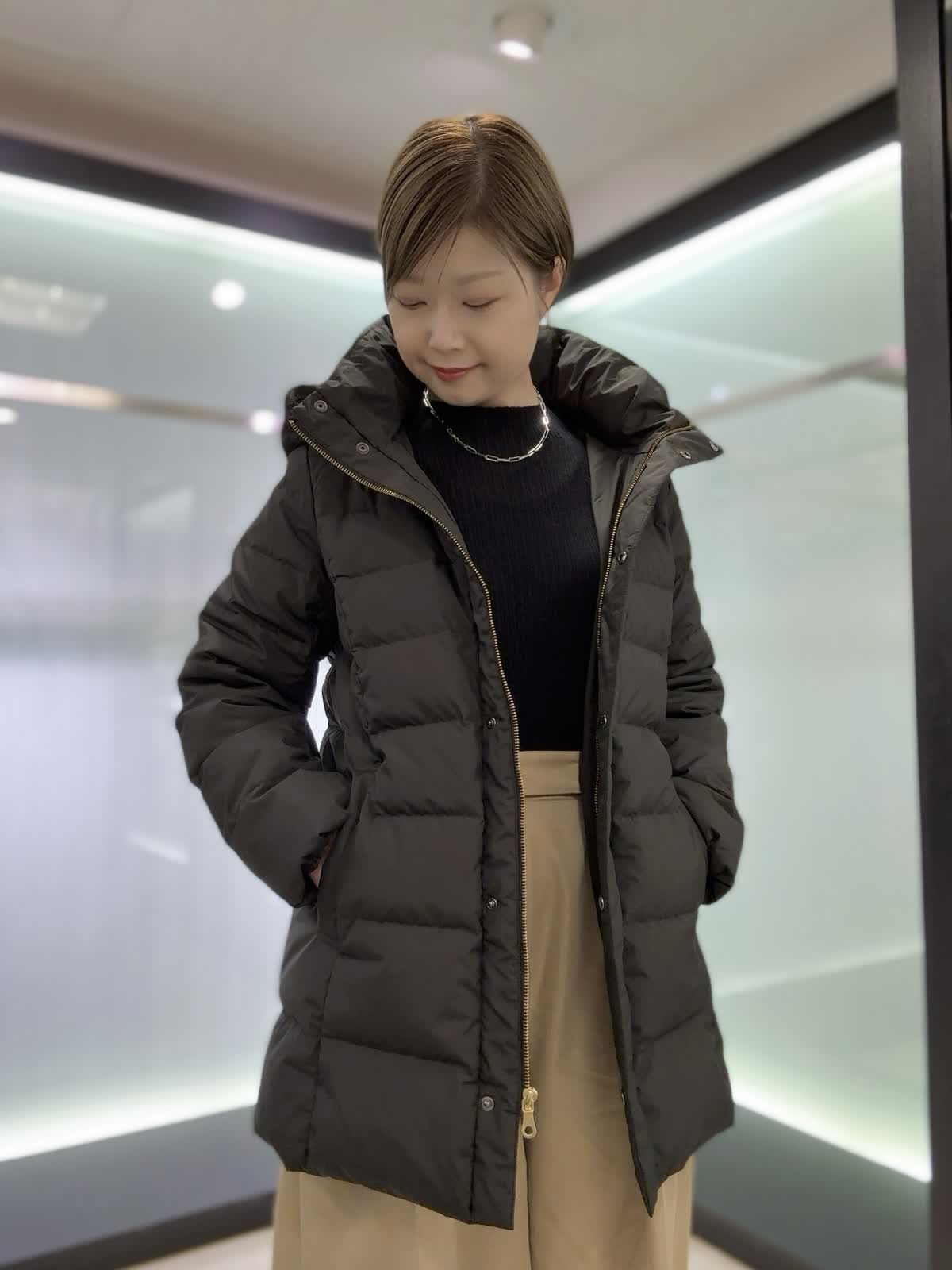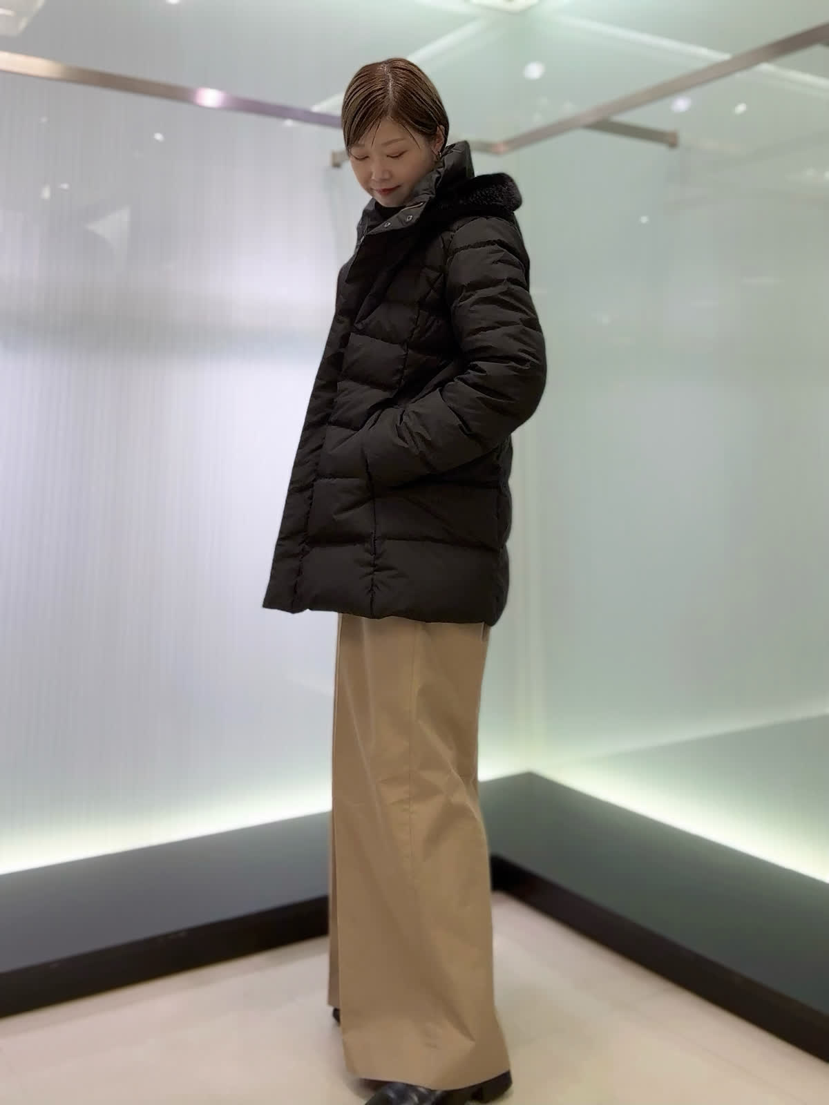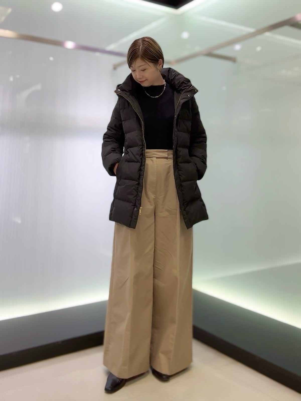 【着用カラー・サイズ】アウター : ブラック/9号 ニット : ブラック/9号 パンツ : ベージュ/7号 すっきりとしたバランスのダウン♪フード取り外し可能で、袖口の内側はゴムが入っているので冷たい風が入ってこないようになっています。オンオフ問わず着られるアウターなのでおすすめです!