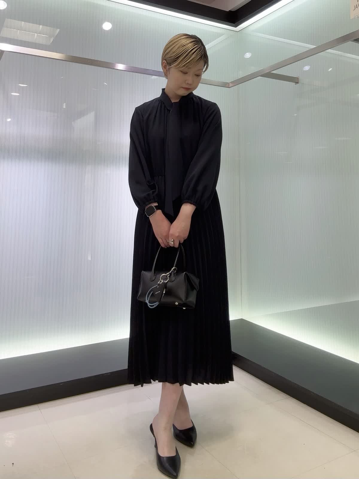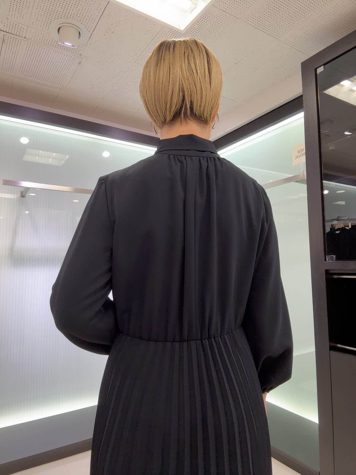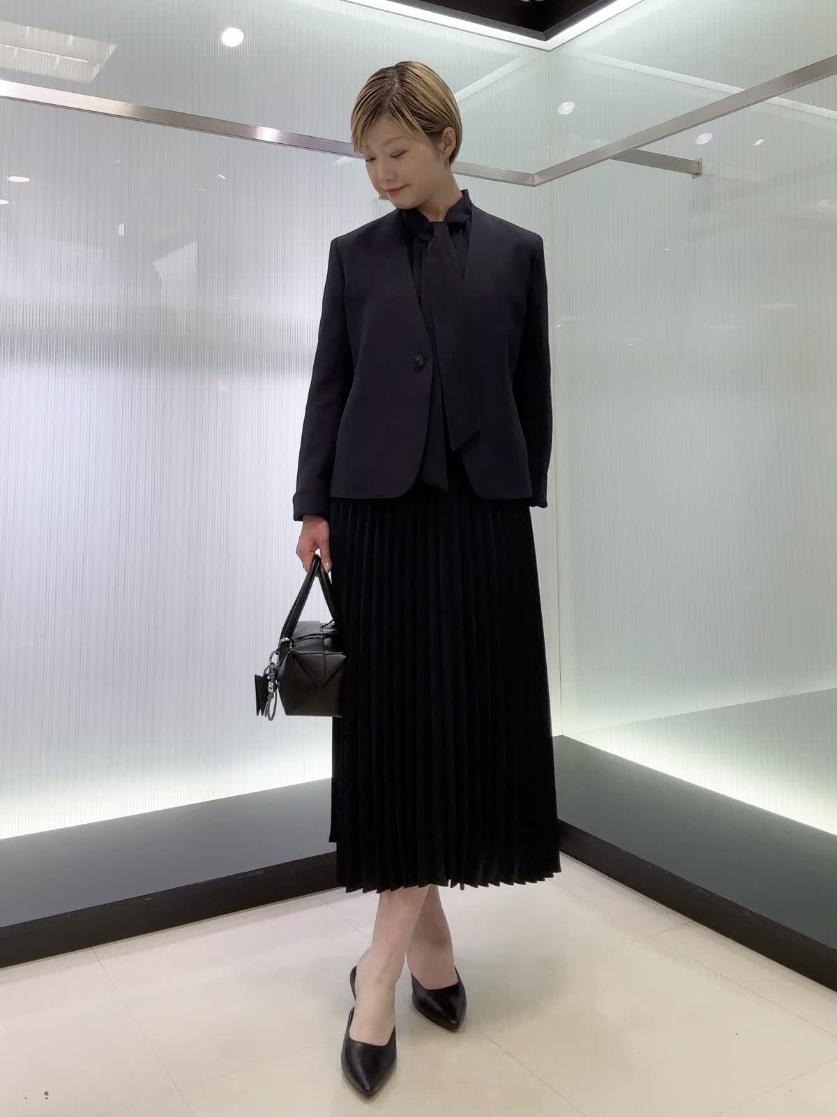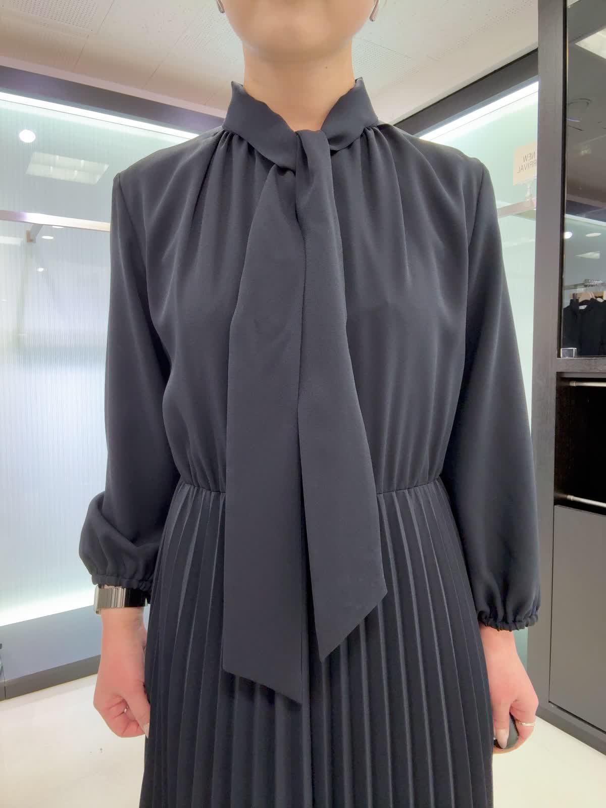 【着用カラー・サイズ】ジャケット : ネイビー/9号 ワンピース : ネイビー/7号 すっきりとしたノーカラージャケットに上品なボウタイ付きワンピースを合わせたセレモニーコーデ♪ジャケットはオールシーズン着用できます。ワンピースはスカート部分はプリーツなので動いた時の揺れ感が素敵なワンピースです。ウエストはゴム使用なのでストレスフリー。年間を通して着られる素材なのでおすすめです!