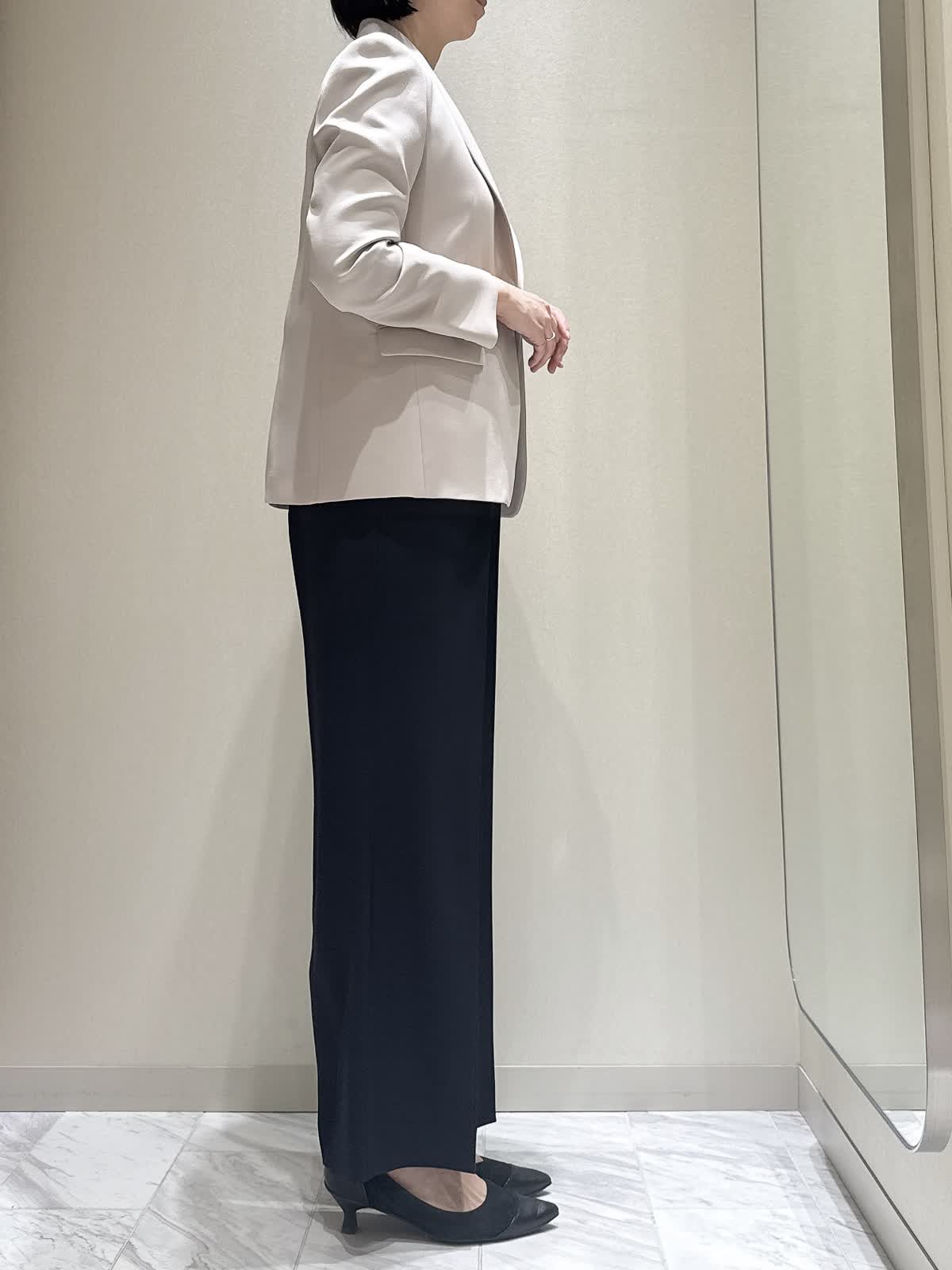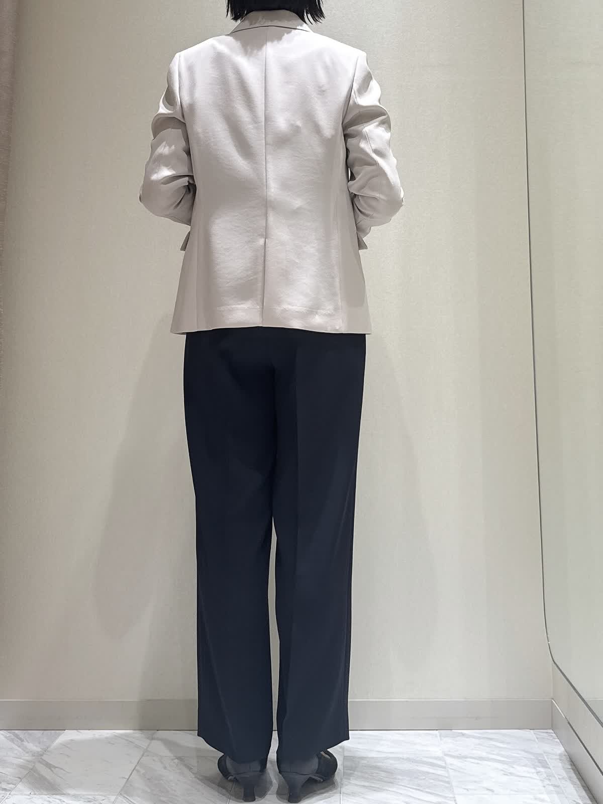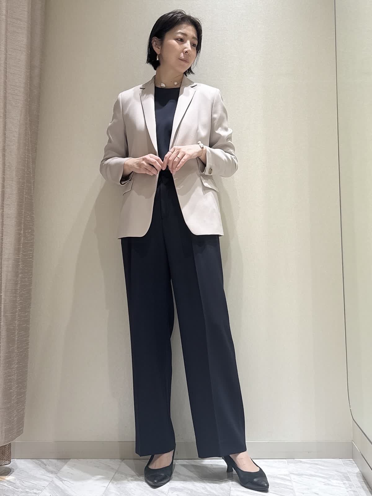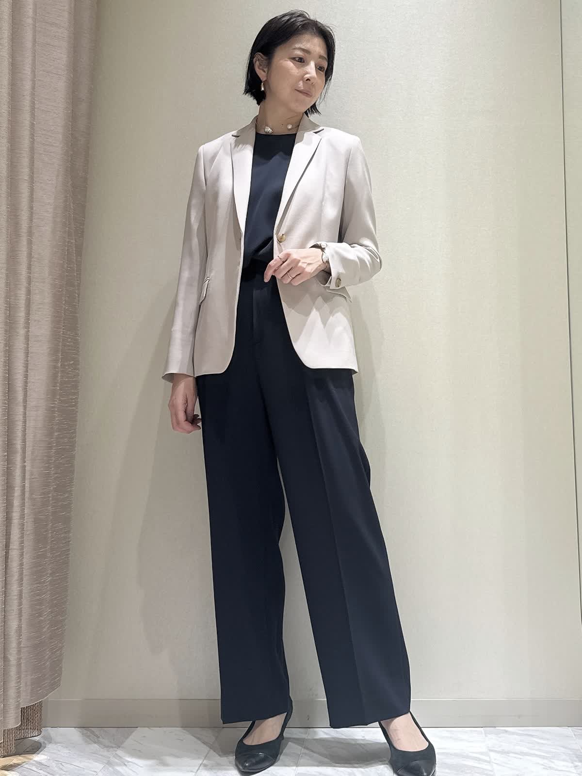 【着用サイズ】全て:9号 【着用カラー】ジャケット: ベージュ ブラウス:ネイビー パンツ: ネイビー