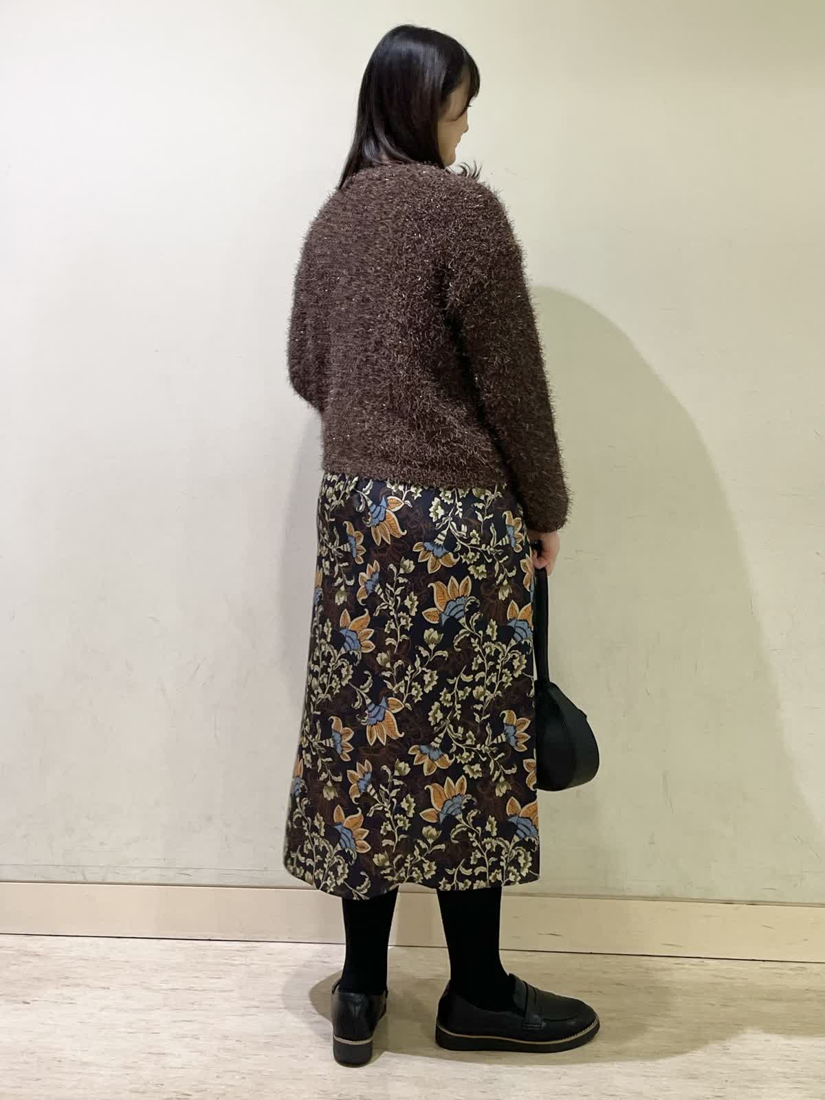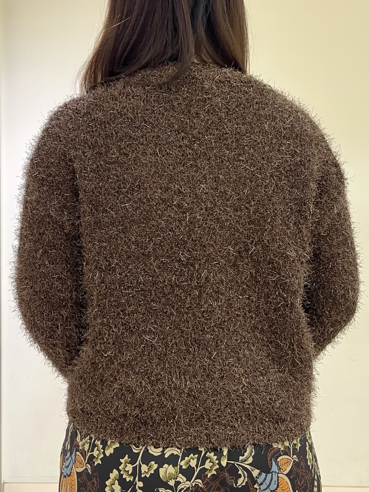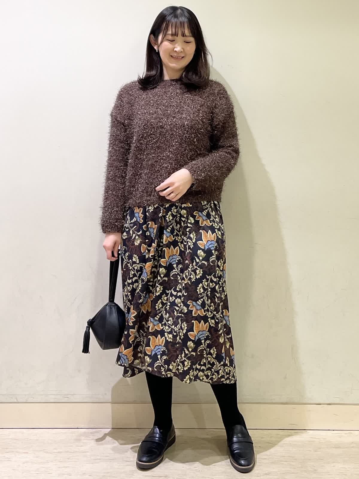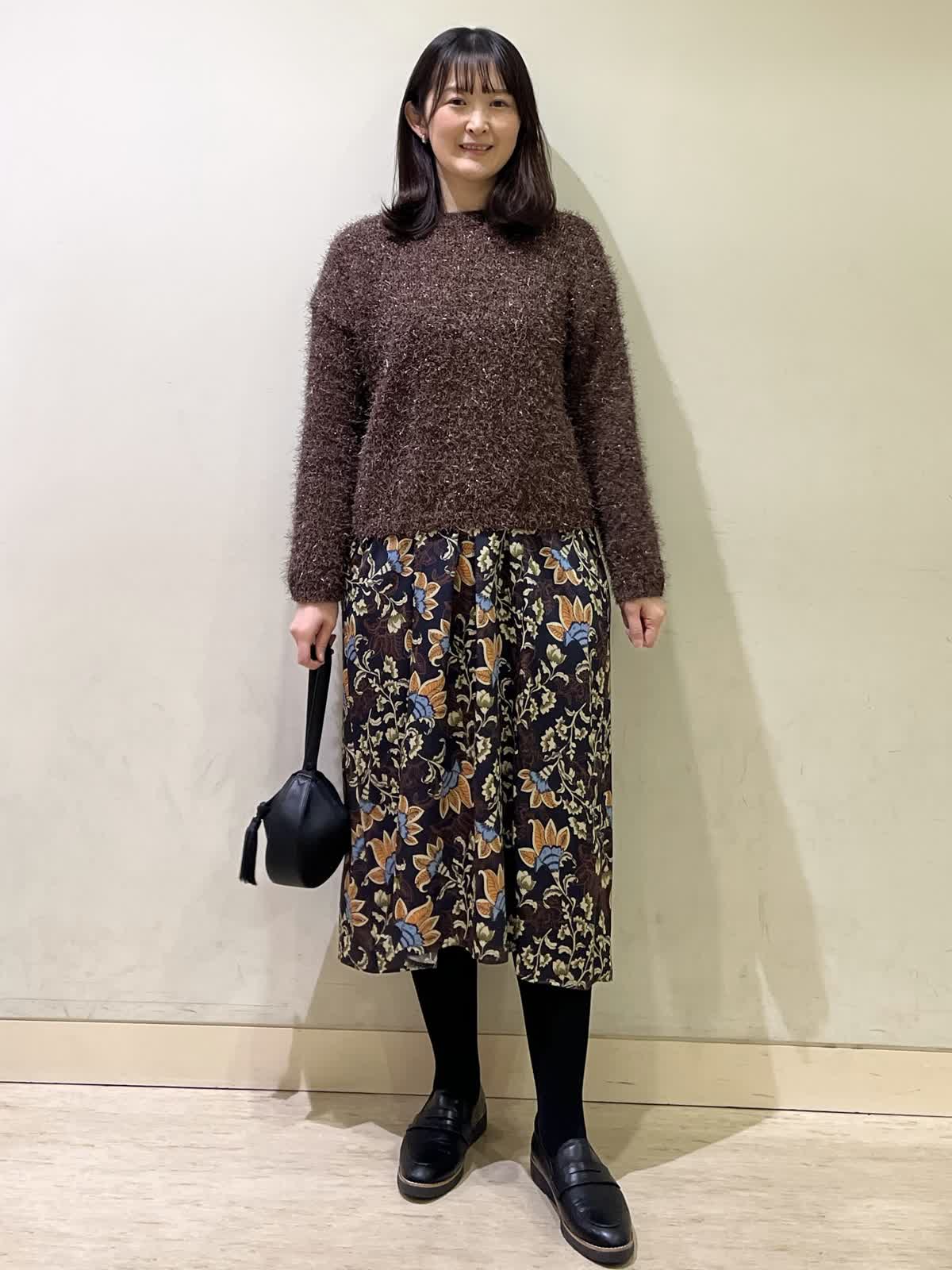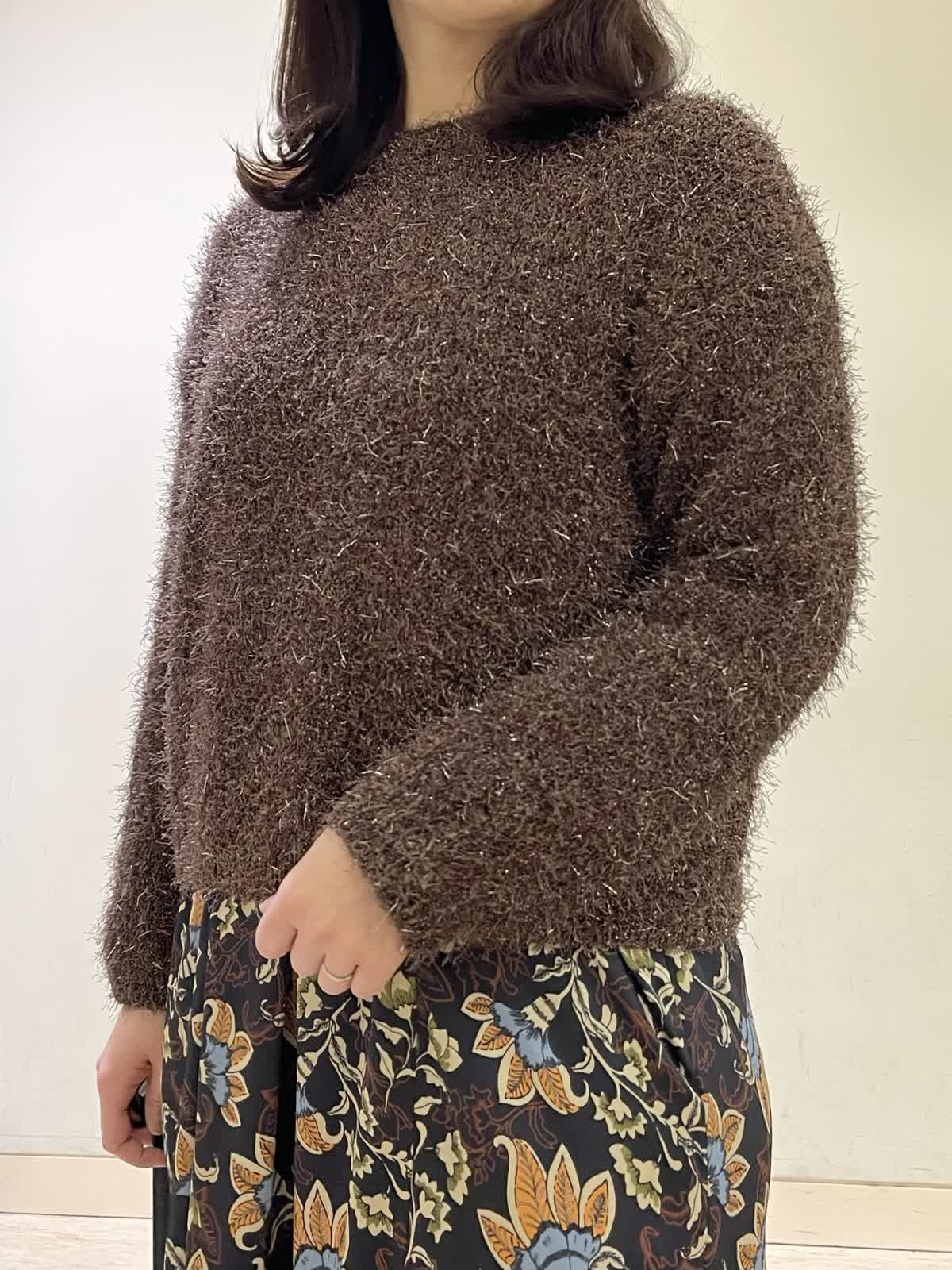 【着用カラー/サイズ】セーター:ブラウン/フリー ワンピース:ネイビー/フリー 休日のランチお出かけコーデ。 ワンピースの上からショート丈のセーターをレイヤード。一枚でも着られるワンピースですが、セーターを重ねてその日の気分に合わせてコーディネート。ラメ入りセーターで華やかに。