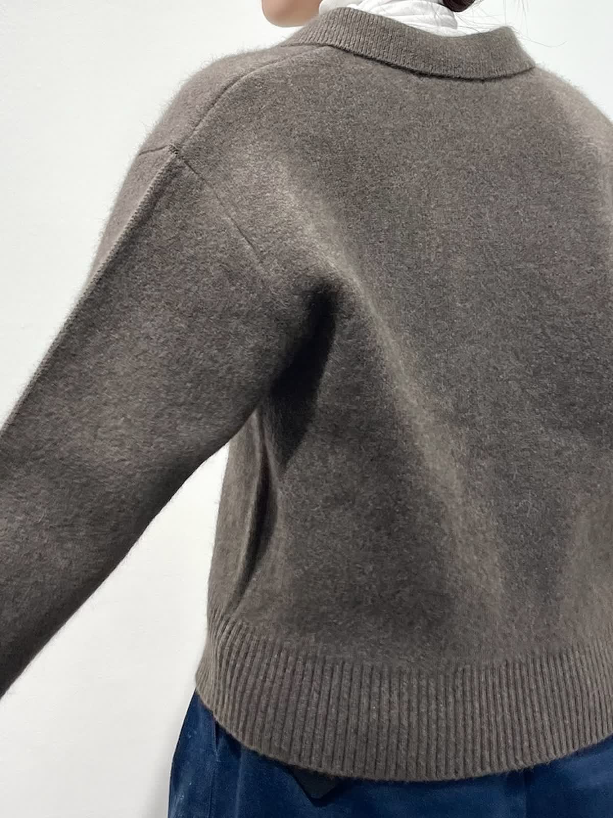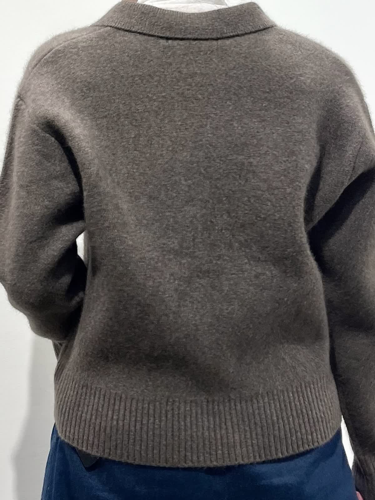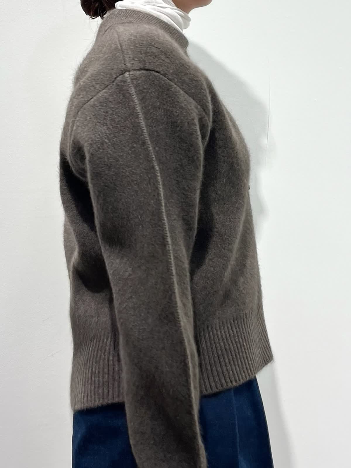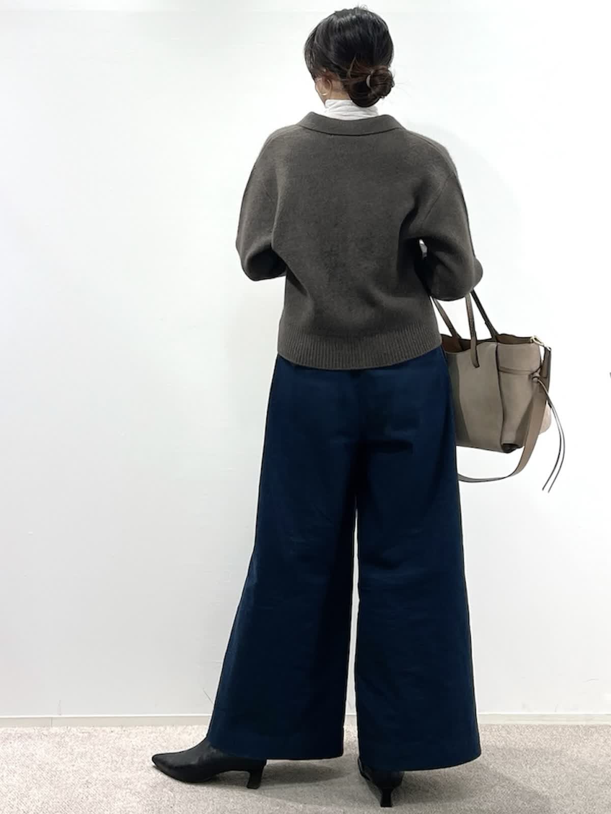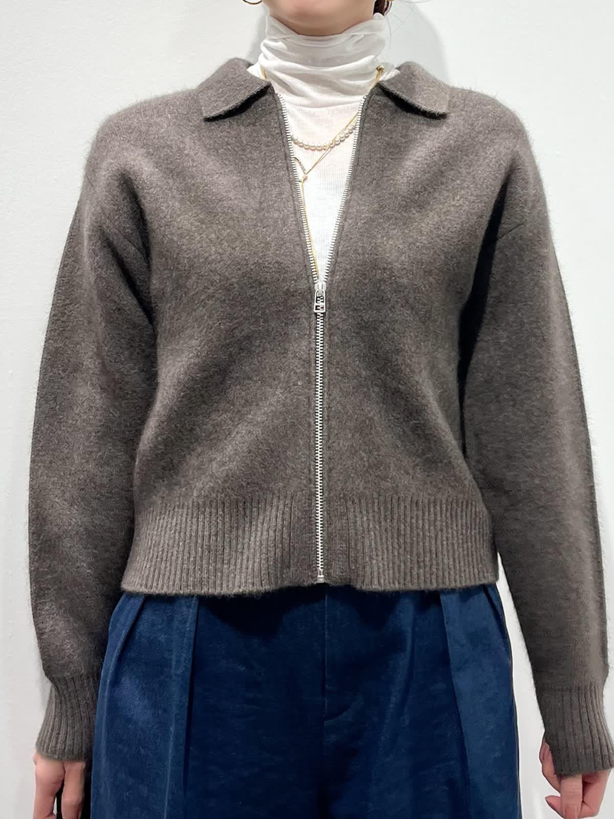 【着用サイズ】カーディガン:9号 カットソー:9号 パンツ:9号 【着用カラー】カーディガン:ブラウン カットソー:オフホワイト パンツ:ダークネイビー バッグ:ベージュ 「素材で魅せる、きれいめカジュアルスタイル」 フォックスニットのジップアップカーディガンは、羽織りや1枚着での着こなしで印象が変わるデザインニット。上質な素材感で、きれいめカジュアルスタイルにおすすめです。 レイヤードには、シアーカットソーをプラスして、ワイドパンツで抜け感のあるスタイルに。 あたたかく、着心地の良さと、トレンド感のあるデザインで、おすすめニットです。