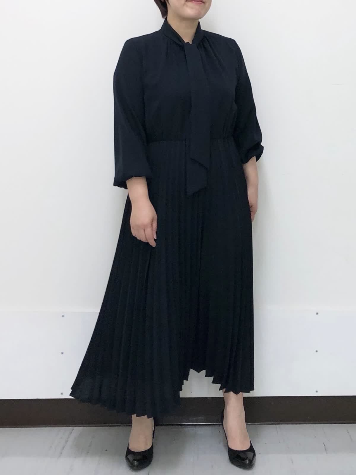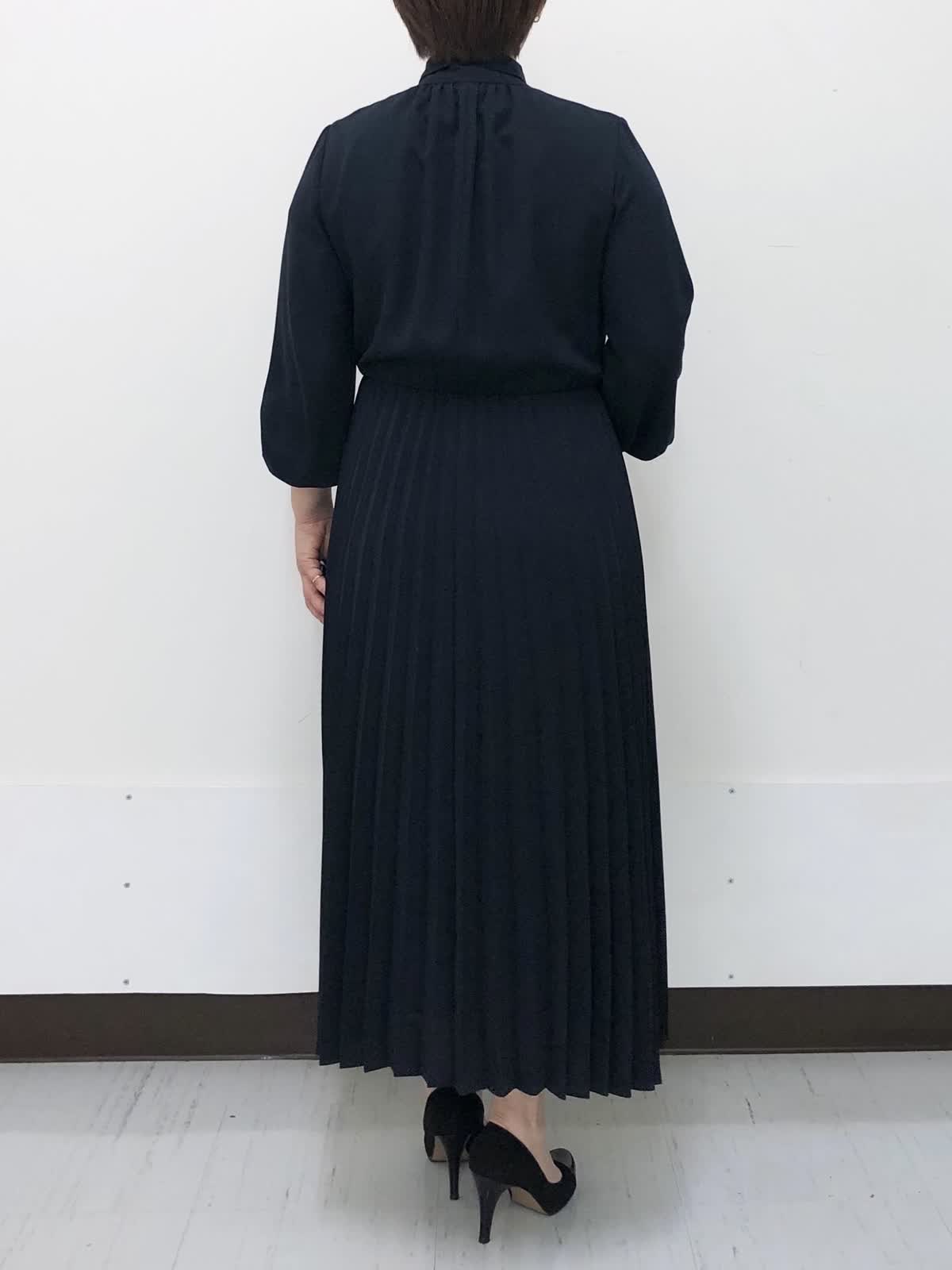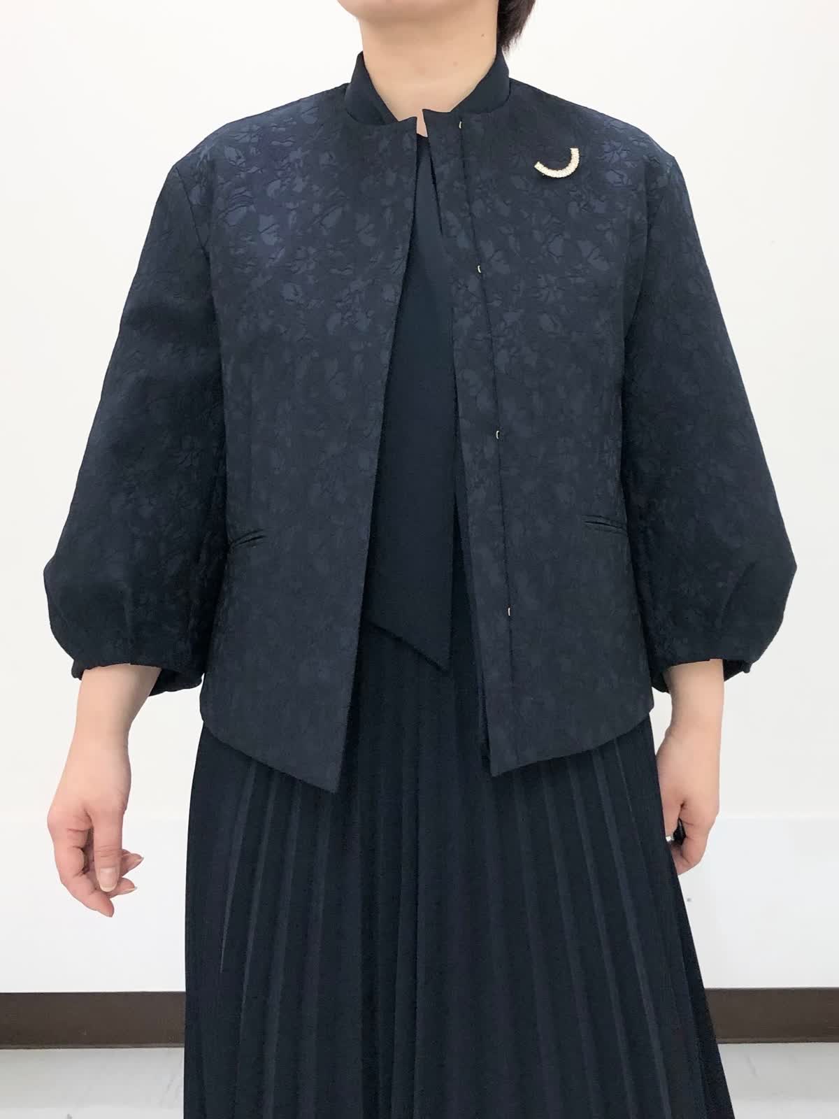 【着用サイズ】9号【着用カラー】ネイビー 卒入、学校行事などを彩るハレの日スタイリング。ボウタイ付きのプリーツワンピースはウエストゴムでストレスフリーな着心地。ふんわりスリーブがポイントのジャガードのジャケットを合わせたエレガントなワントーンコーデです。