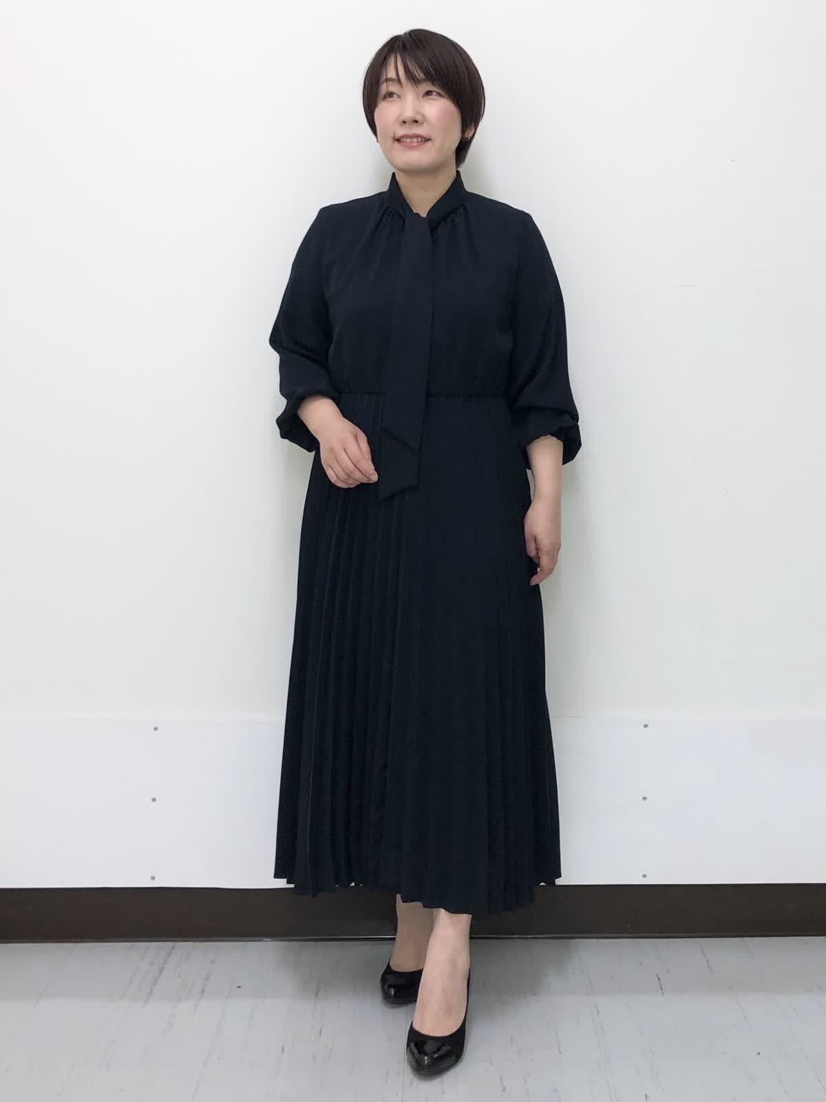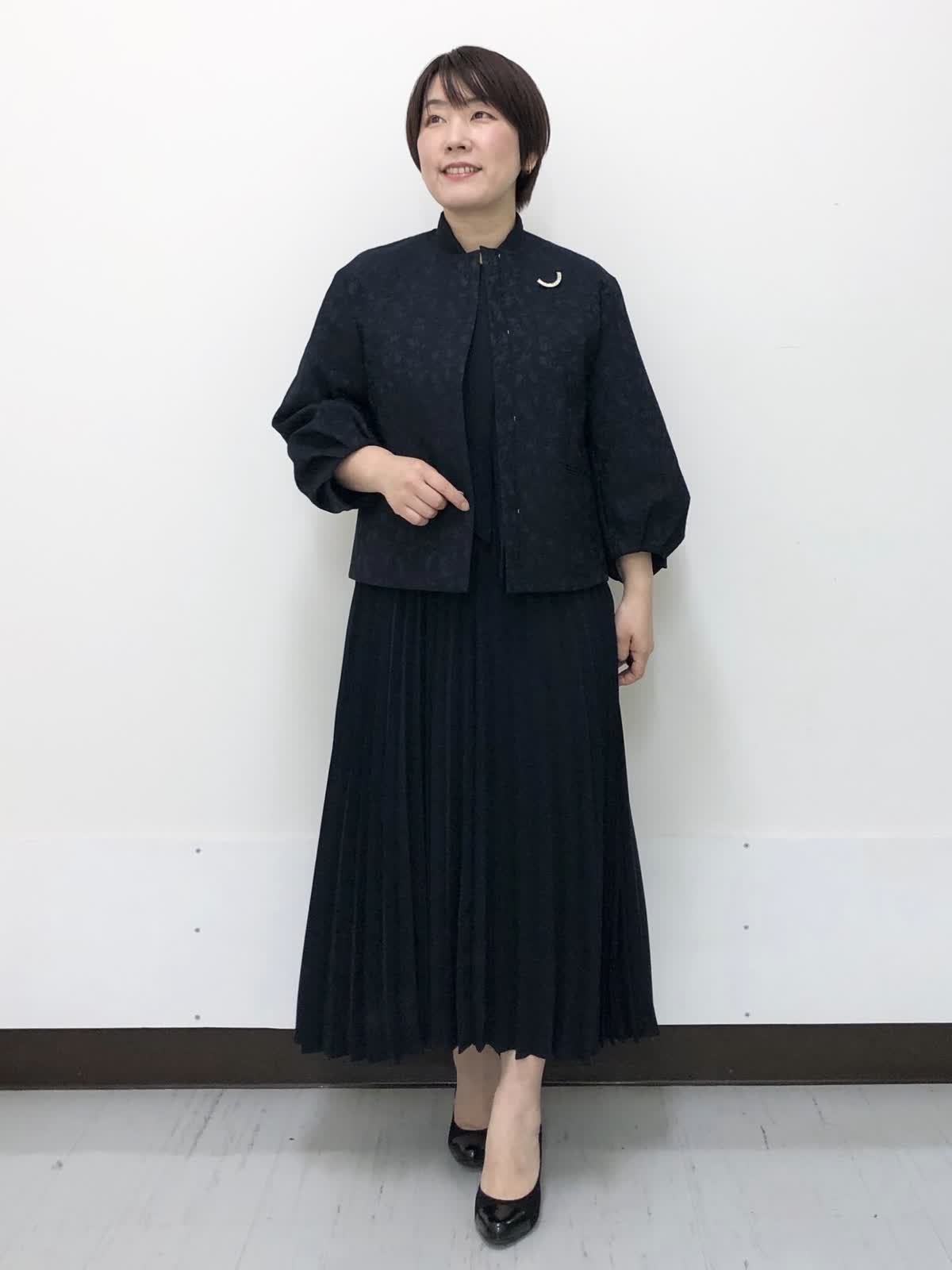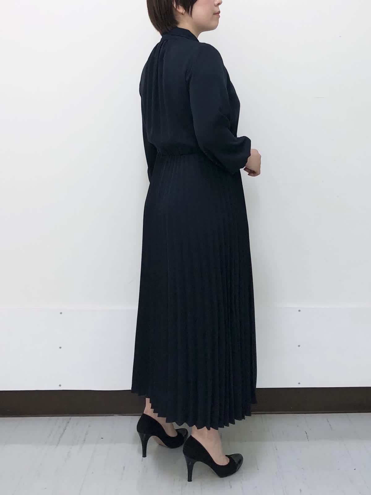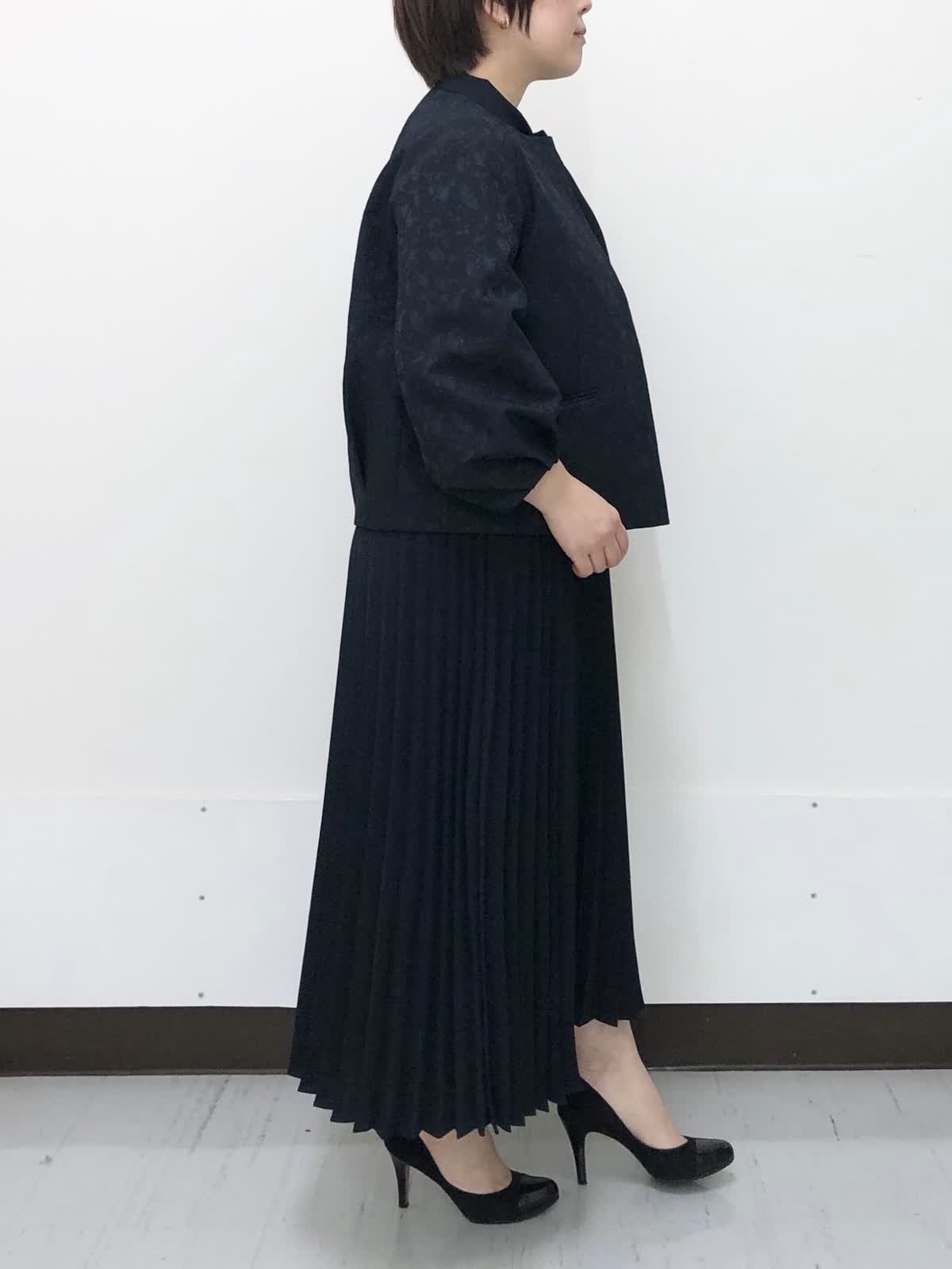 【着用サイズ】9号【着用カラー】ネイビー 卒入、学校行事などを彩るハレの日スタイリング。ボウタイ付きのプリーツワンピースはウエストゴムでストレスフリーな着心地。ふんわりスリーブがポイントのジャガードのジャケットを合わせたエレガントなワントーンコーデです。