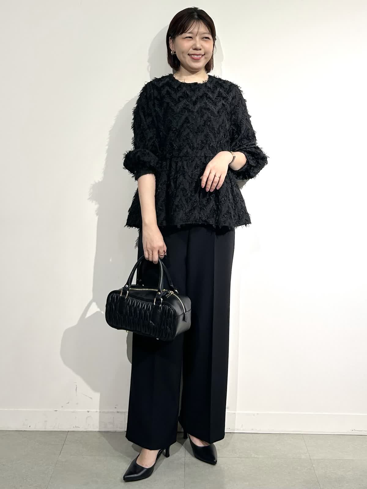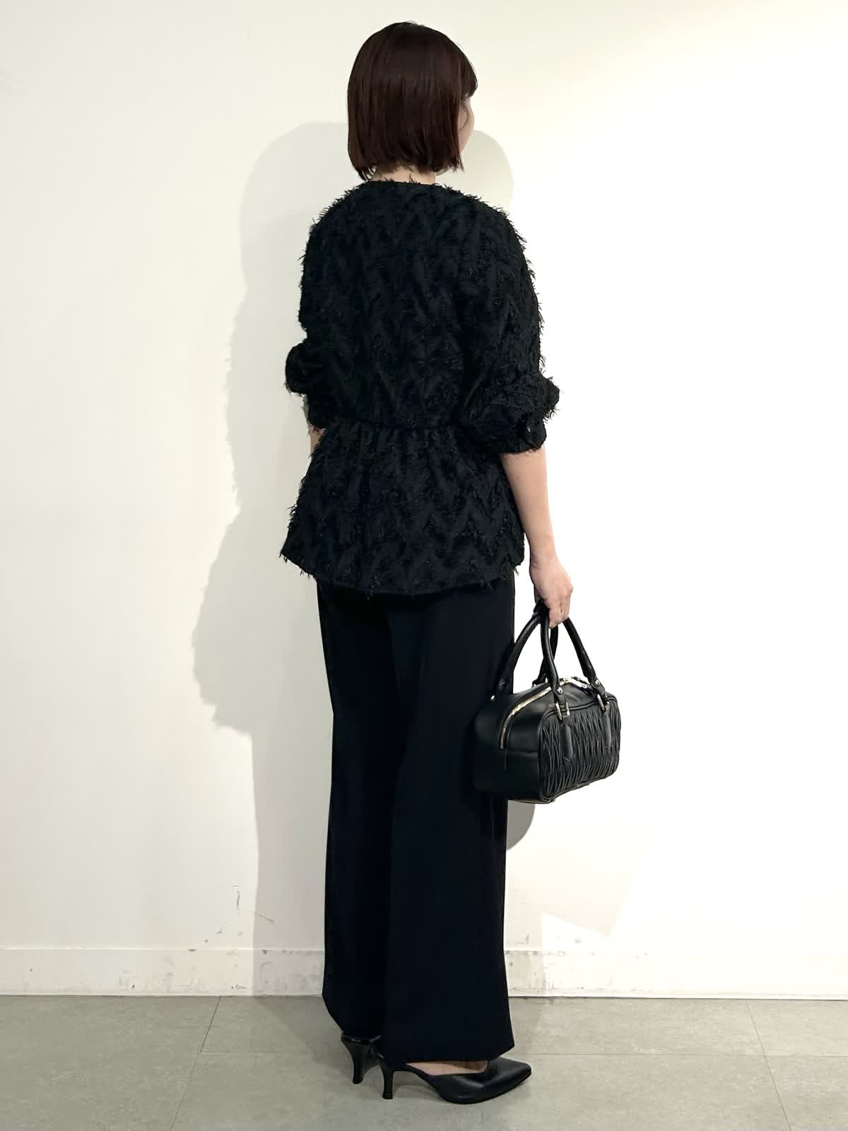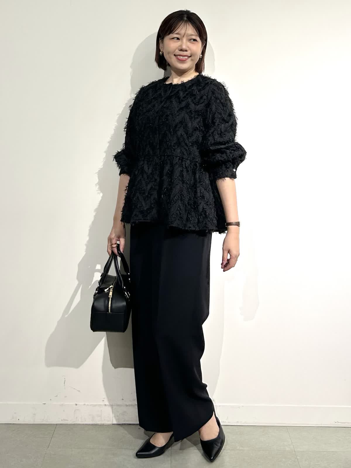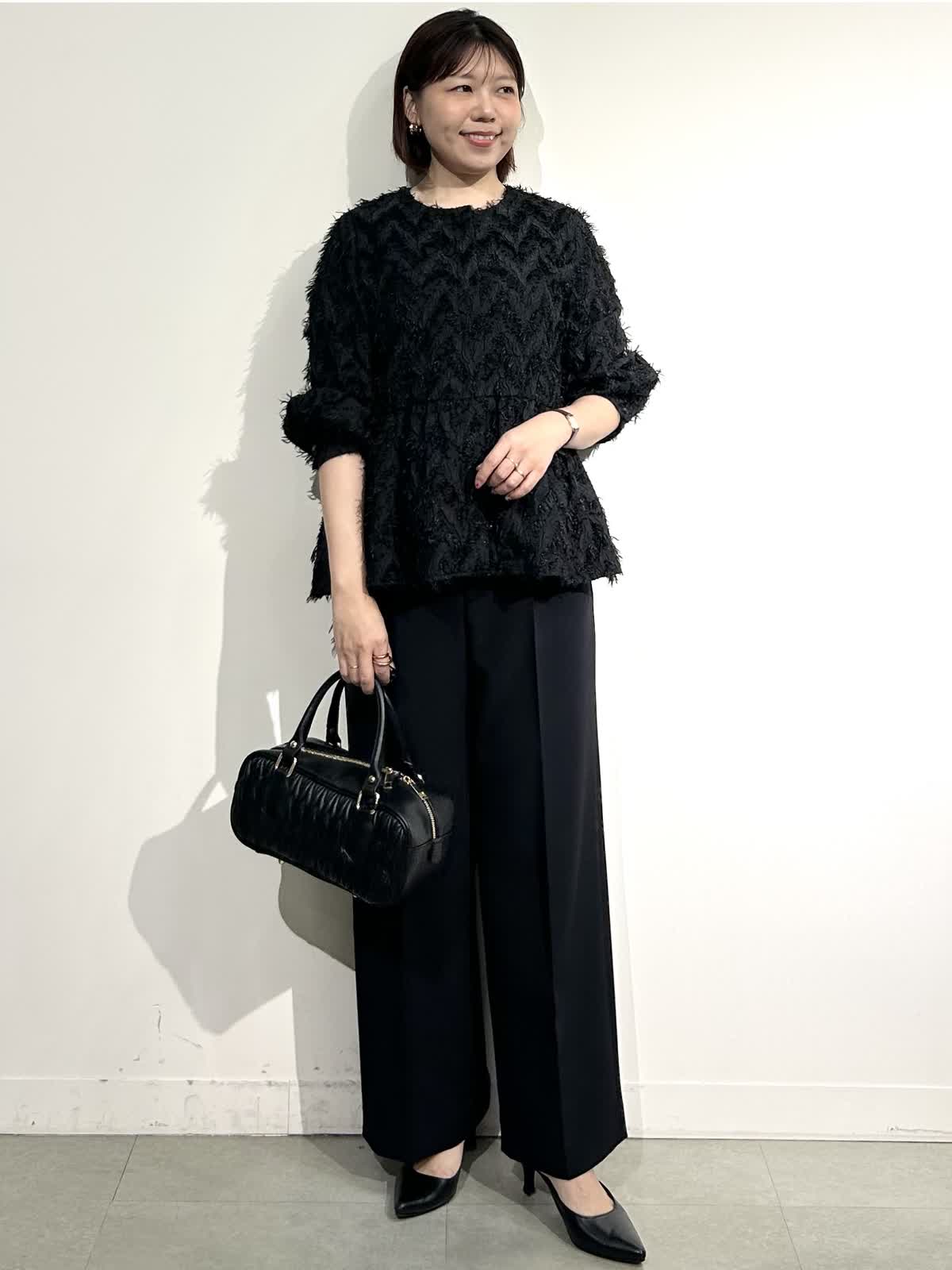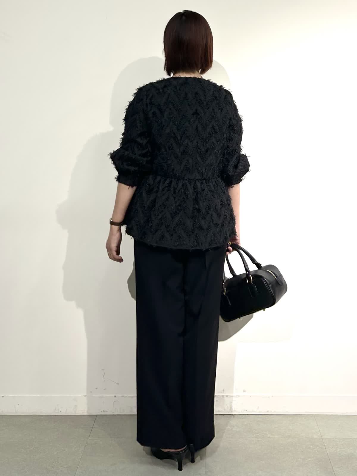 ブラウスはペプラムシルエットウエスト位置が高く見えるので、パンツとの相性抜群!ヒップやお腹周りも隠してくれるので体型カバーにも◎