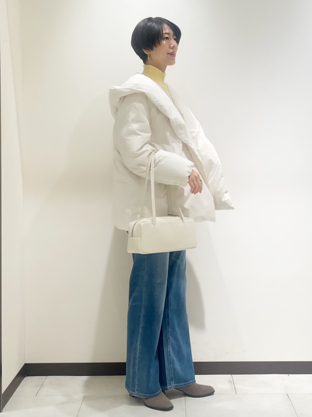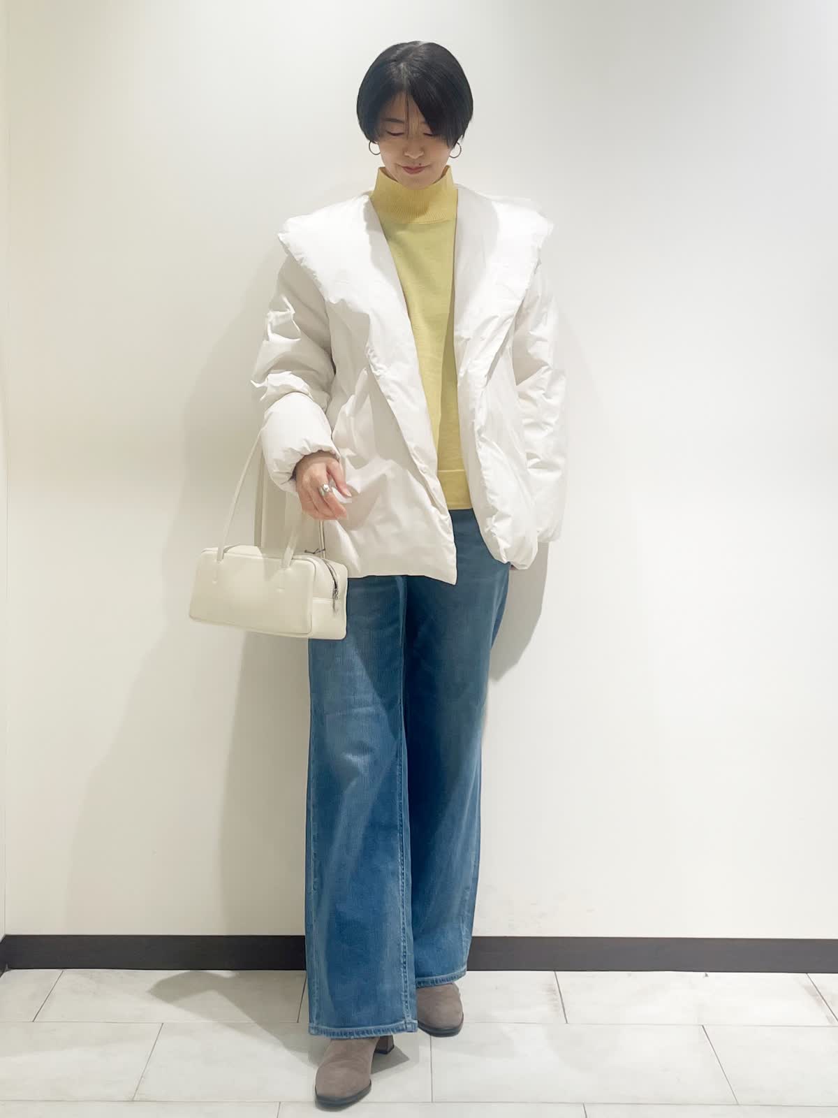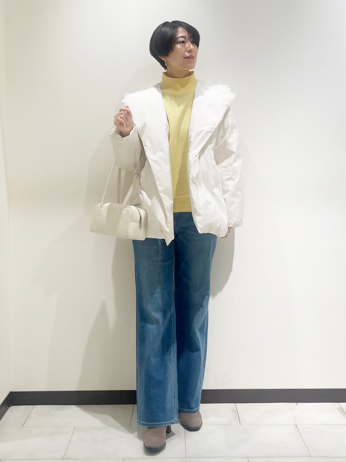 【着用サイズ】全て9号 【着用カラー】コート:アイボリー ニット:イエロー バック:アイボリー 春カラーでコーディネート。 まだまだ寒い季節ですので、暖かく見た目は春カラーでコーディネートしました。