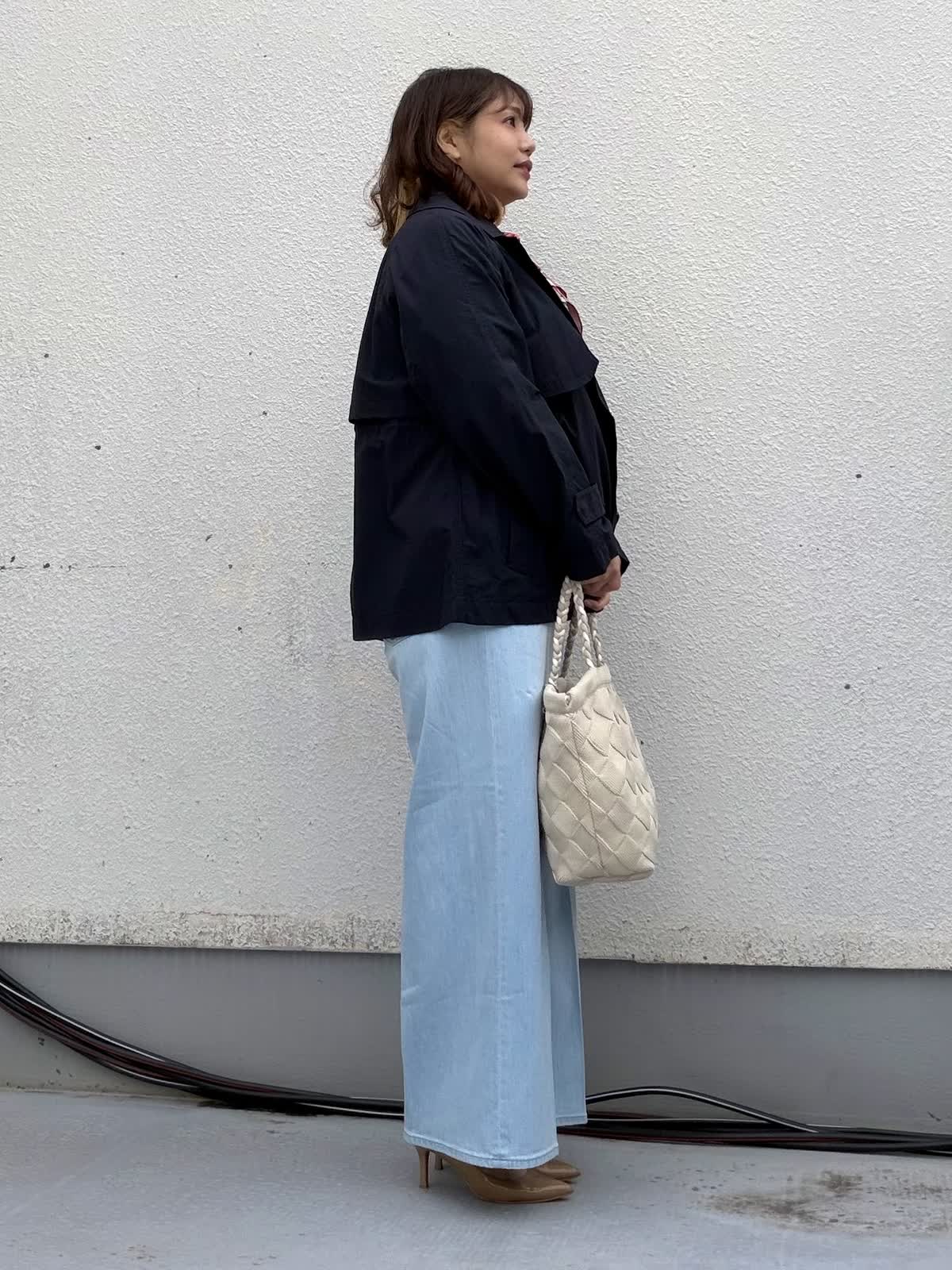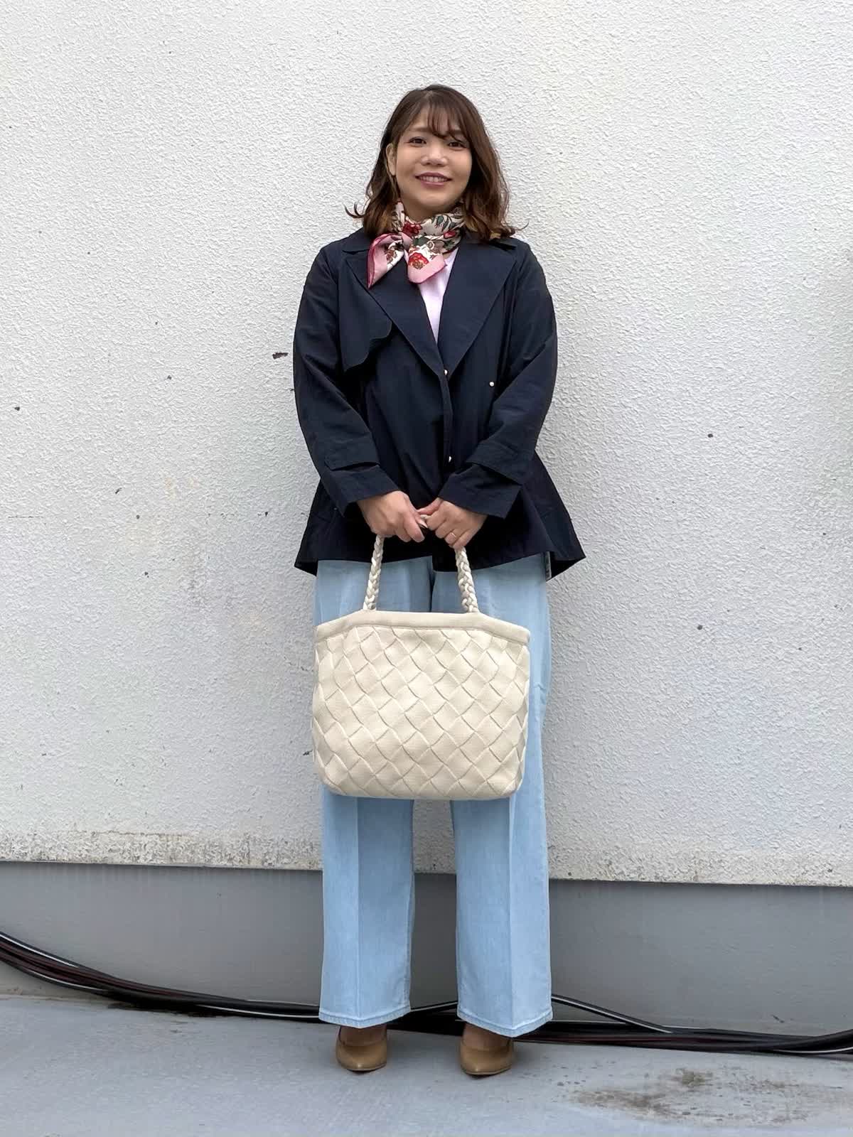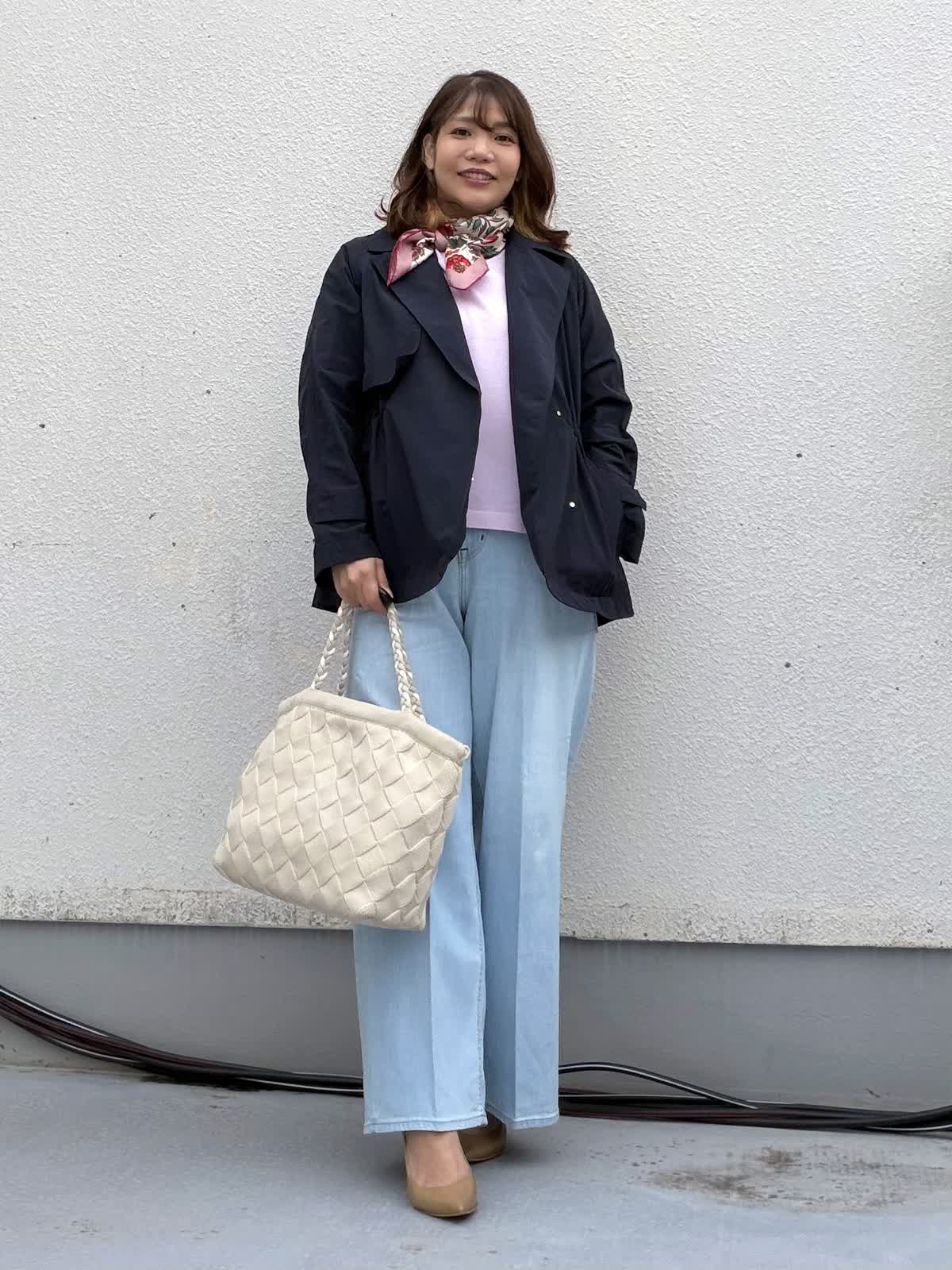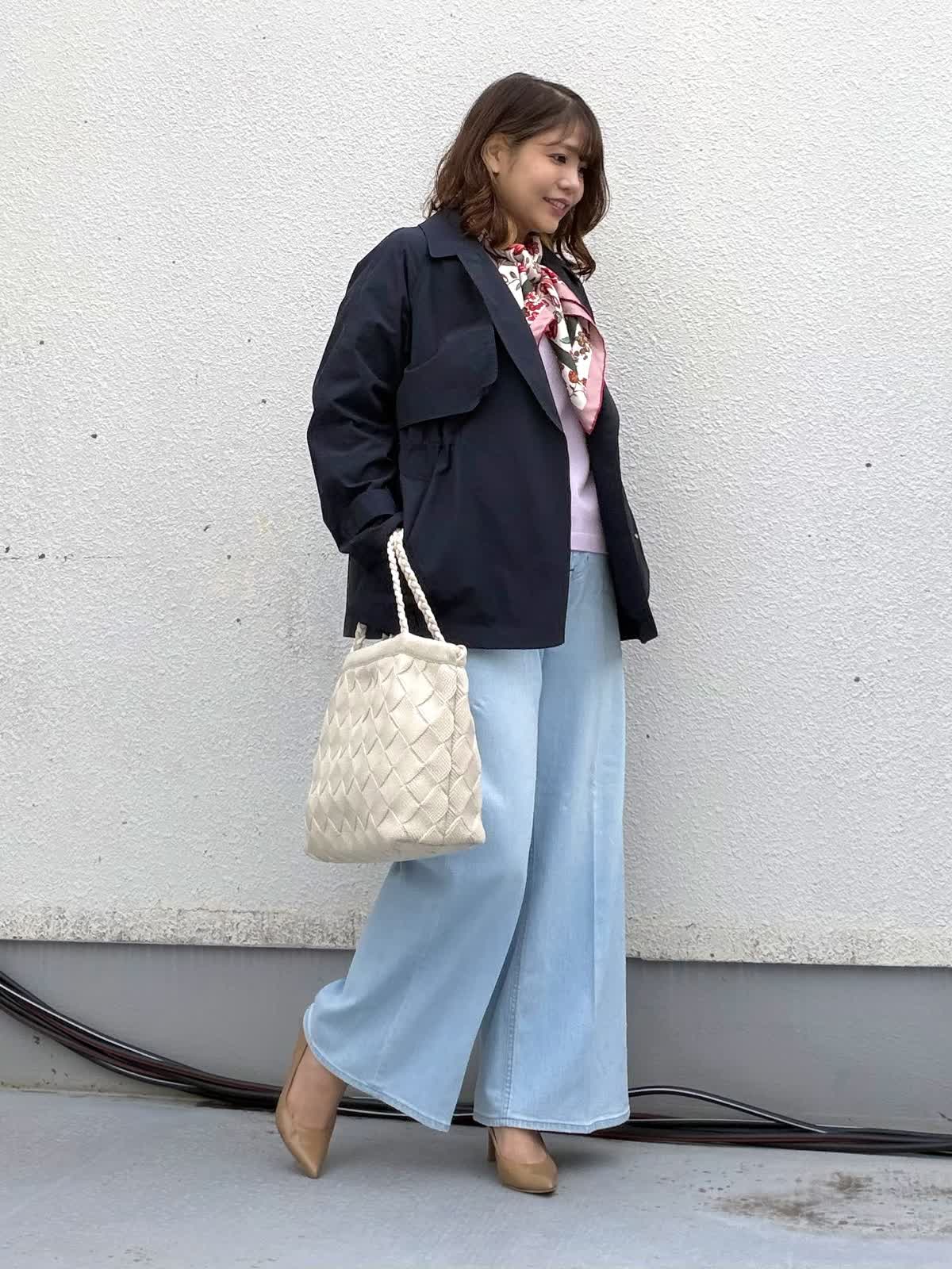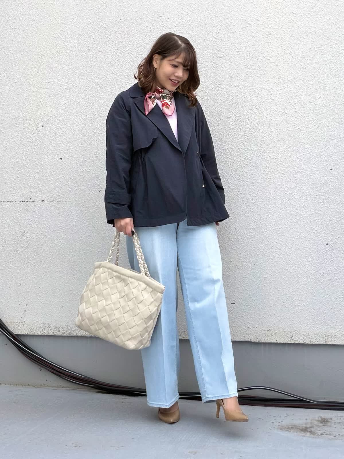 【着用アイテム:カラー/サイズ】 コート:ネイビー/9号 ニット:ラベンダー/9号 パンツ:サックス/11号 ネイビーのショートトレンチは きちんと感がありつつも堅すぎない万能アイテム。 ミドル丈でヒップも隠れるのでパンツにもスカートにも合わせやすいです。 インナーにはピンクのニットとライトブルーデニムを合わせ 春らしさを意識しました。 首元のスカーフで視線を上に。 通勤・お出かけ・学校行事まで 幅広く活躍するコーデです。