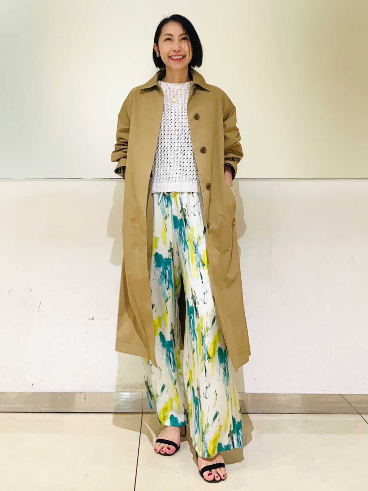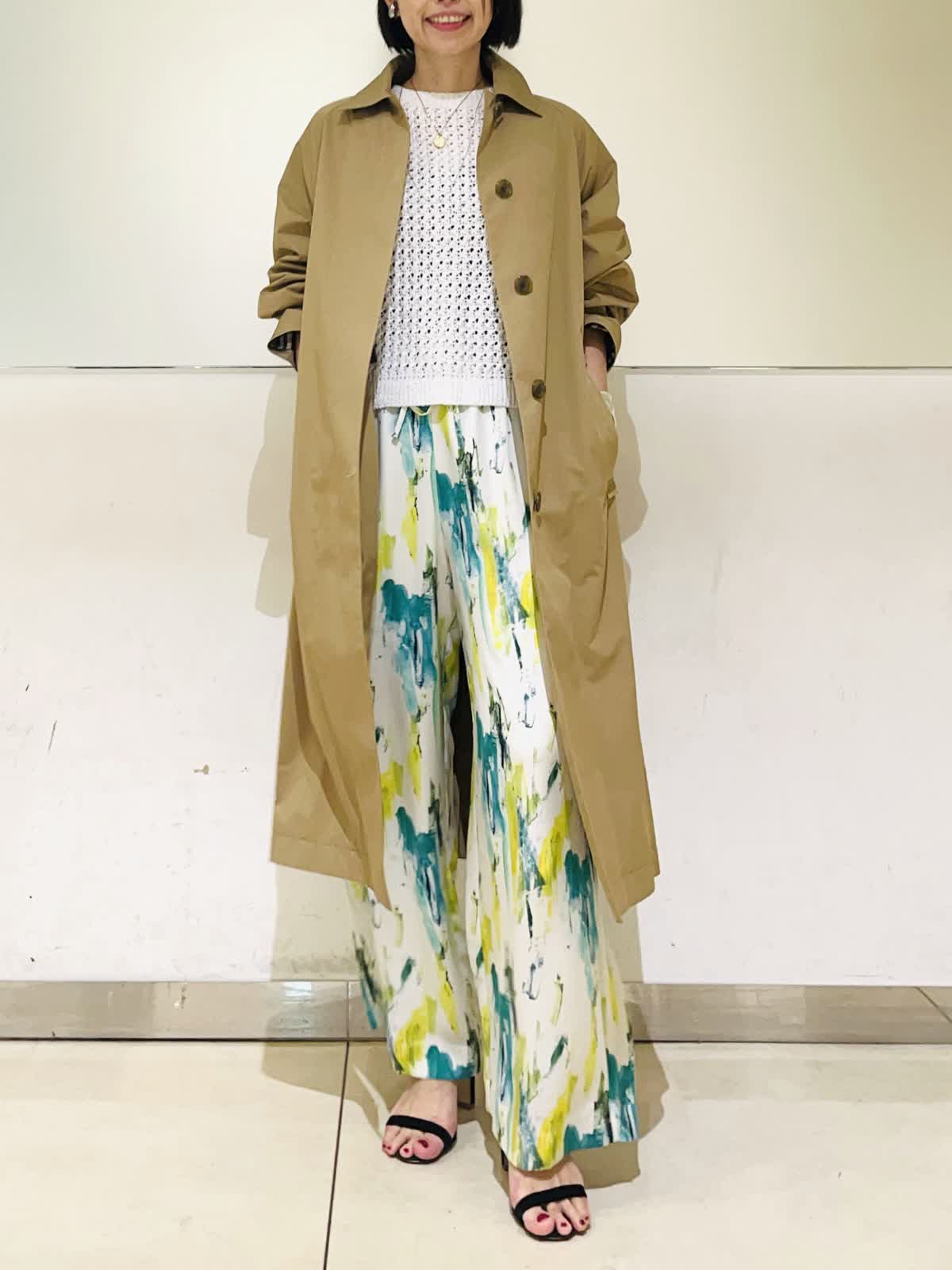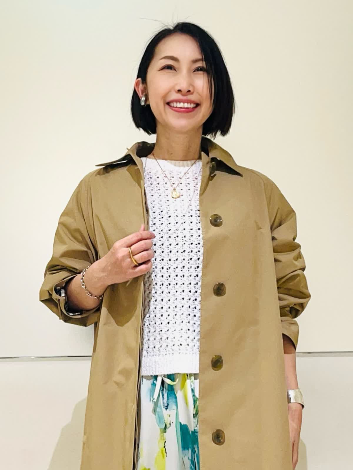 【着用アイテム】すべて9号 【着用カラー】コート:キャメル ニット:オフホワイト パンツ:ペパーミント 春のアウタースタイリン。Aquascutumのステンカラーコートは軽くて羽織るだけでスタイリングが決まる優秀コート!立体的なコクーンのシルエットが可愛く、濃いめのキャメルが合わせやすいカラーです。明るい春のスタイリングにキャメルの色合わせがこなれた感じのおしゃれコートスタイリングです。