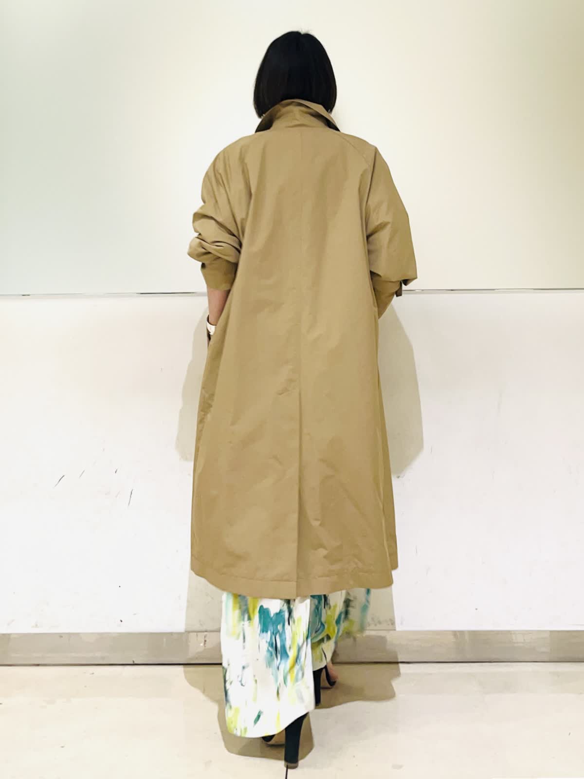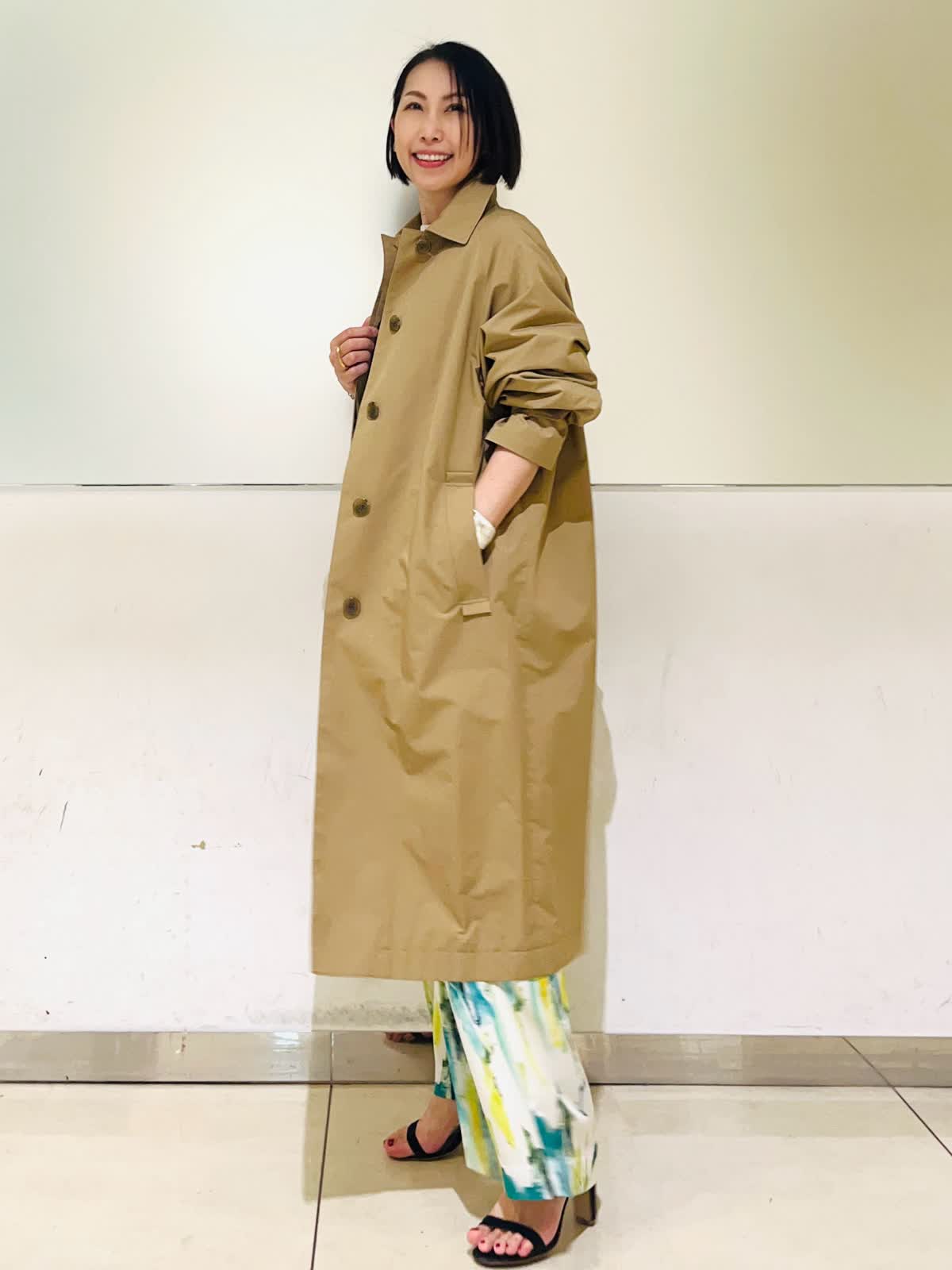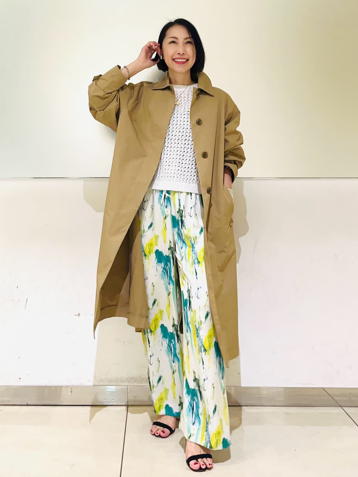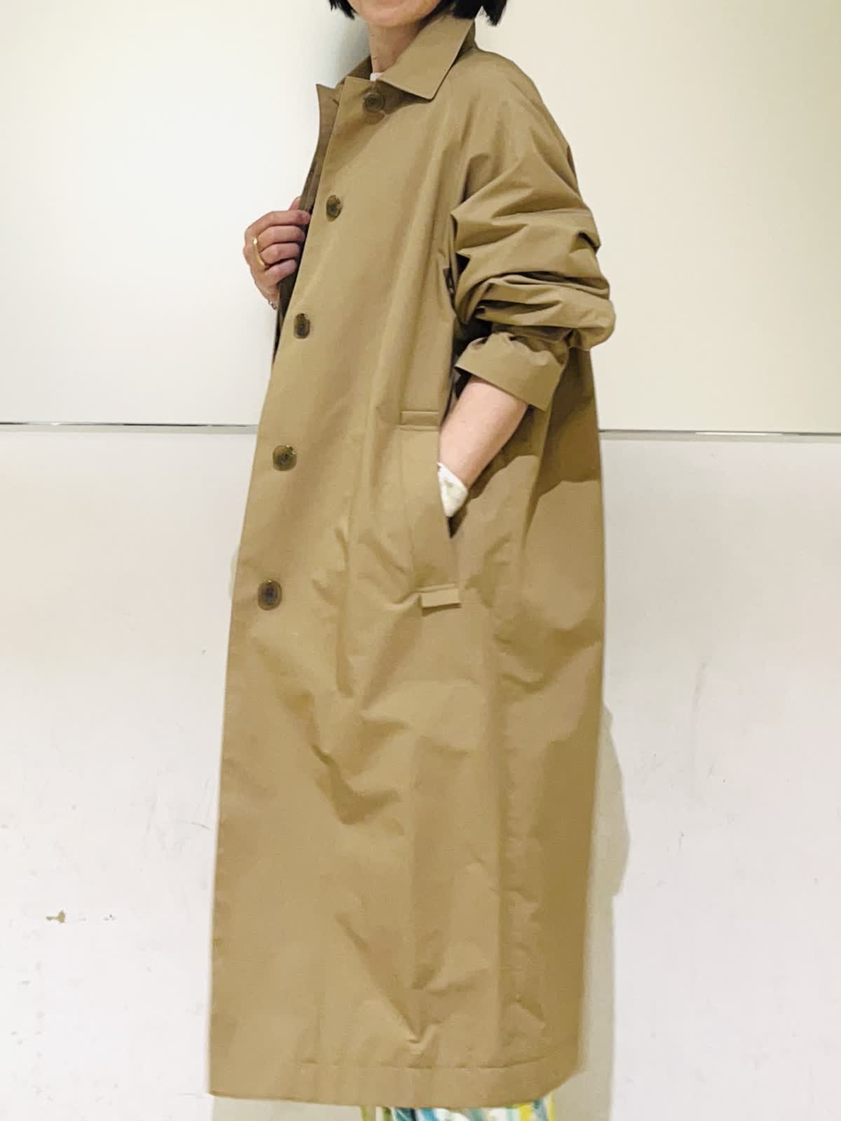 【着用アイテム】すべて9号 【着用カラー】コート:キャメル ニット:オフホワイト パンツ:ペパーミント 春のアウタースタイリン。Aquascutumのステンカラーコートは軽くて羽織るだけでスタイリングが決まる優秀コート!立体的なコクーンのシルエットが可愛く、濃いめのキャメルが合わせやすいカラーです。明るい春のスタイリングにキャメルの色合わせがこなれた感じのおしゃれコートスタイリングです。