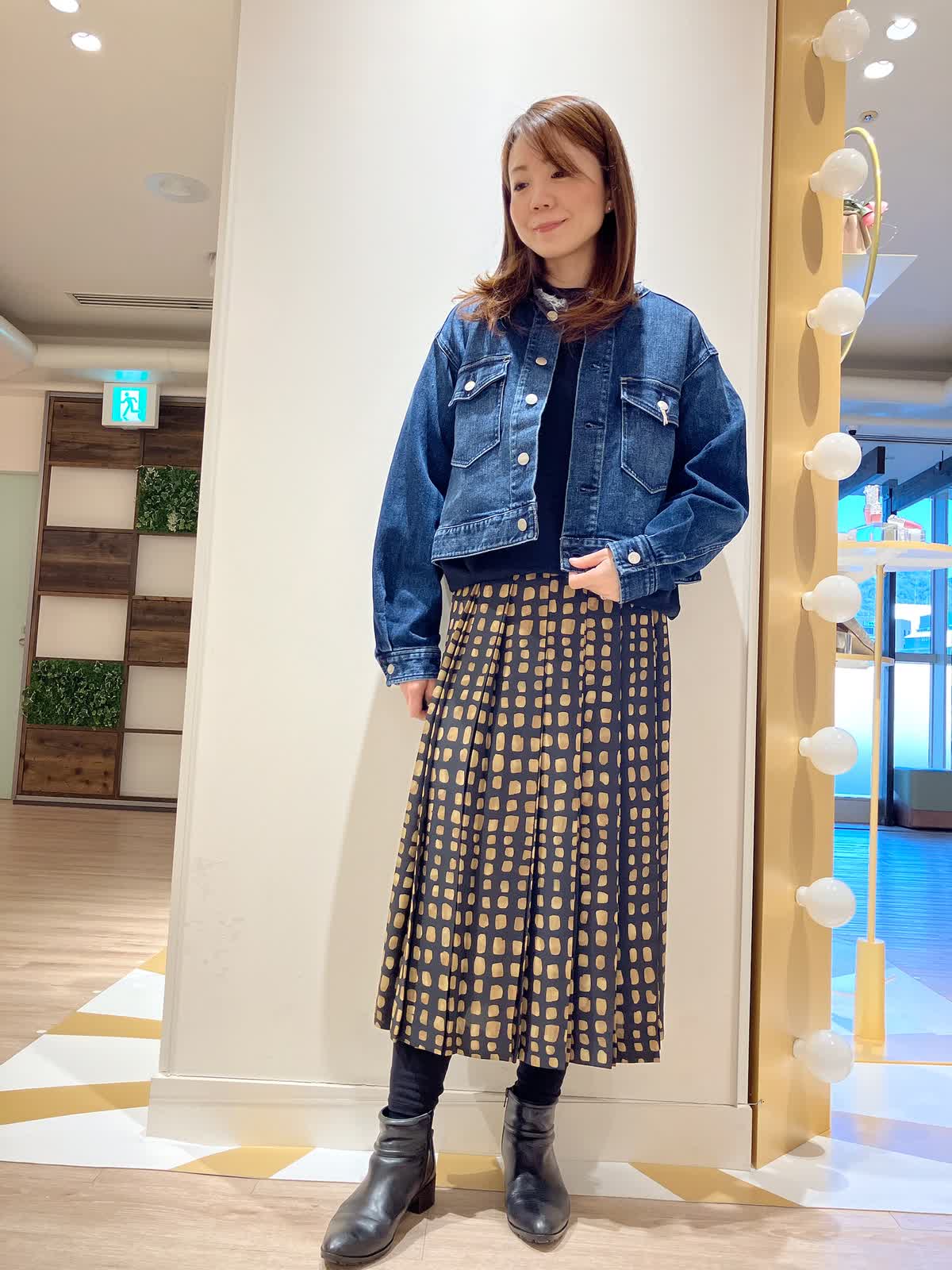 【着用サイズ】ジャケット:9号 カットソー:9号 スカート:7号 【着用カラー】ジャケット:インディゴ カットソー:ネイビー スカート:ブラック コーディネートのテーマは春に向けてのお出かけスタイリングです。 少し寒さが和らいでくる季節にぴったりなのがデニムブルゾン。ノーカラーで首元フリンジ仕様なので、上品で女性らしいコーディネートにもぴったり。チェックのスカートで大胆に合わせてもおしゃれ。これからの季節のお出かけにおすすめのコーディネートです。