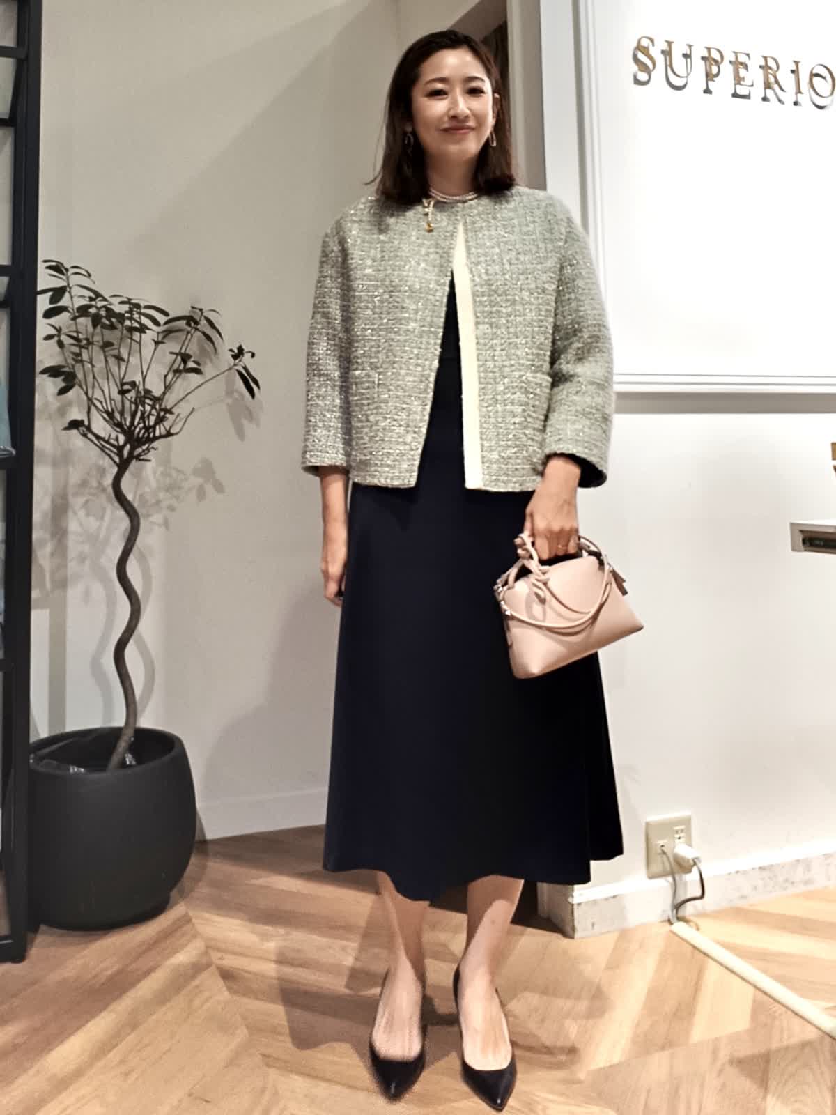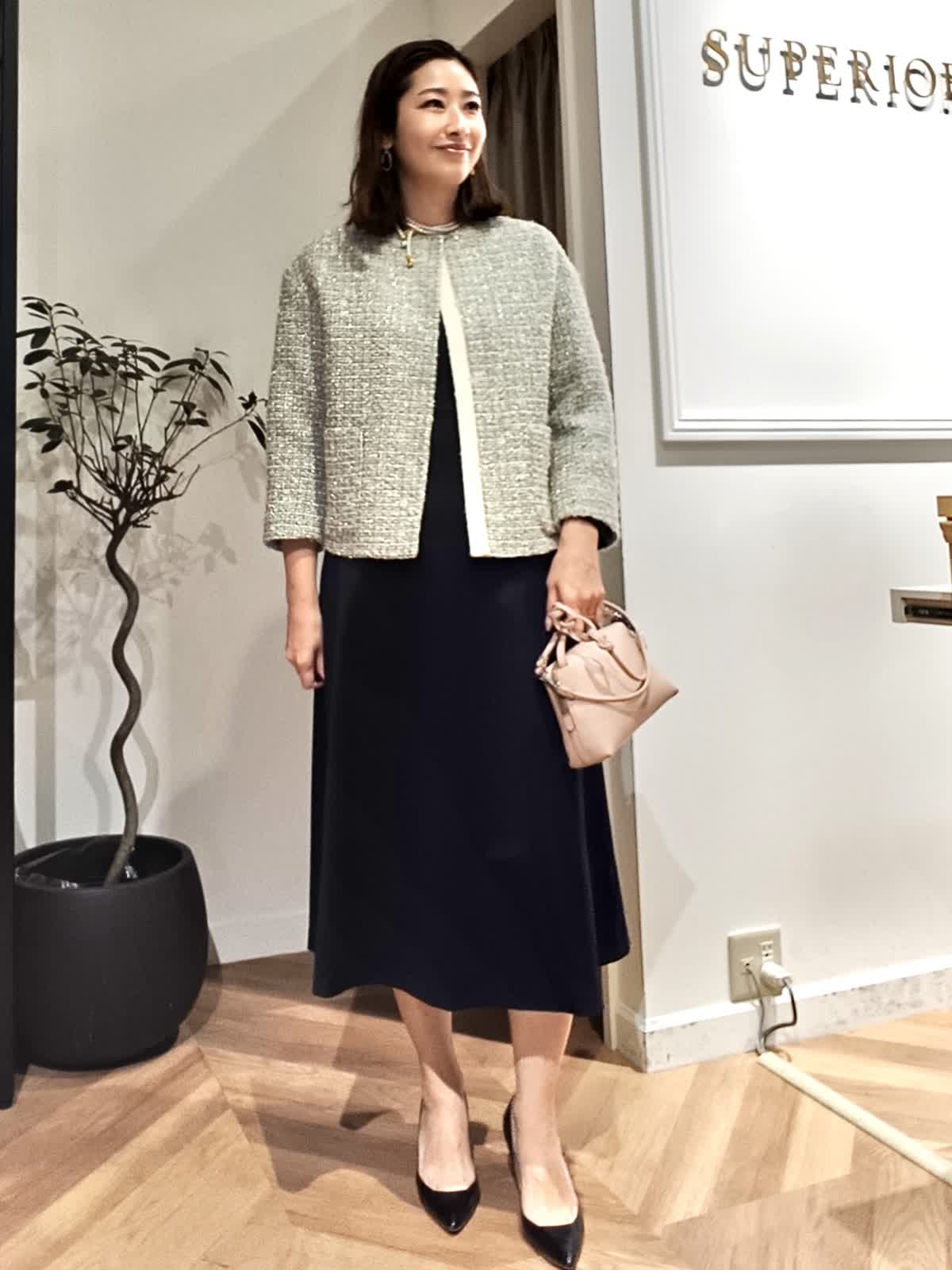 INEDジャケットとワンピースとINED LワンピースとFAVORITE SUKINAMONOバッグとADER.bijouxアクセサリー(岡山天満屋SUPERIORCLOSET)