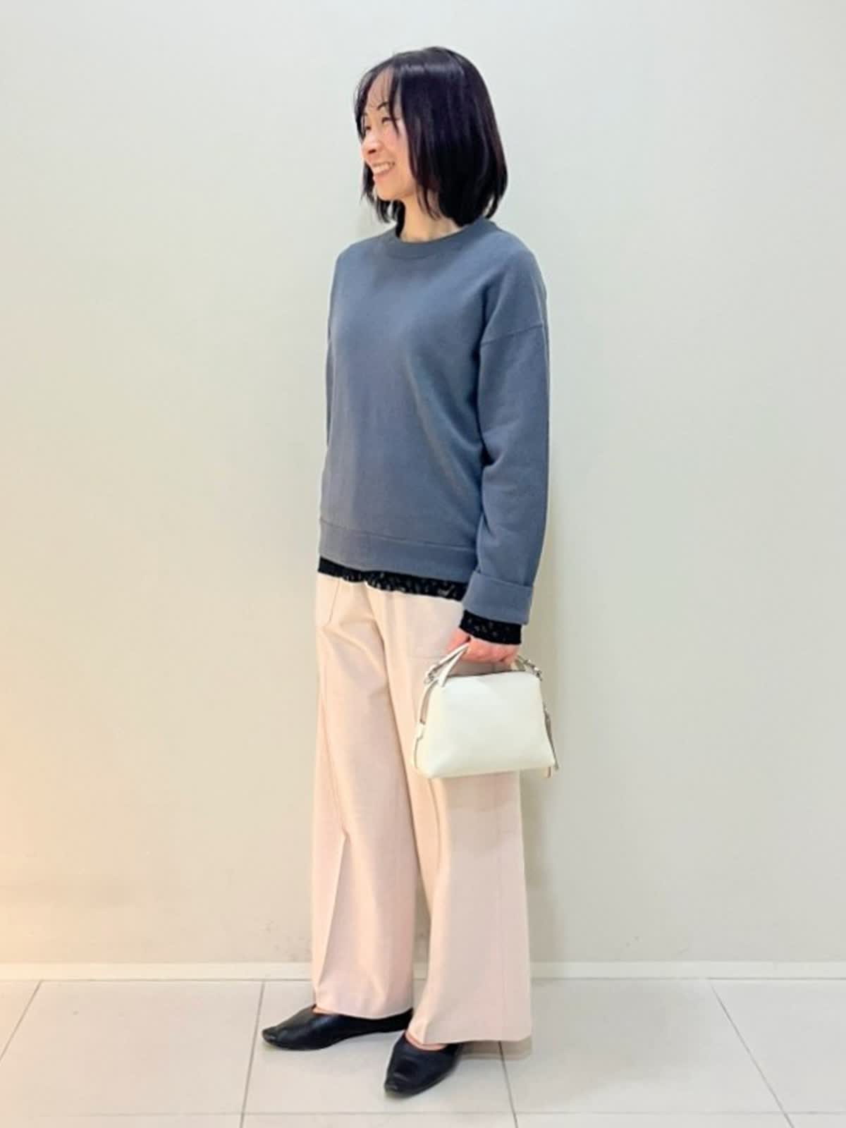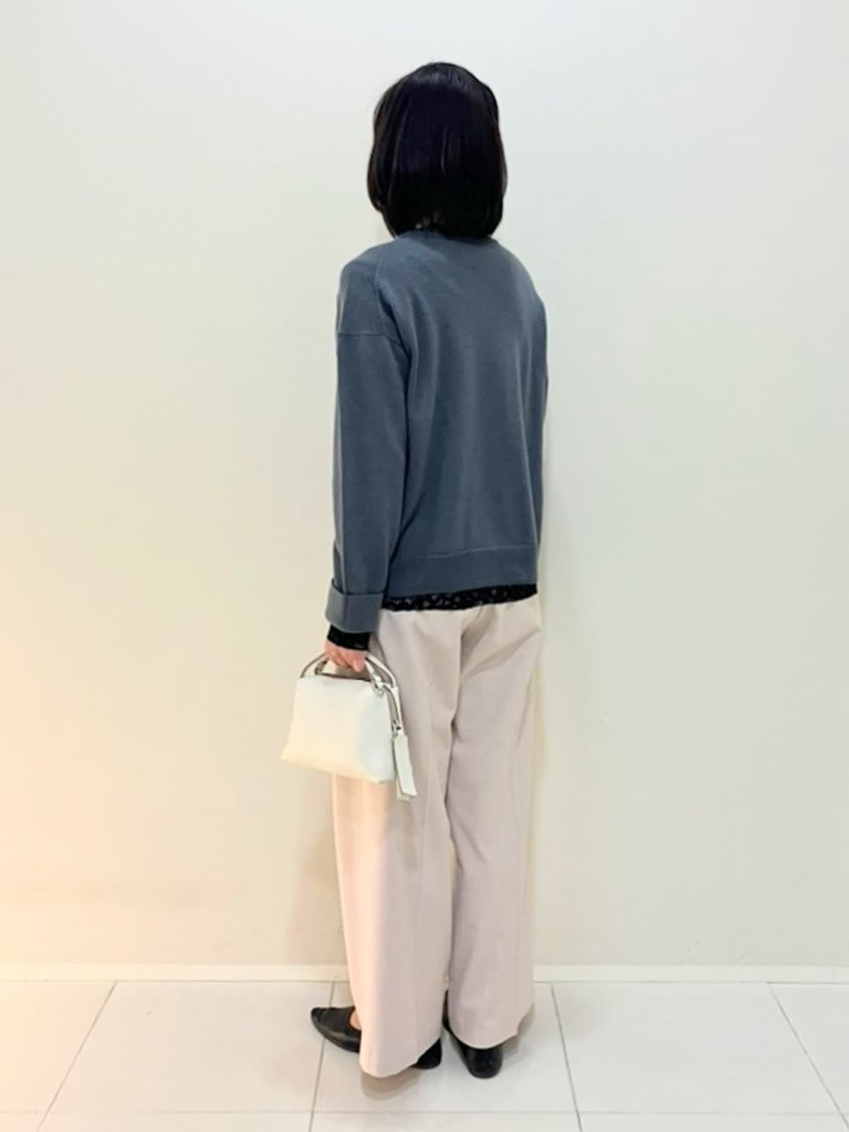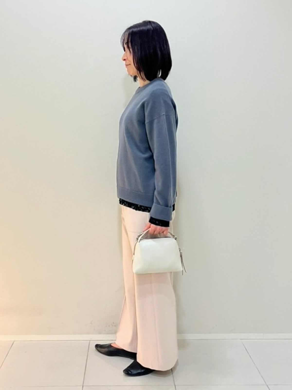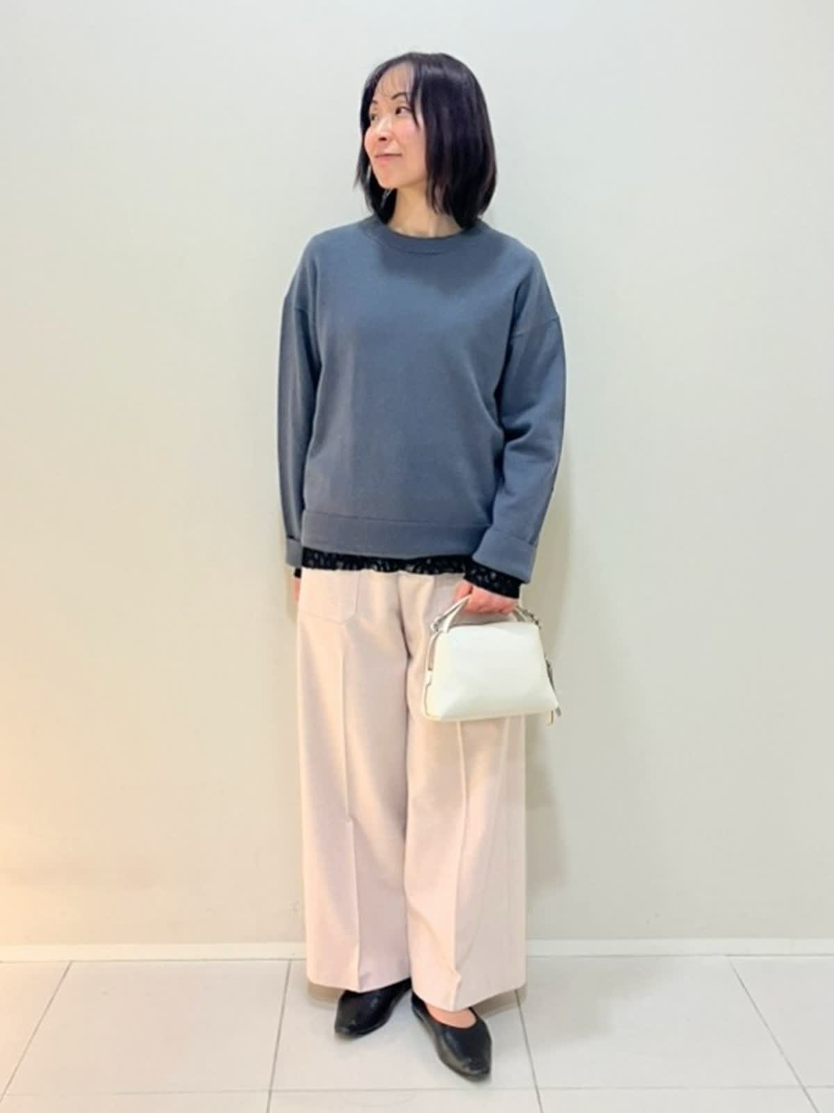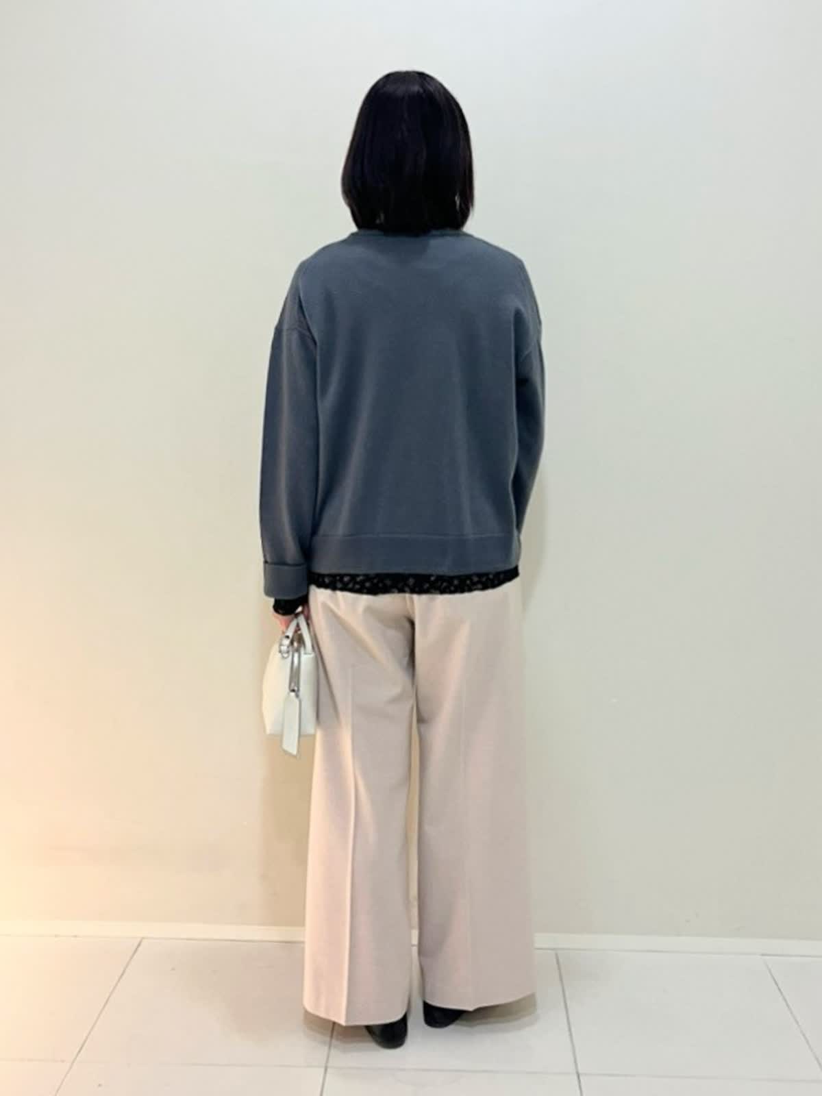 【着用サイズ】 ニット:9号 カットソー:9号 パンツ:7号【着用カラー】 ニット:チャコールグレー カットソー:ブラック パンツ:ベージュ お出かけスタイル クルーネックのニットはウール100%で暖かく、シンプルなデザイン。カットソーのレース部分を見せると女性らしい雰囲気に。ワイドパンツはウエストゴム仕様なので、楽にカッコよく履いていただけます。