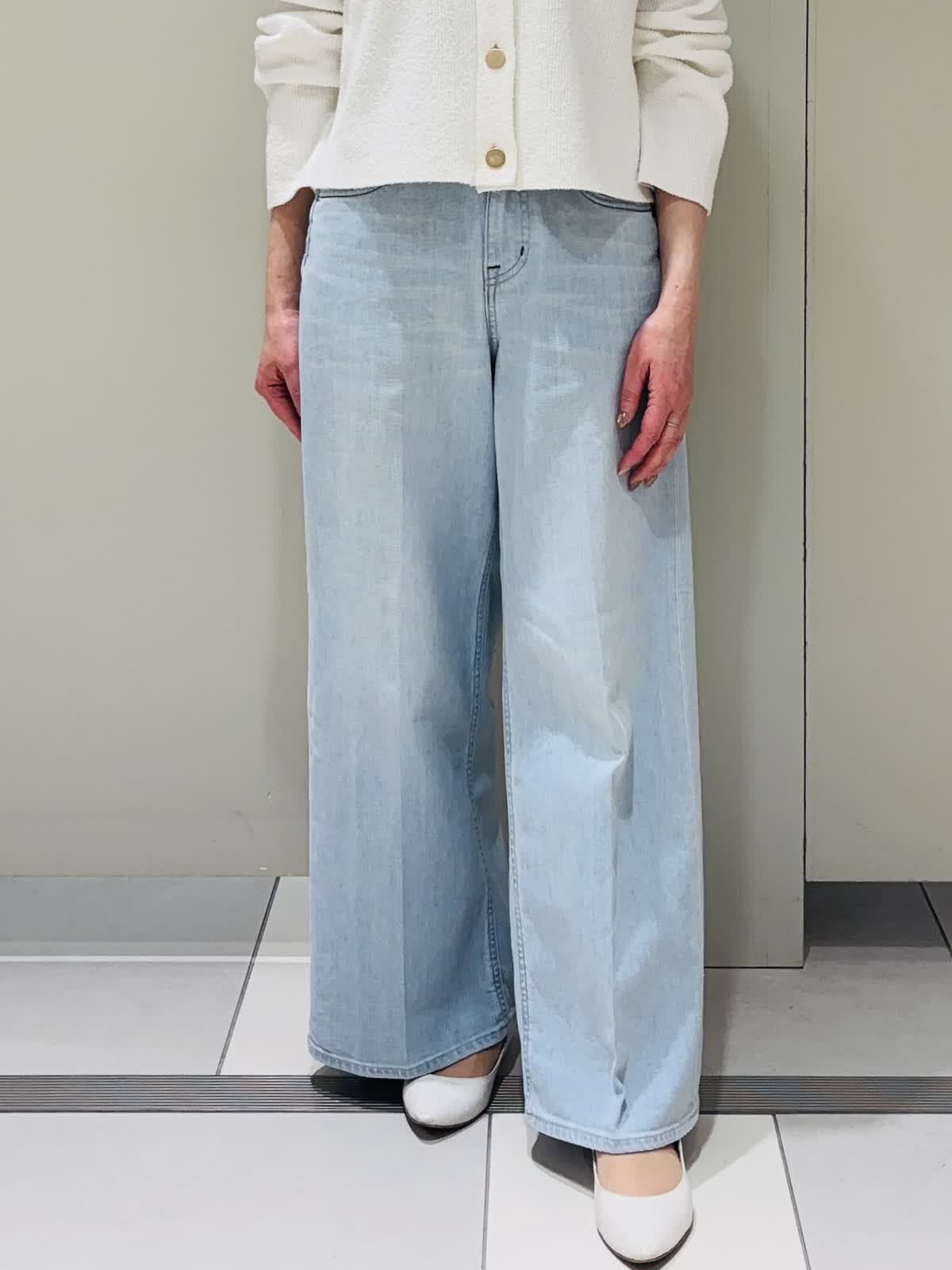 【着用サイズ】ニット:9号 パンツ:5号 【着用カラー】ニット:オフホワイト パンツ:サックス 大人気のHealthy DENIMの新作です。 ハイウエスト×ワイドすぎない絶妙なシルエットで、クロップド丈のトップスとも好相性。とても柔らかい生地で穿き心地も抜群。きれいめにもカジュアルにも合わせやすく、デイリーに活躍してくれるアイテムです。