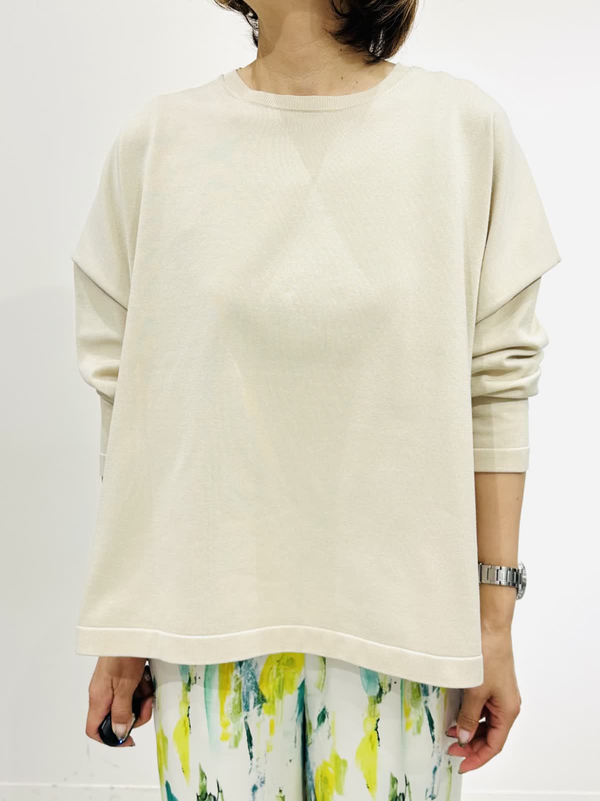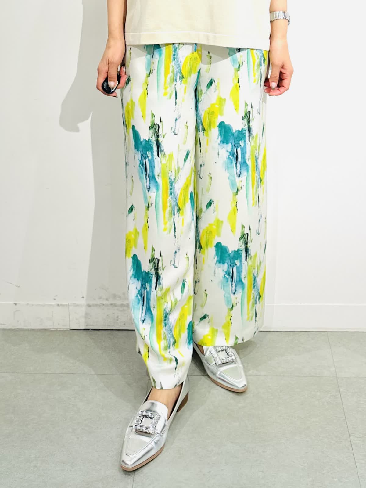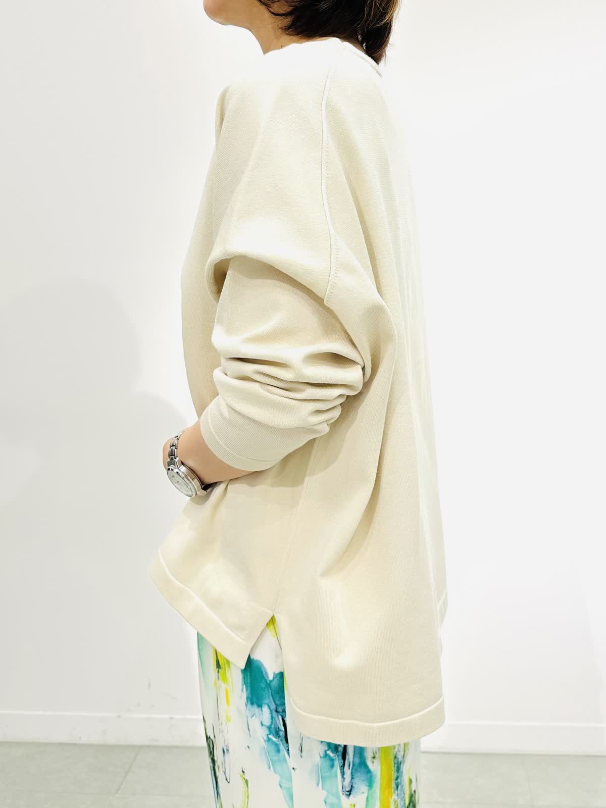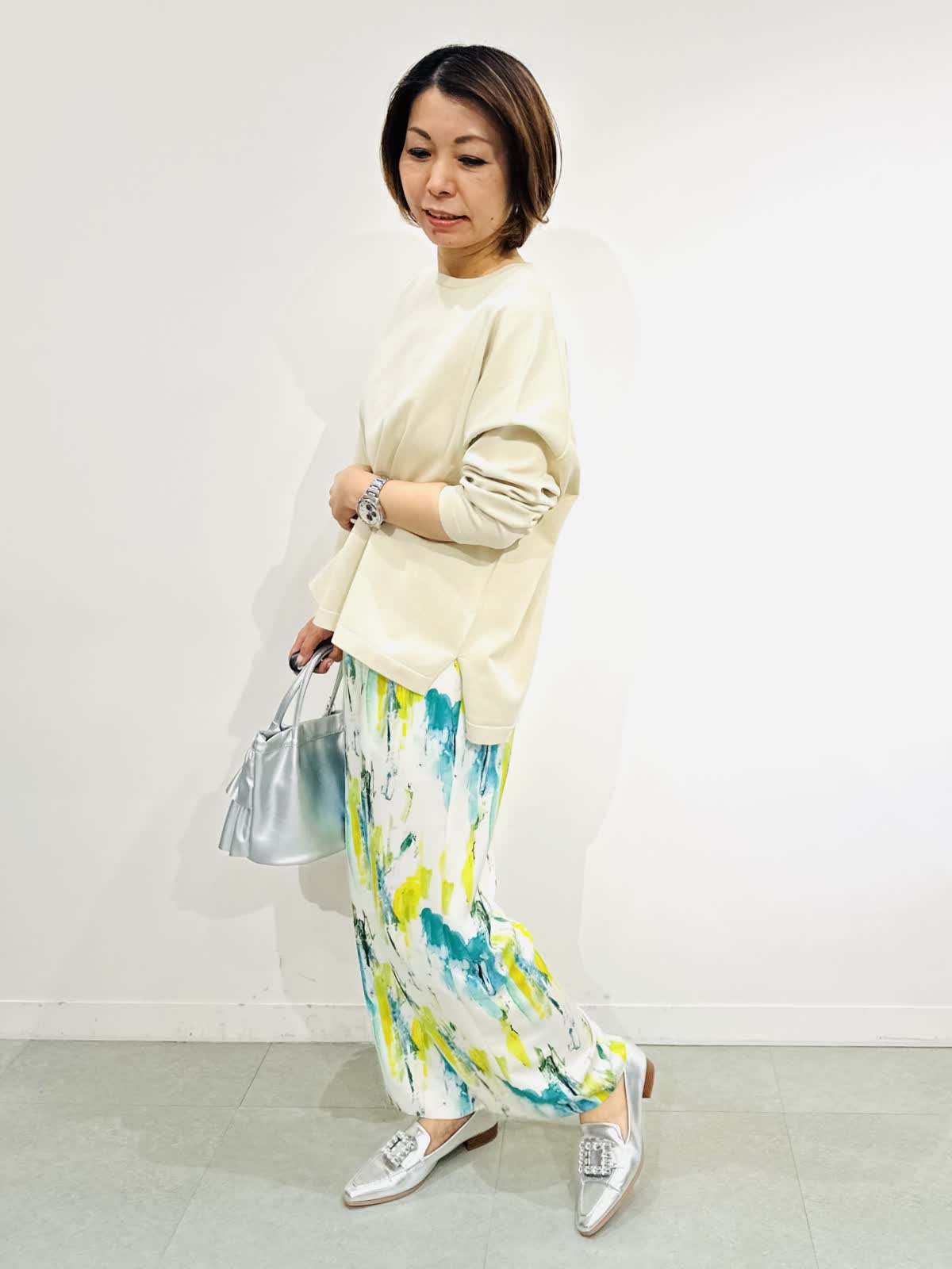 【着用サイズ】全て9号 【着用カラー】ニット:ベージュ パンツ:ペパーミント 春夏ピッタリ!休日コーデ。ニットは軽く膨らみがありハリ感があります。サラッとした上質コットンなので着心地が◎サイドスリット入りなので横から見てもオシャレ。パンツは、INEDオリジナルプリントでサラッとした肌触りとシワになりにくい素材。ウエスト調整可能なので楽ちんパンツです。着映えするプリントパンツで休日お出かけコーデおすすめです。
