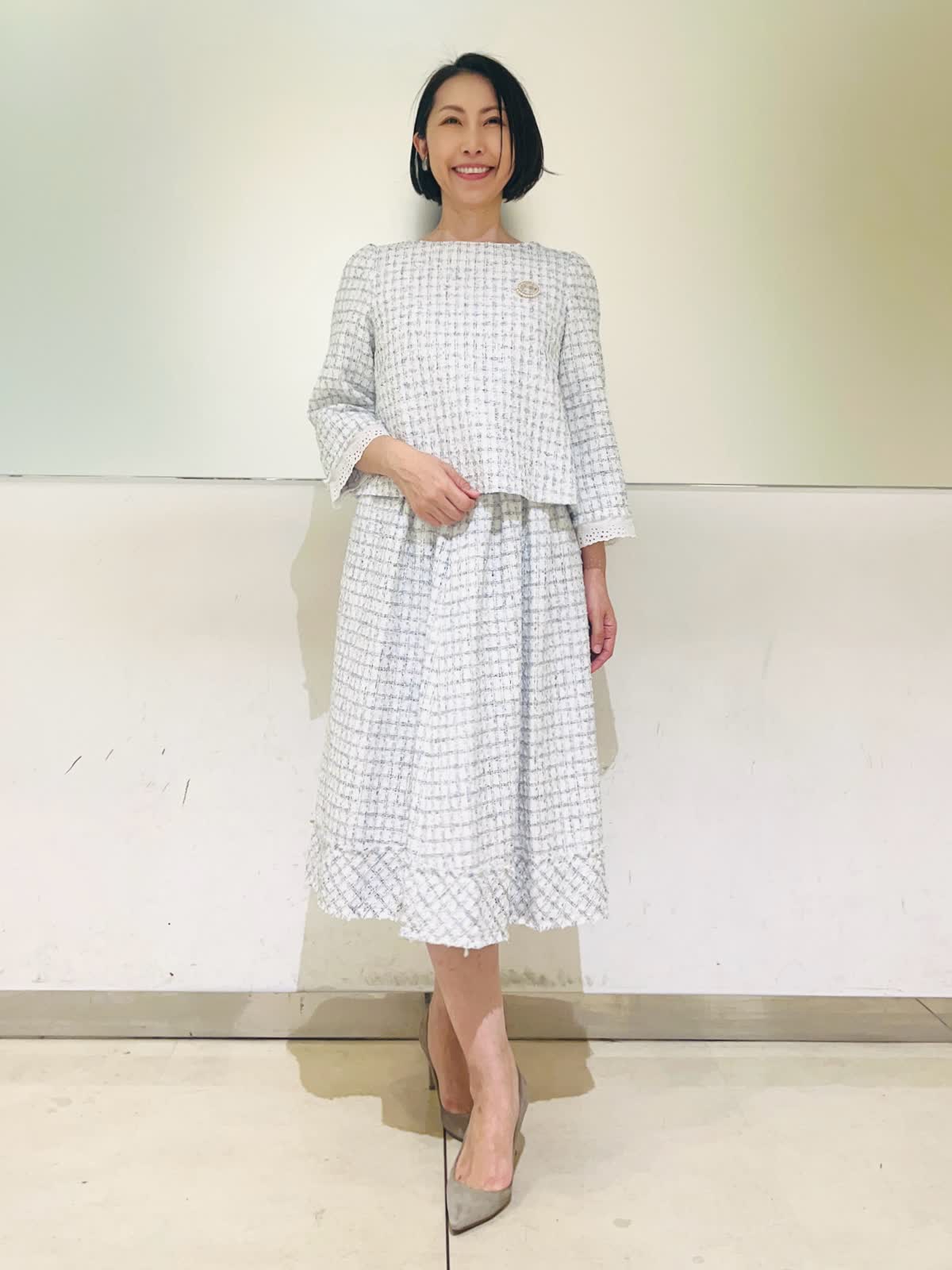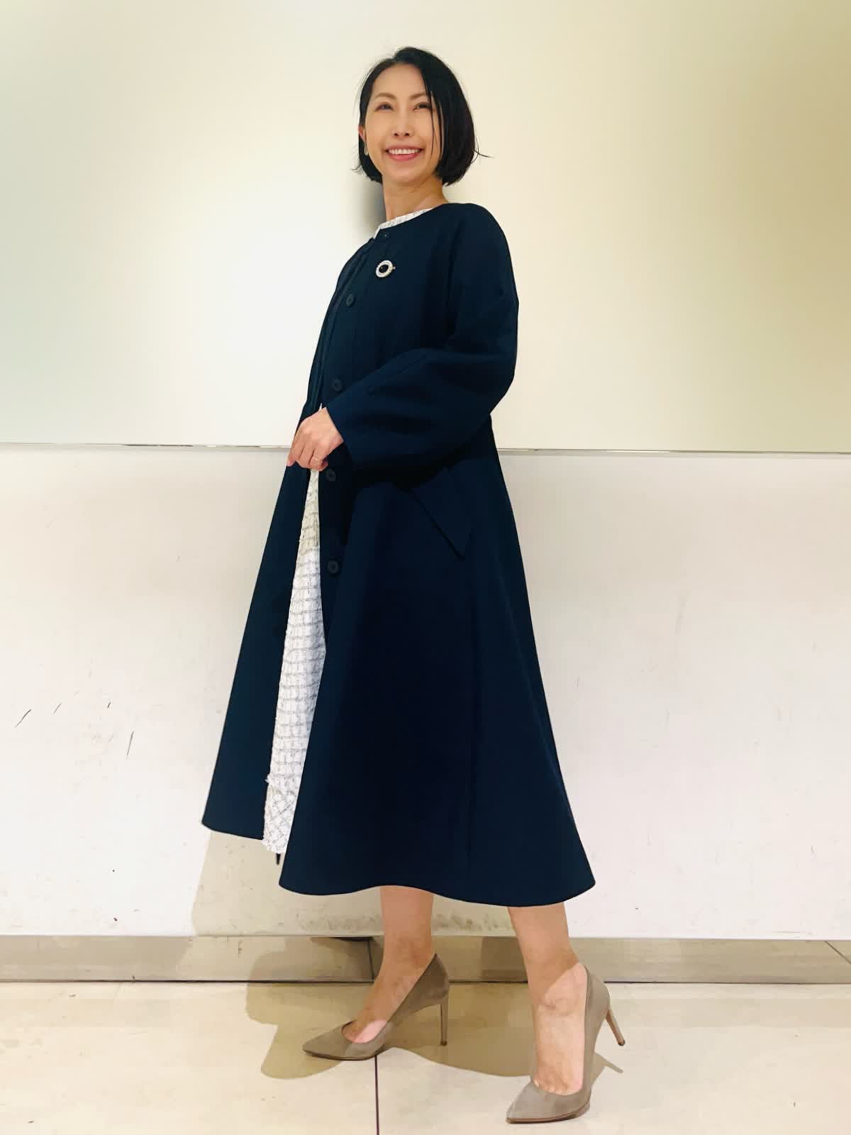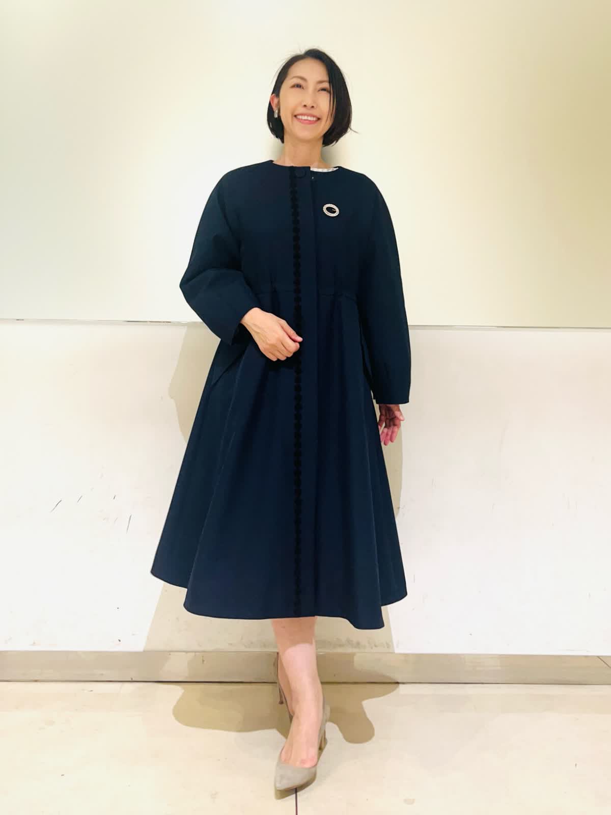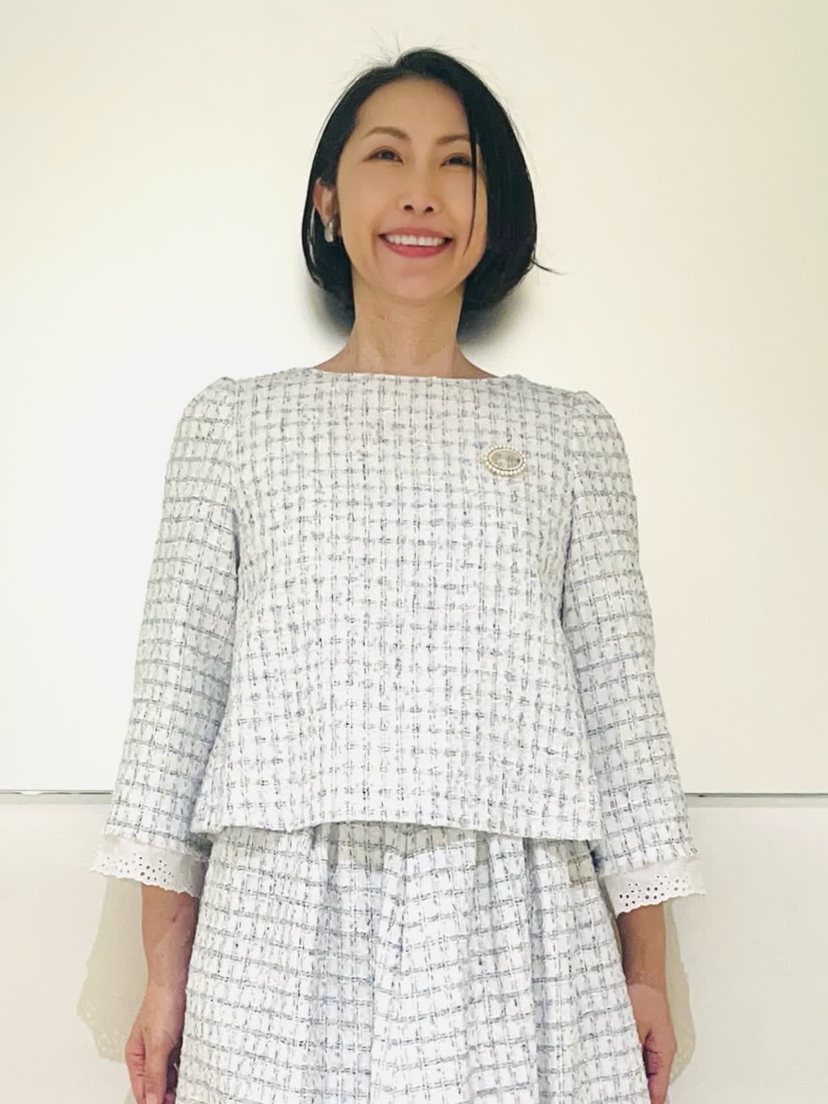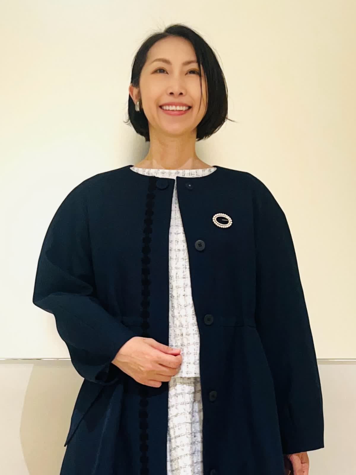 【着用アイテム】すべて9号 【着用カラー】コート:ネイビー ブラウス、スカート:サックス ハレの日からお呼ばれまで、大切な行事のときにおすすめのコーディネート。ホワイトとサックスを基調に、キラキラのラメを散りばめた華やかなツイードの2ピース。入学式やお顔合わせなどにもお召しいただけます。合わせたネイビーのコートはお花のレースが可愛いデザイン。ウエストのドロストを絞るとドレスのようなシルエットに。フォーマルの場所へお出かけの時にもお羽織りいただけます。 サイズ感はいつものサイズで大丈夫でした。