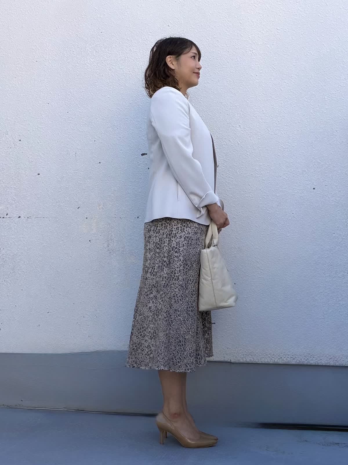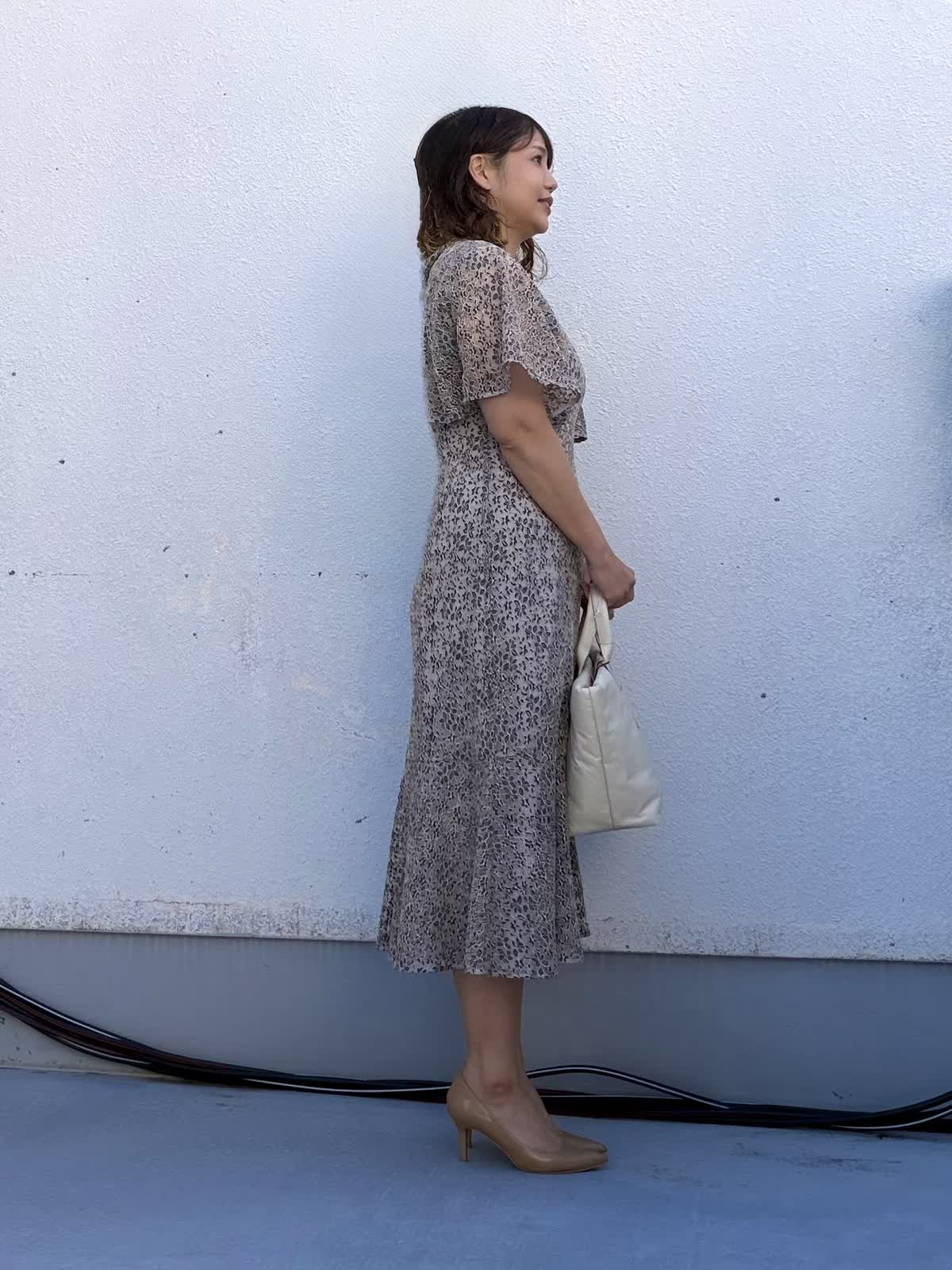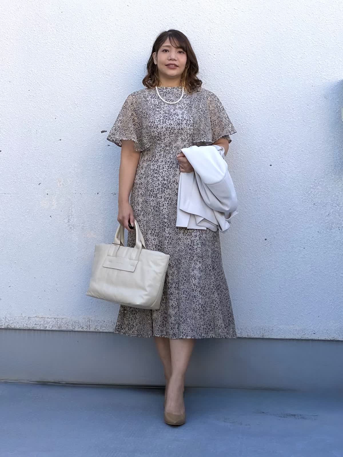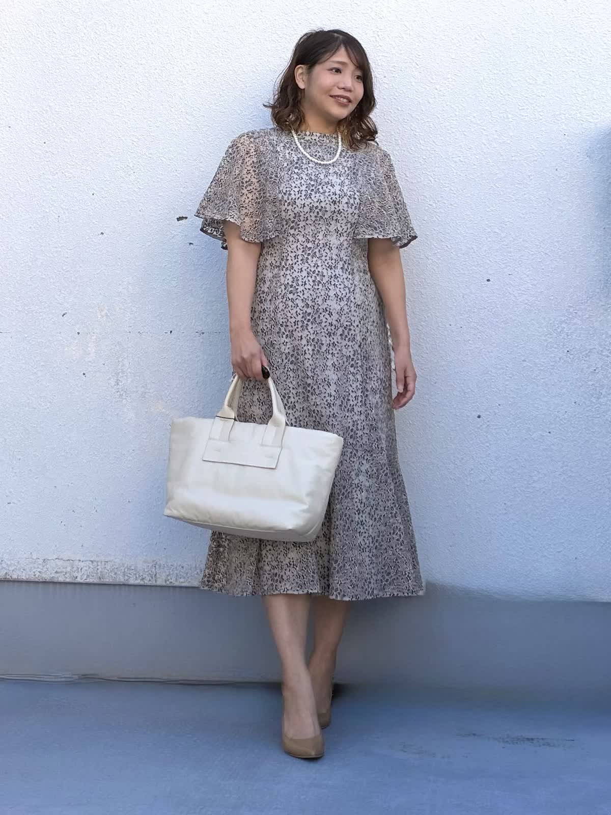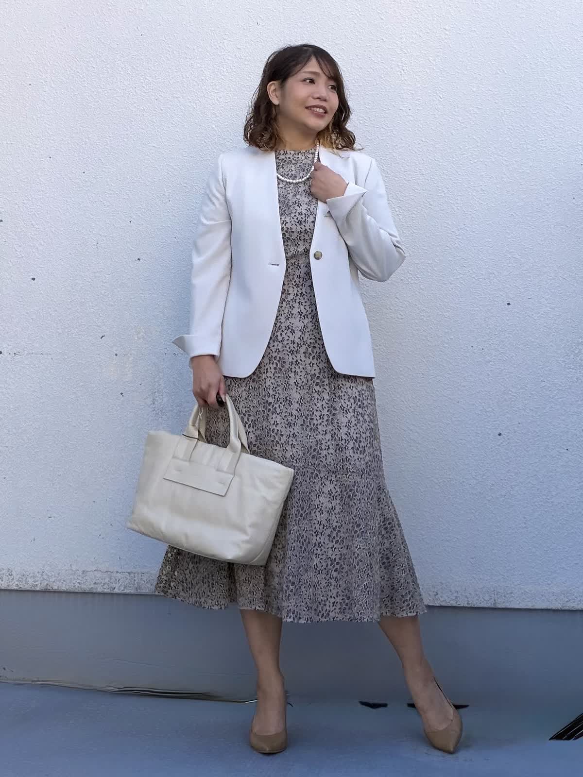 【着用アイテム:カラー/サイズ】 ジャケット:グレーベージュ/11号 ワンピース:ネイビー/11号 上品さと華やかさを兼ね備えた、セレモニーにもブライダルにも対応できる万能スタイル。 柔らかなアイボリーのノーカラージャケットは、顔まわりを明るく見せてくれる一枚。すっきりとしたシルエットで、ワンピースのラインを引き立てます。 中に合わせたレース柄のワンピースは、落ち着いたトーンながら程よい華やかさがあり、結婚式や二次会、入卒セレモニーにもぴったり。裾にかけて広がるマーメイドラインが女性らしさをアップさせてくれます。 入学・卒業などのセレモニーシーンや結婚式にも 一式揃えておくと、春の大切なシーンに安心して着回せるおすすめコーディネートです。