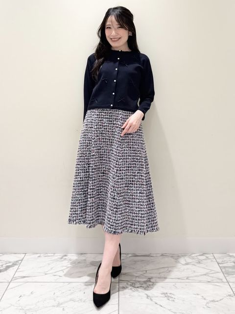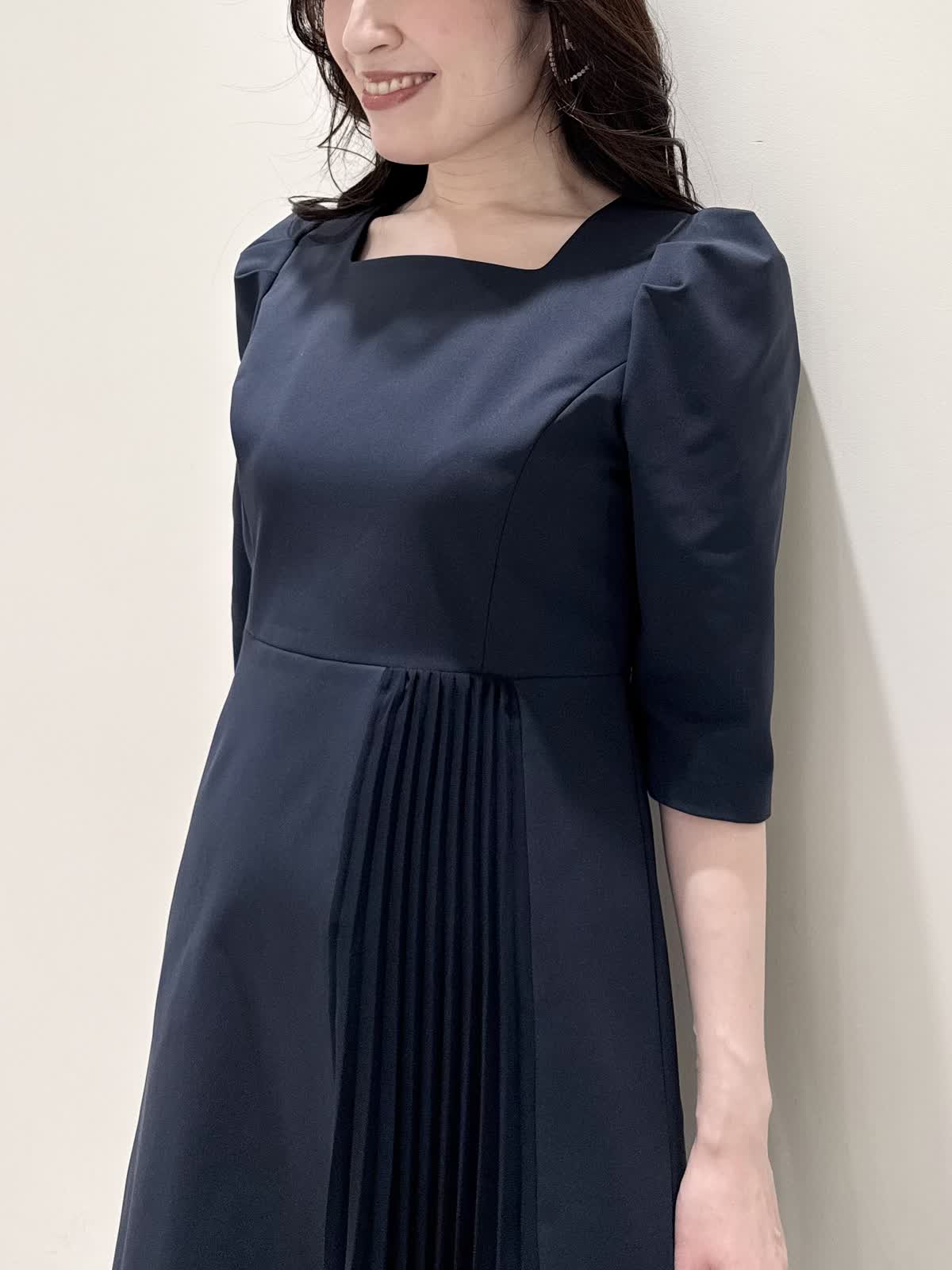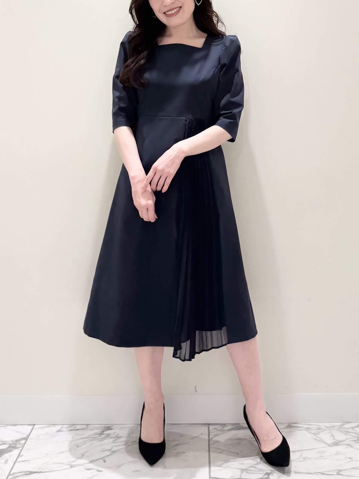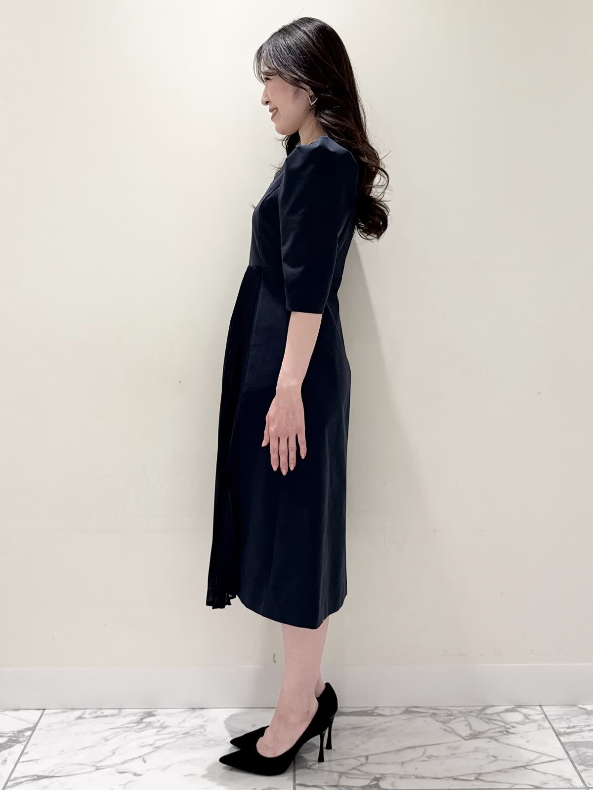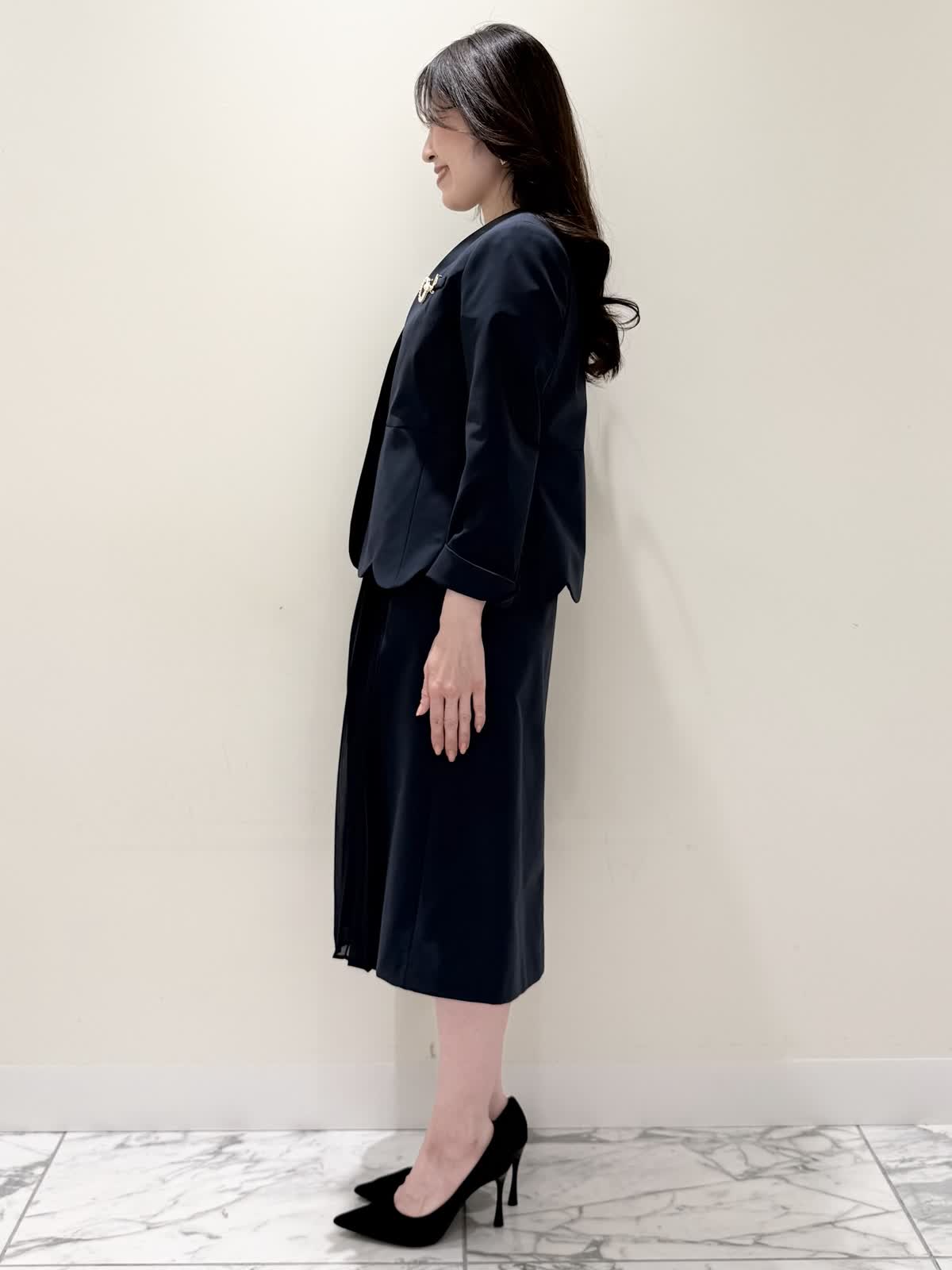 【着用サイズ/カラー】ジャケット:7号/ネイビー ワンピース:5号/ネイビー 『品よく』ハレ服にピッタリなコーディネート。ジャケット&ワンピースのセットで着ると入園?入学、卒園?卒業などのセレモニー、行事毎に着ていただきたい一品。今までにない裾のスカラップがポイントのジャケットはストレッチ性もありアームホールはゆとりがあり着心地◎普段使いもしやすいように着丈はパンツにも合うようになってます。ワンピースは5分袖丈に高め切り替えからのAラインシルエット。プリーツのデザインが歩くたびに品よく、1枚で着映えするワンピースです。どちらもいつものサイズで大丈夫です。ネイビーカラーの1セットはお持ちいただくと安心です。
